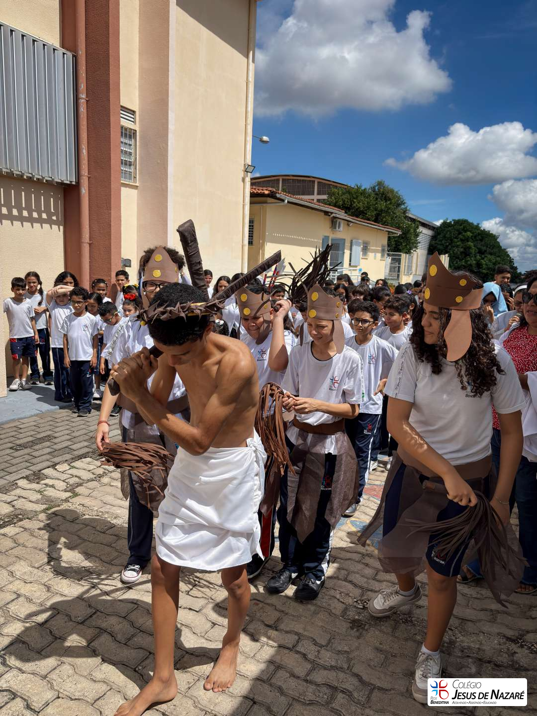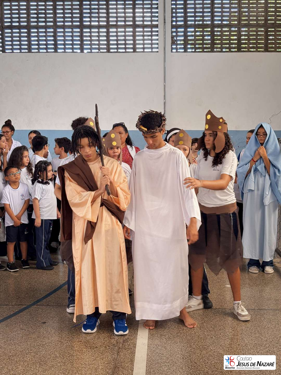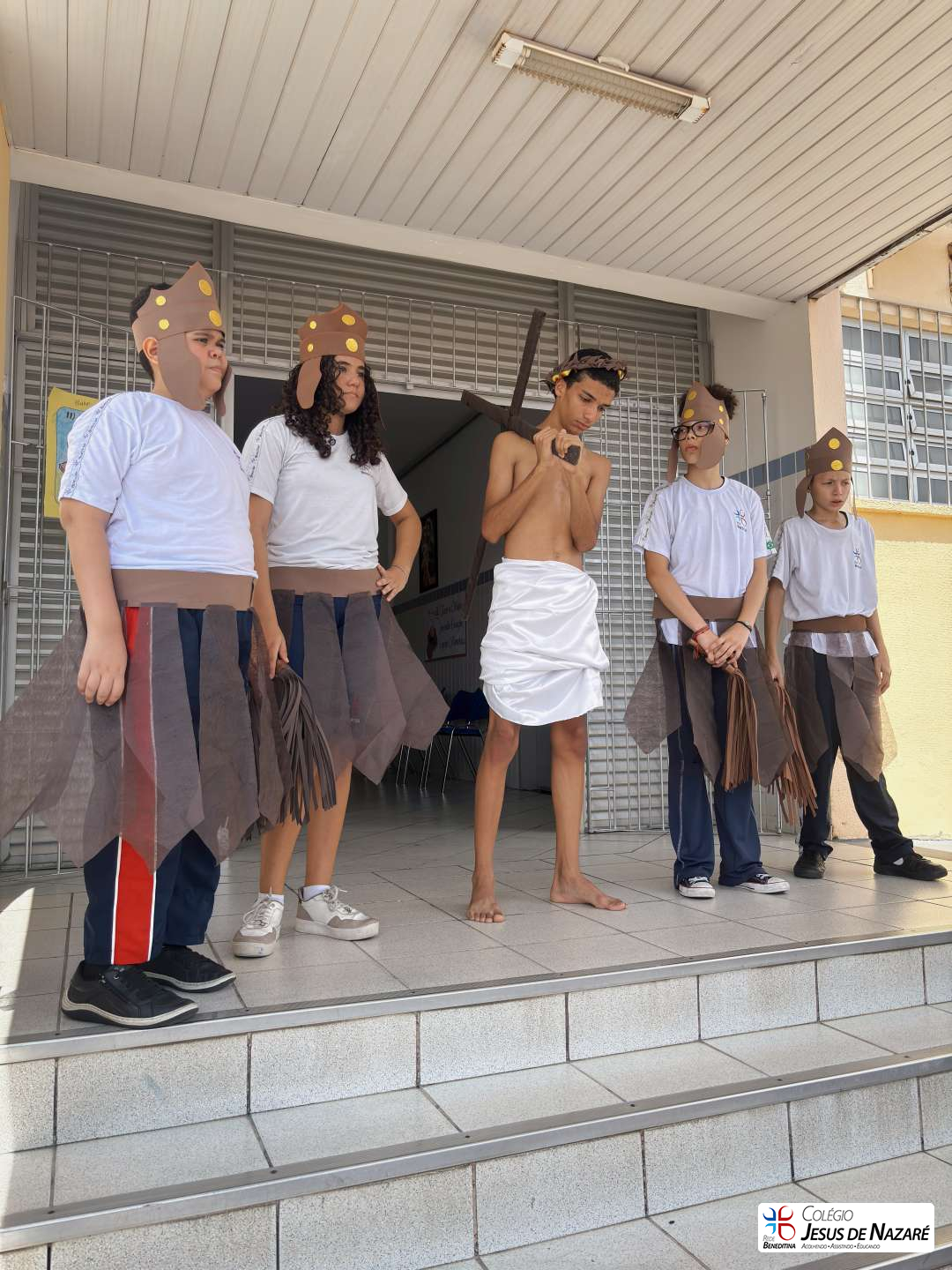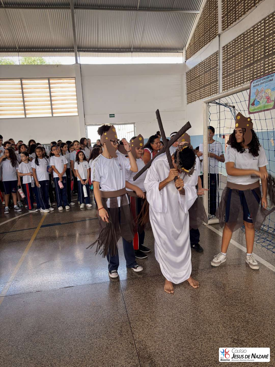 Na caminhada da Quaresma, vivenciamos um momento profundo de fé através da Via Sacra, encenada com dedicação pelos alunos do Ensino Fundamental. Ao reviverem os passos de Jesus até o Calvário, eles nos conduziram a refletir sobre o amor, o sacrifício e a entrega que marcam esse tempo tão especial.