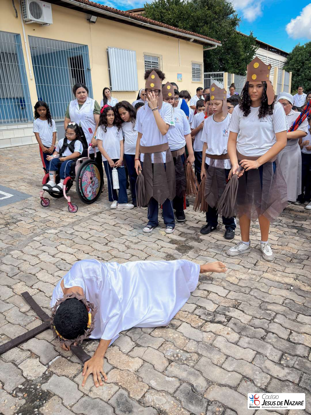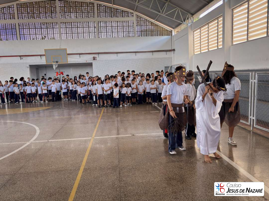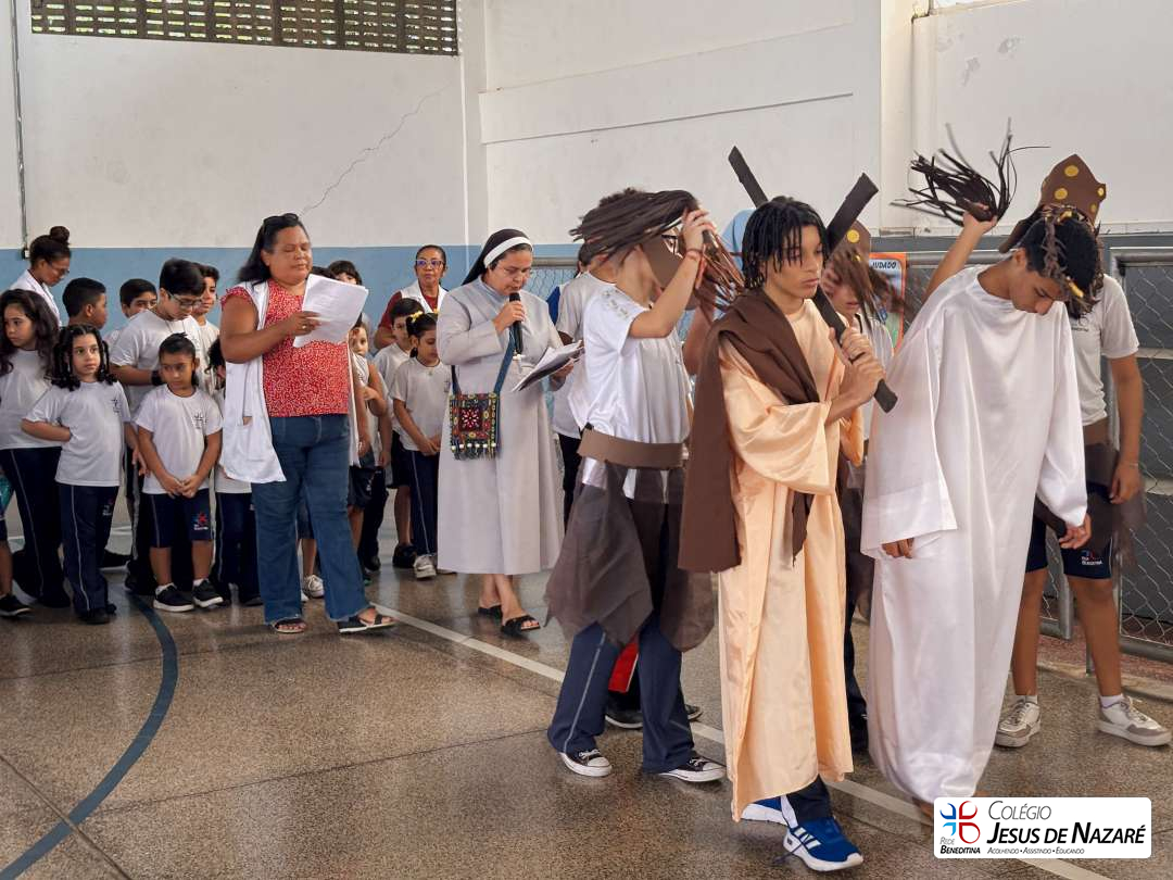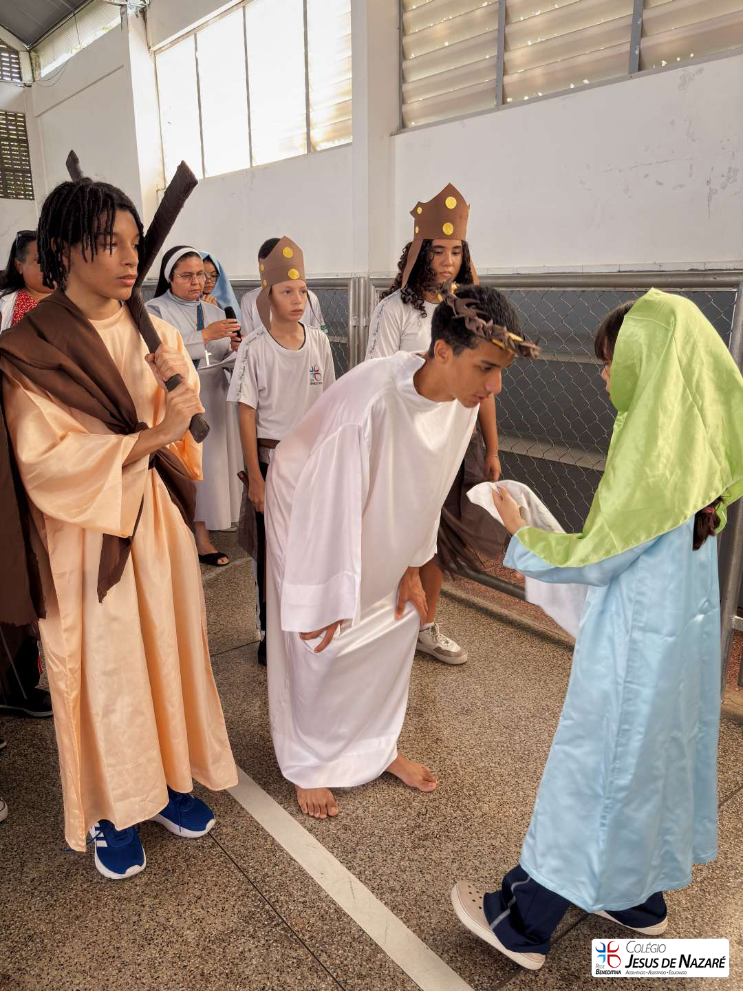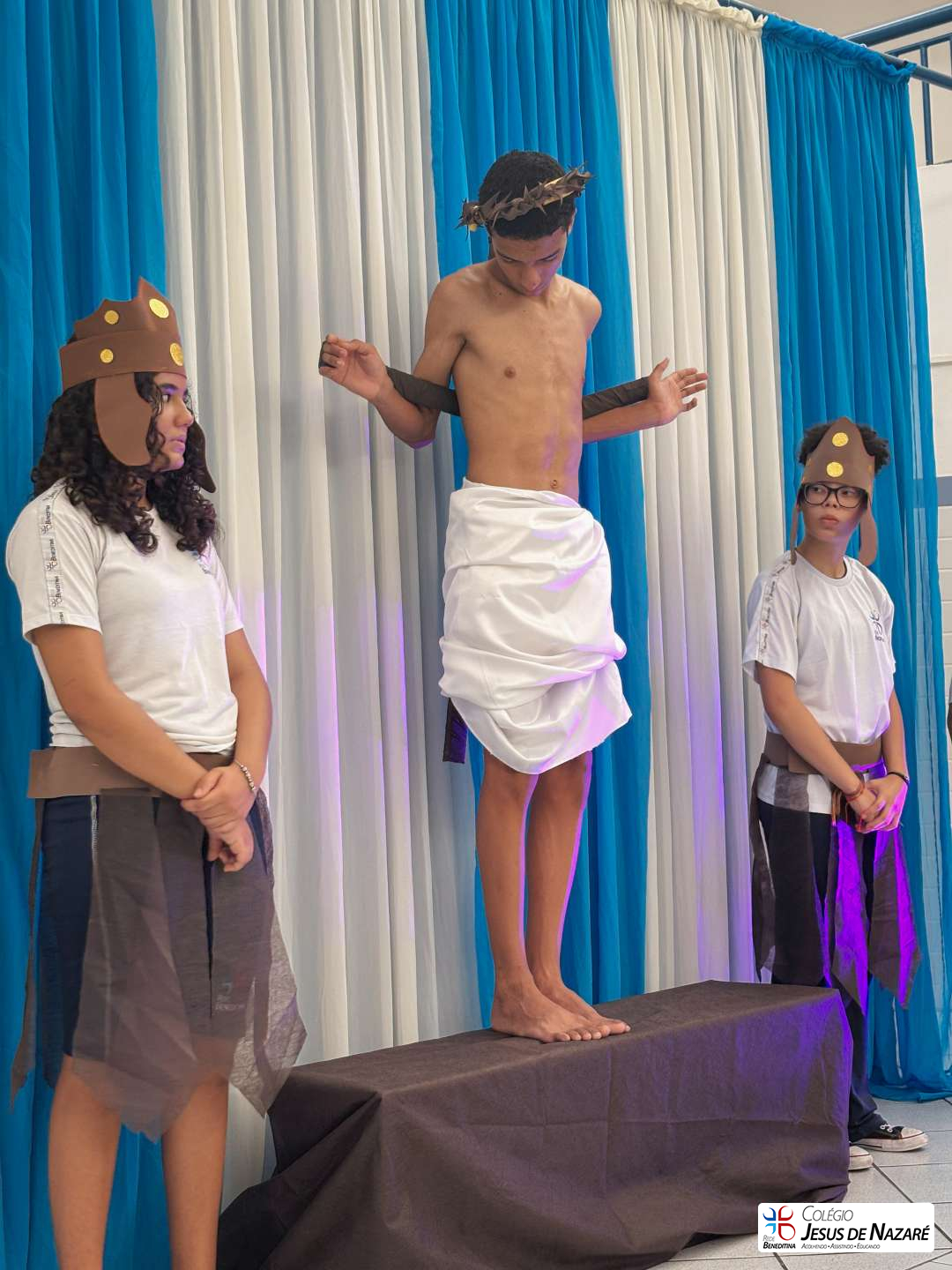 Na caminhada da Quaresma, vivenciamos um momento profundo de fé através da Via Sacra, encenada com dedicação pelos alunos do Ensino Fundamental. Ao reviverem os passos de Jesus até o Calvário, eles nos conduziram a refletir sobre o amor, o sacrifício e a entrega que marcam esse tempo tão especial.