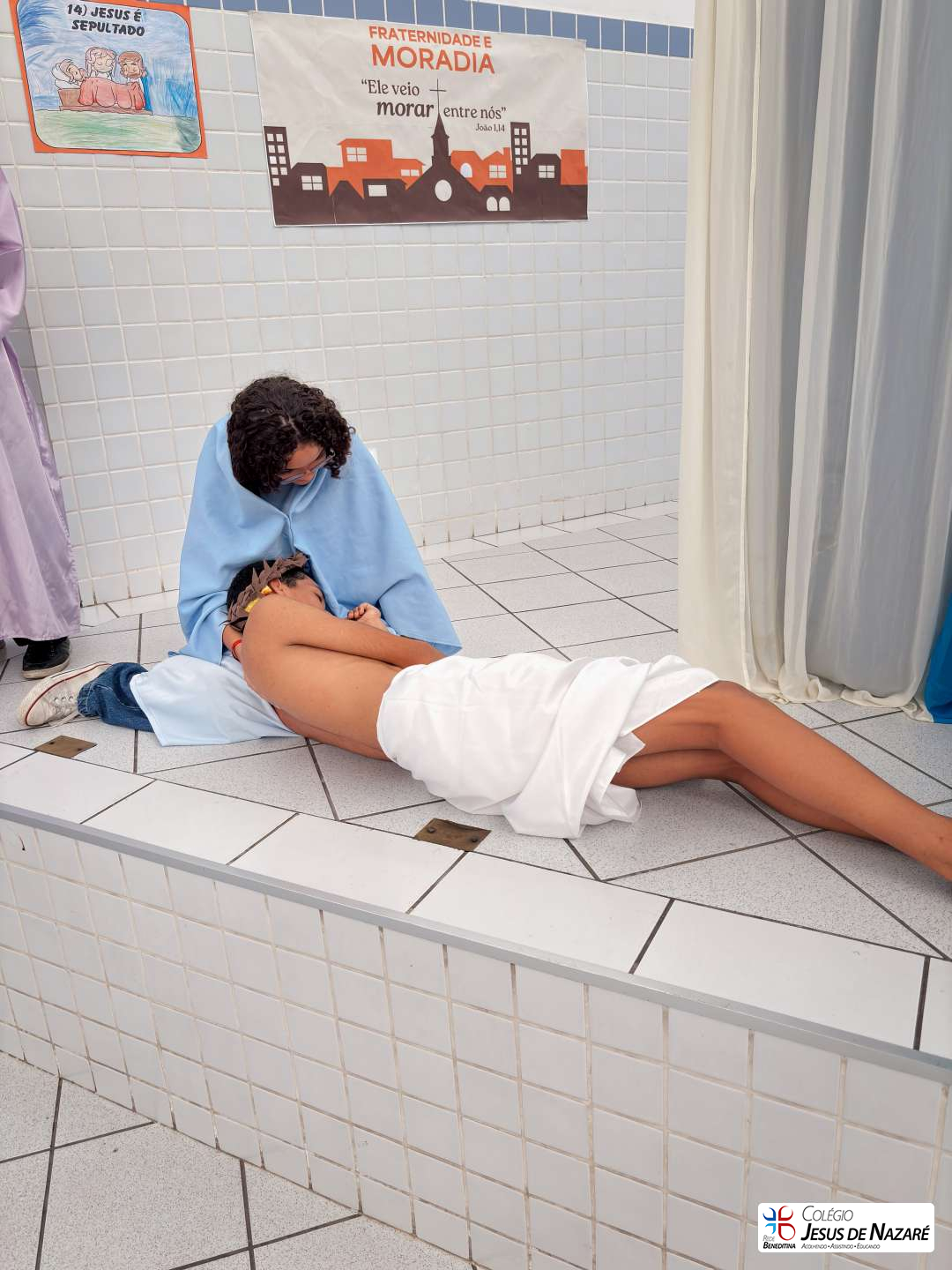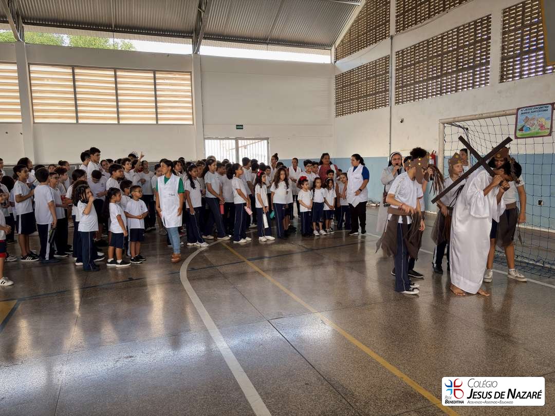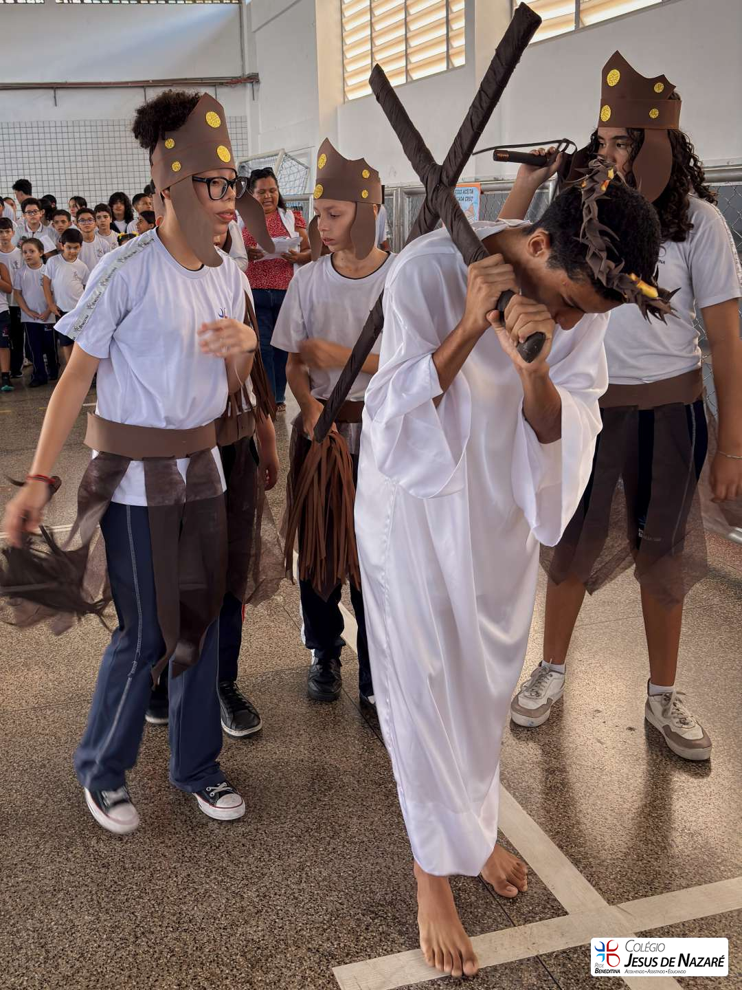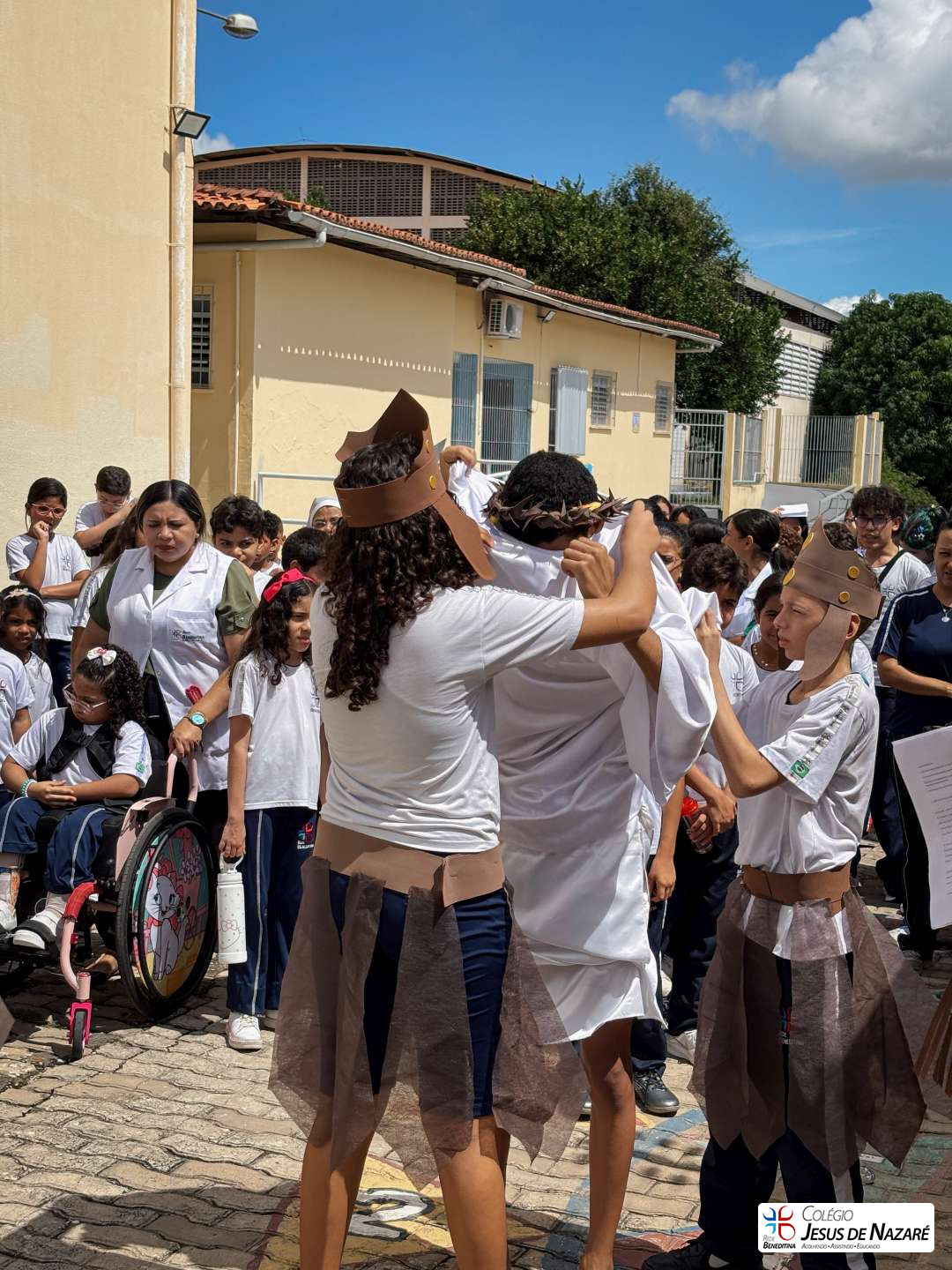 Na caminhada da Quaresma, vivenciamos um momento profundo de fé através da Via Sacra, encenada com dedicação pelos alunos do Ensino Fundamental. Ao reviverem os passos de Jesus até o Calvário, eles nos conduziram a refletir sobre o amor, o sacrifício e a entrega que marcam esse tempo tão especial.