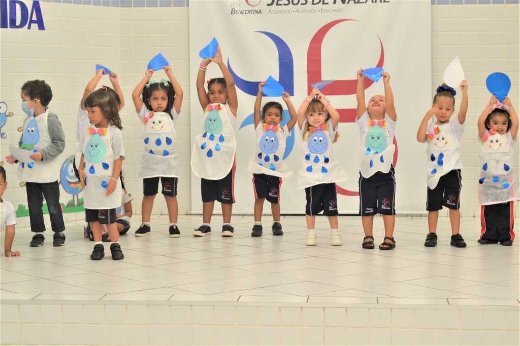 Em comemoração ao Dia Mundial da Água, as crianças da Ed. Infantil demonstraram de forma lúdica a importância da água para a vida e suas diversas utilidades.