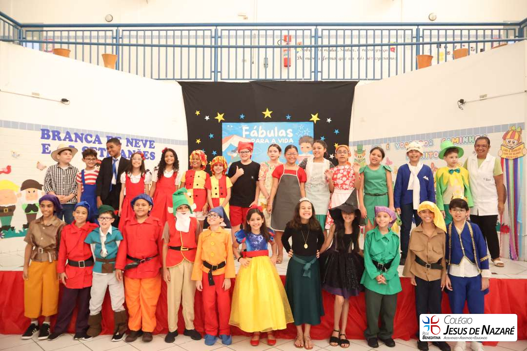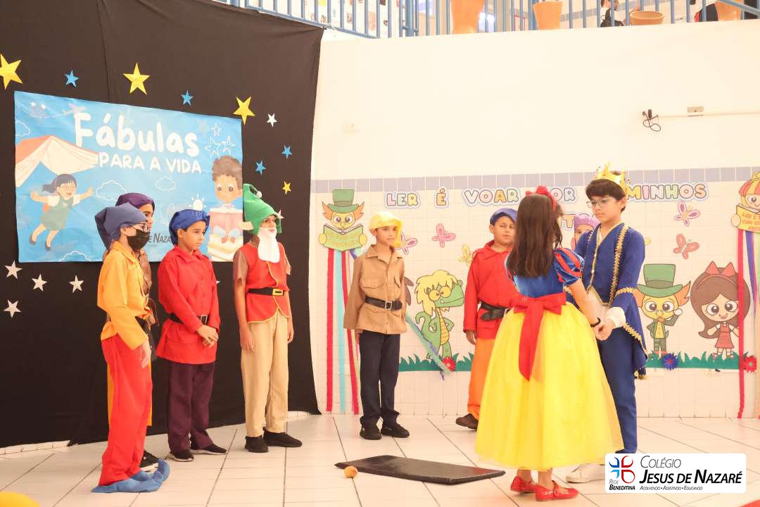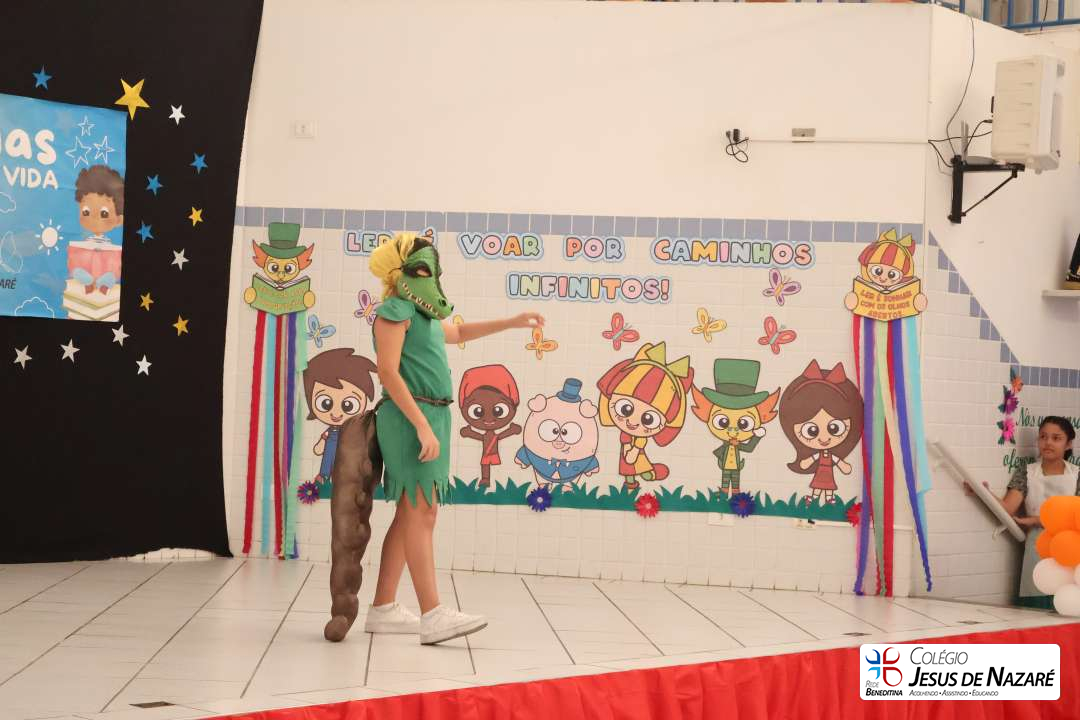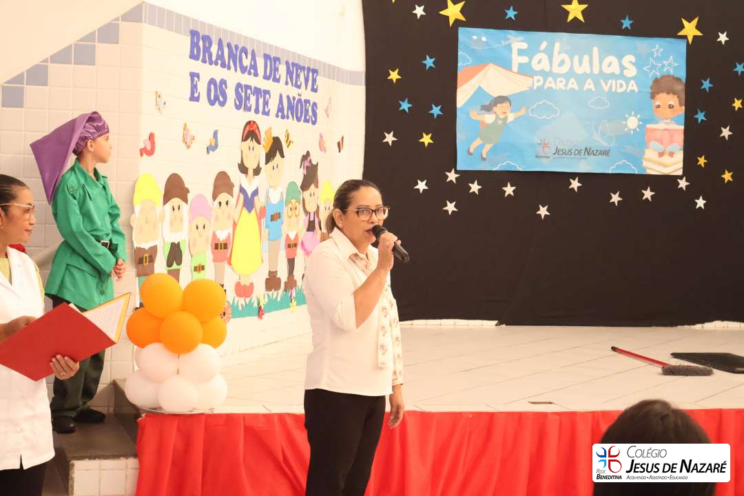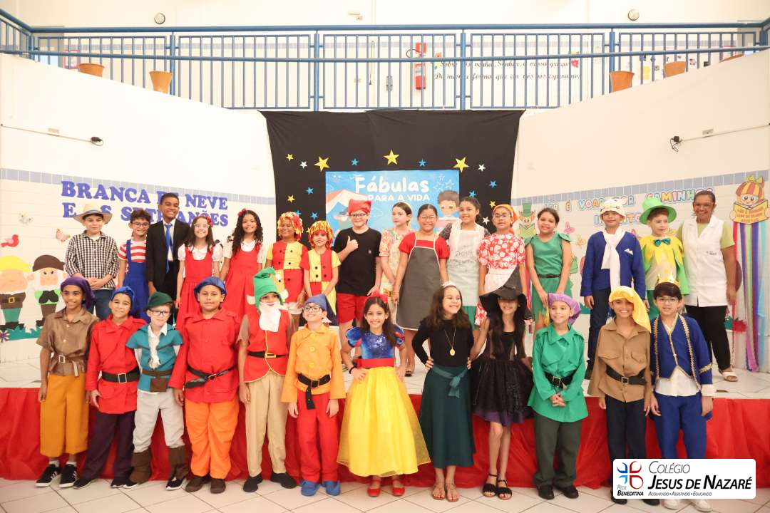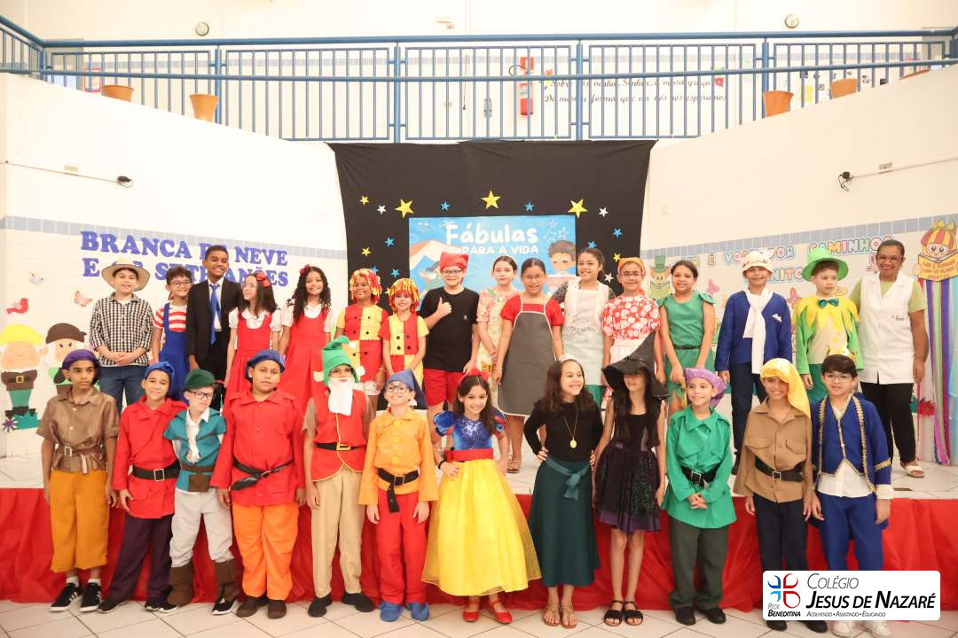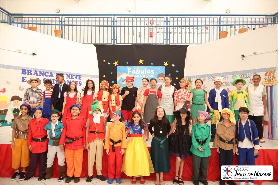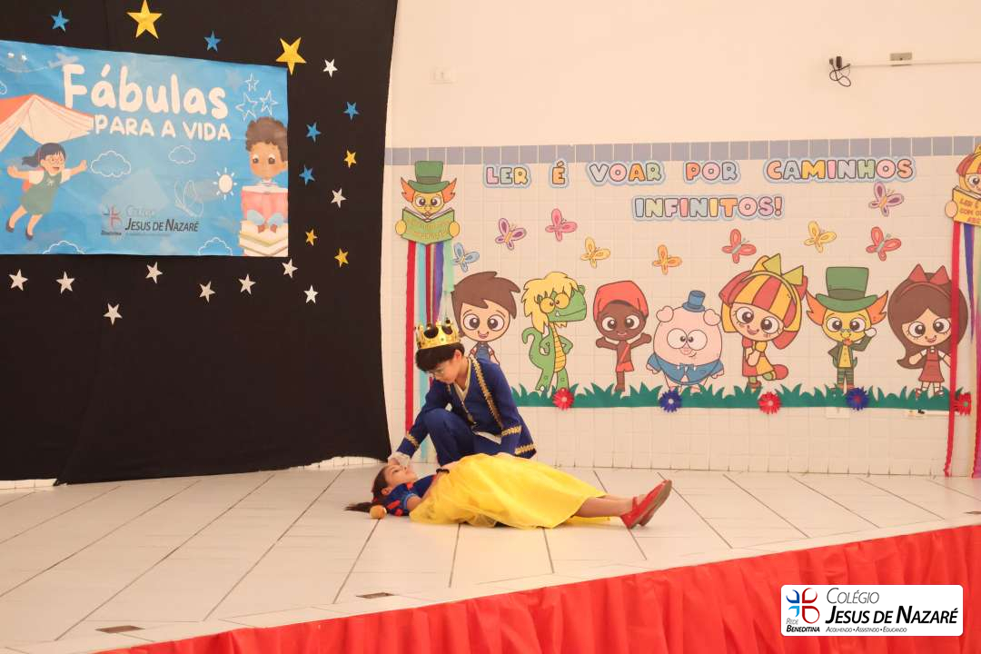 O 2º ano abriu sua participação com muita doçura e magia, trazendo ao palco histórias como Chapeuzinho Vermelho e Aladim, que encantaram a todos. Já o 3º ano emocionou com a sensibilidade do Pequeno Príncipe, lembrando-nos da amizade e de ver com o coração. O 4º ano brilhou com a criatividade do Sítio do Picapau Amarelo e a delicadeza da Branca de Neve. E o 5º ano encerrou em grande estilo com as fábulas, transmitindo lições preciosas para a vida.