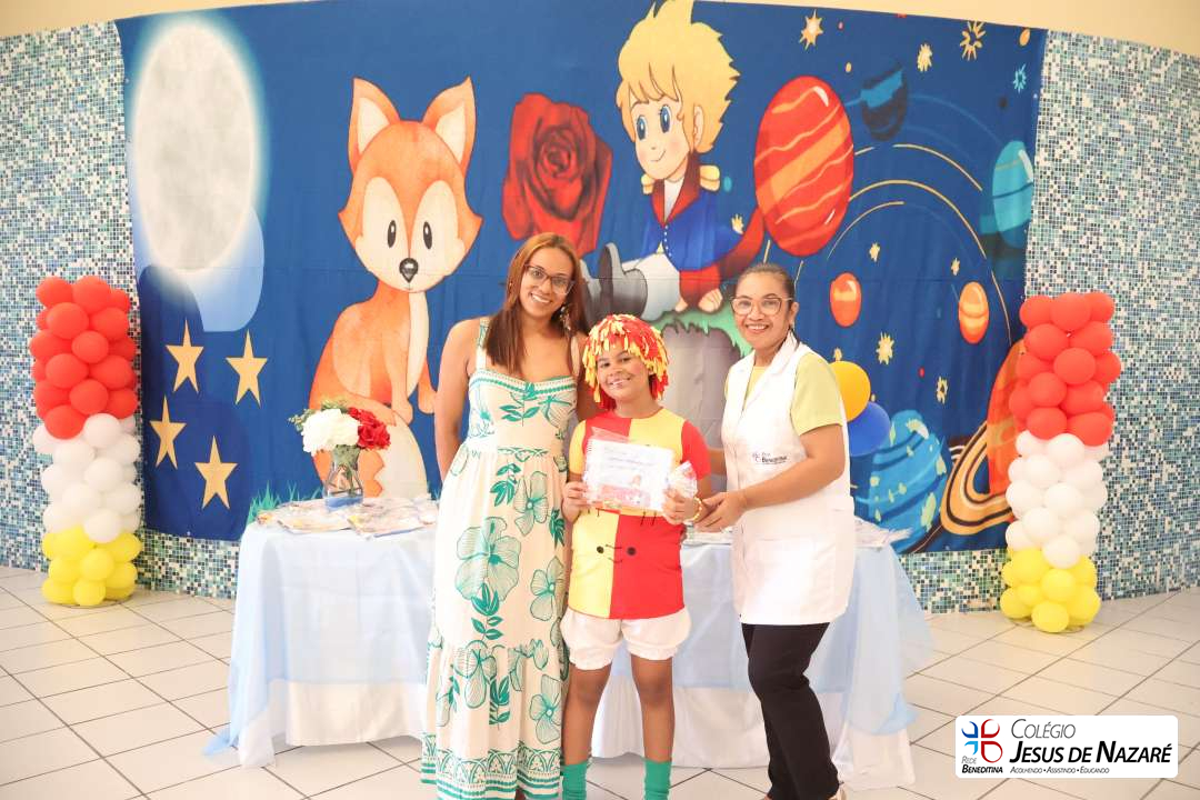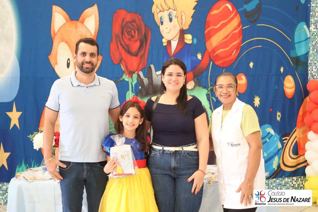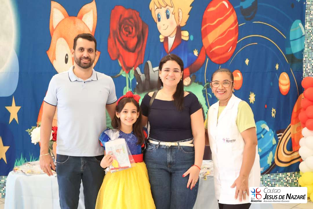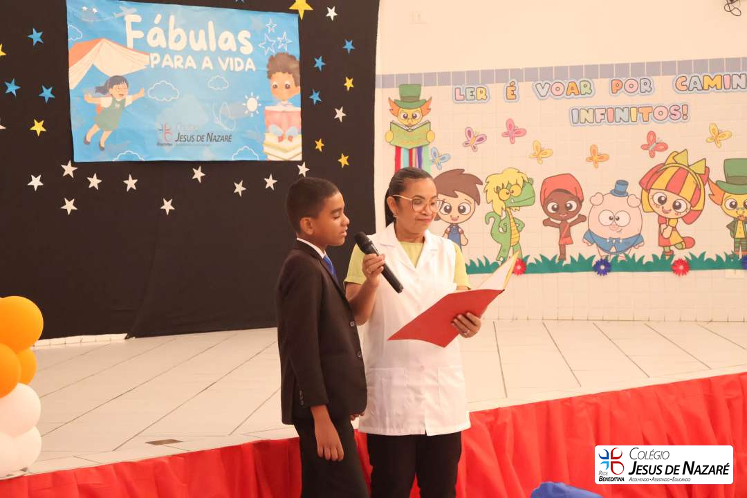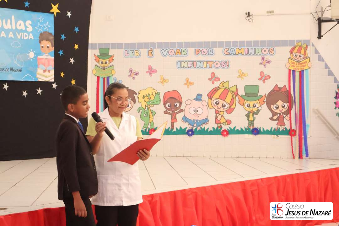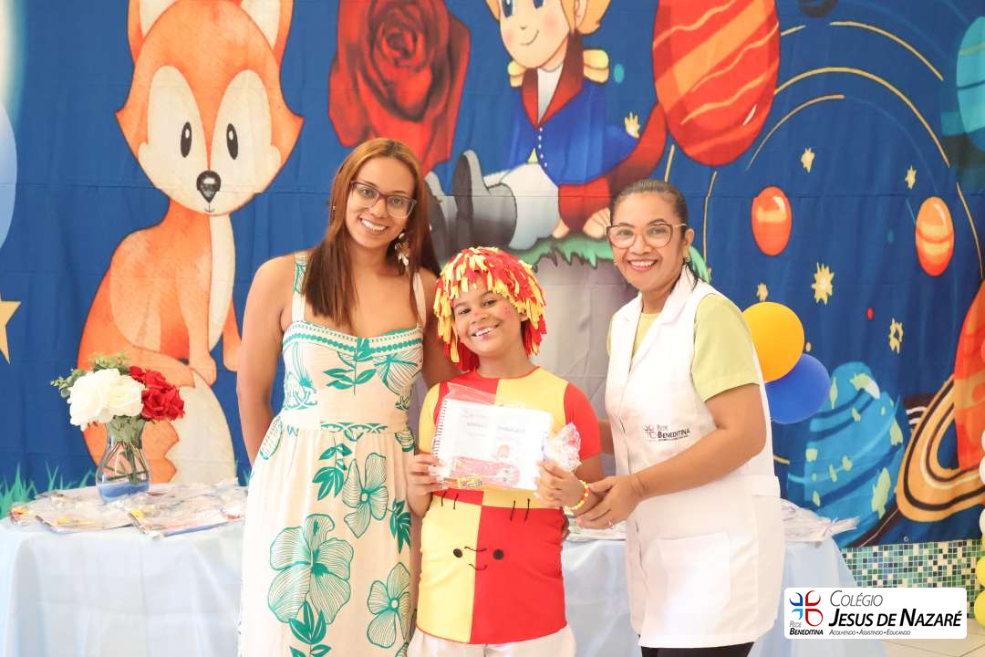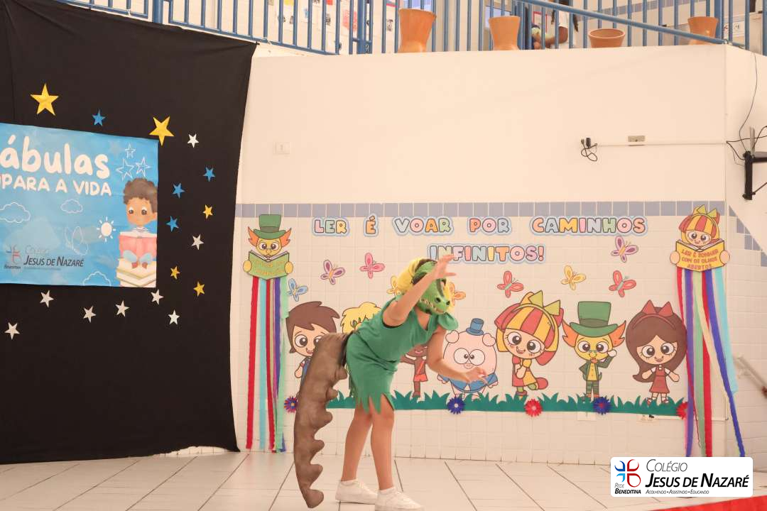 O 2º ano abriu sua participação com muita doçura e magia, trazendo ao palco histórias como Chapeuzinho Vermelho e Aladim, que encantaram a todos. Já o 3º ano emocionou com a sensibilidade do Pequeno Príncipe, lembrando-nos da amizade e de ver com o coração. O 4º ano brilhou com a criatividade do Sítio do Picapau Amarelo e a delicadeza da Branca de Neve. E o 5º ano encerrou em grande estilo com as fábulas, transmitindo lições preciosas para a vida.