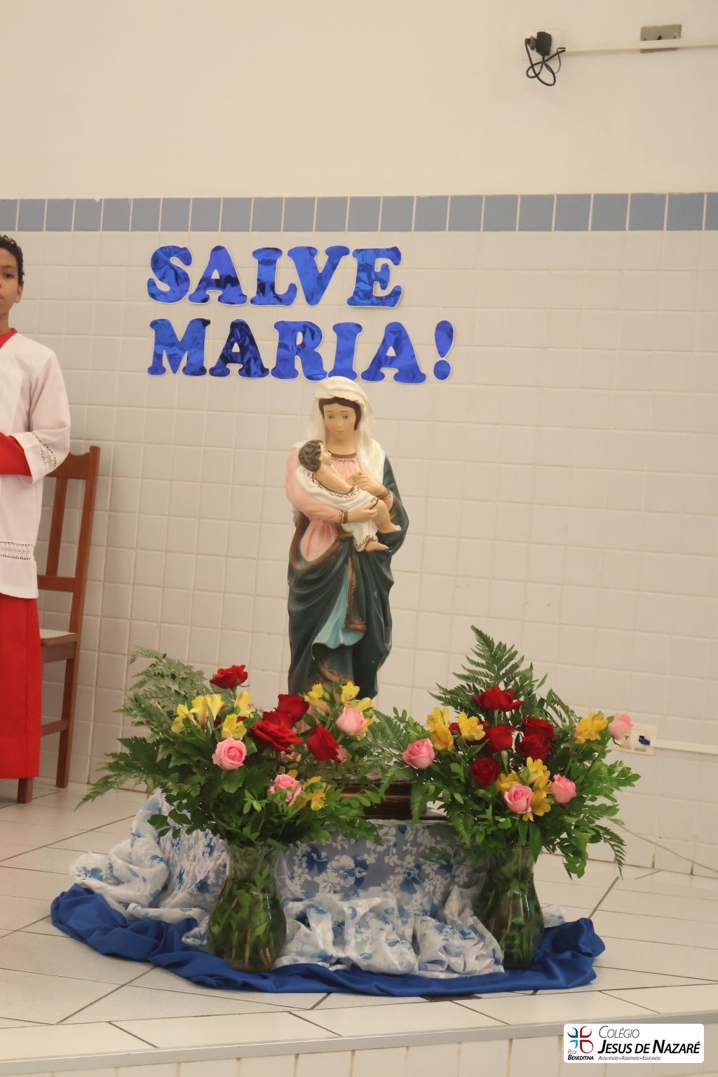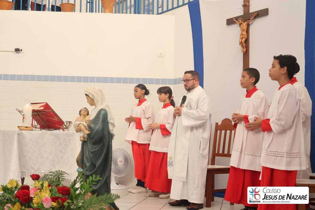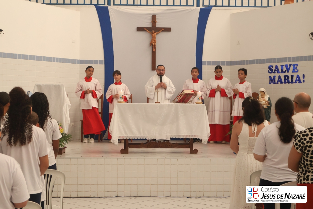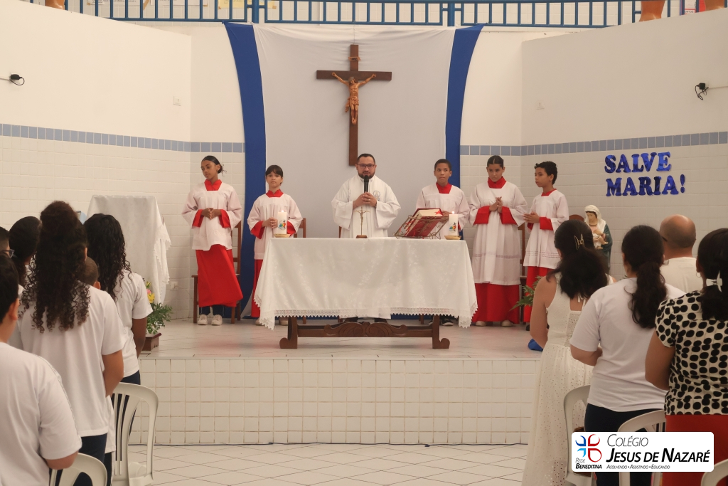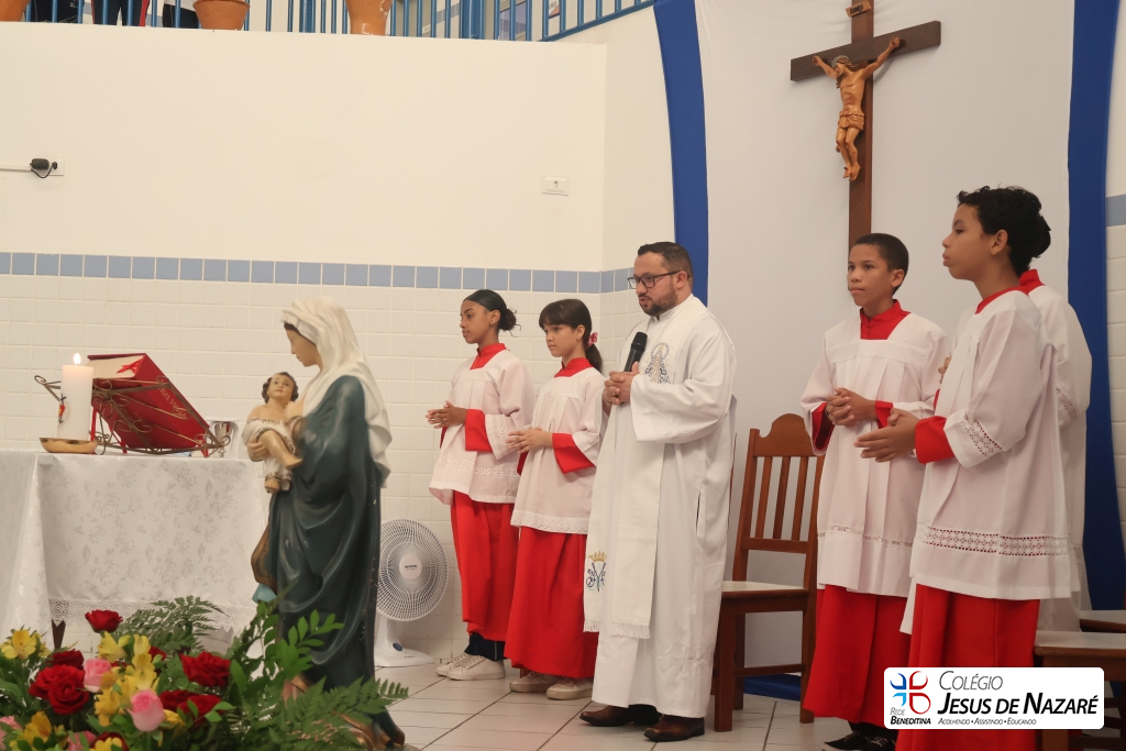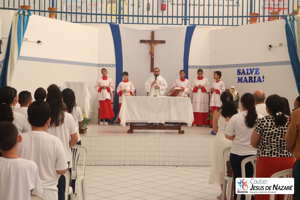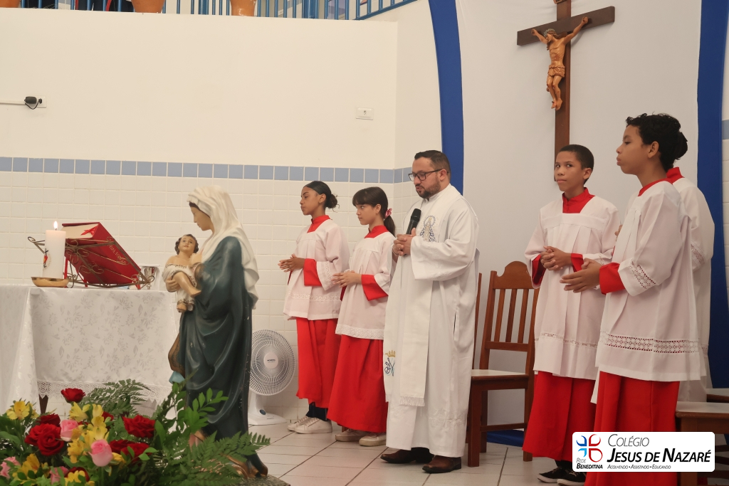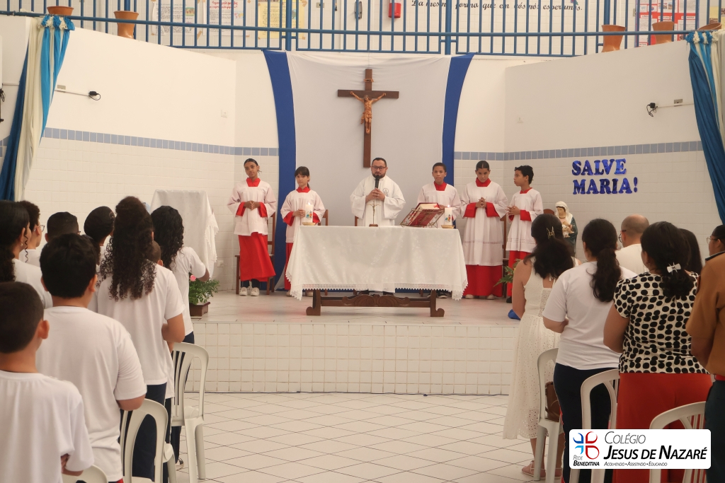 Hoje vivemos um momento de profunda fé e emoção no Colégio Jesus de Nazaré! Celebramos a Santa Missa com a Coroação de Nossa Senhora, com a presença especial de pais, responsáveis, alunos e colaboradores.
