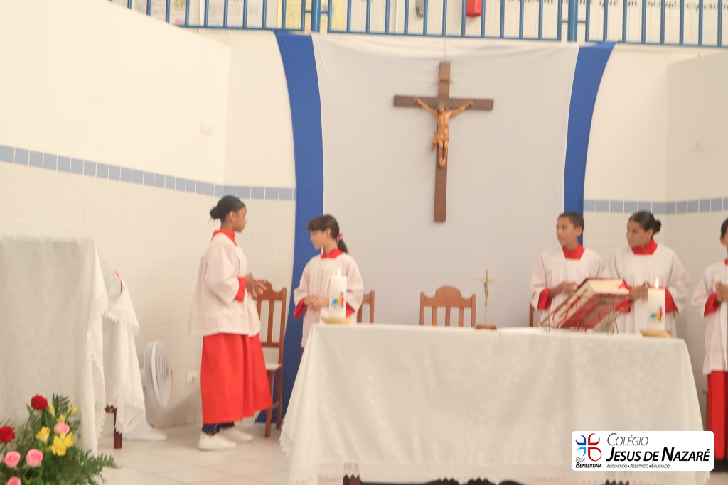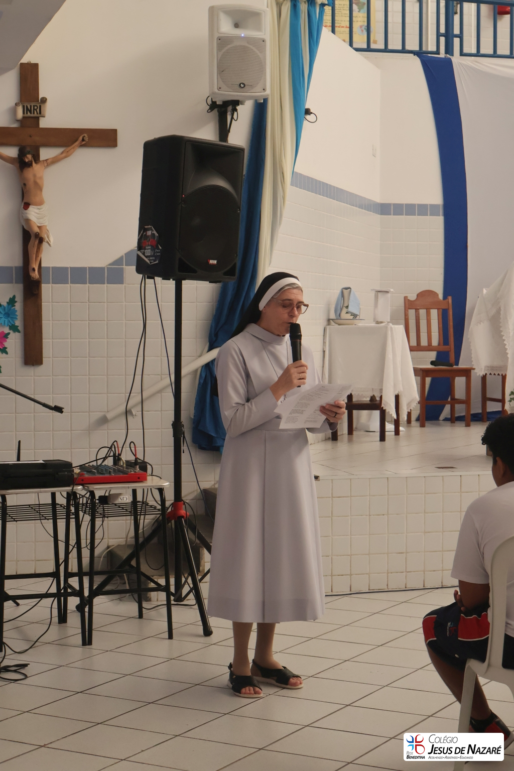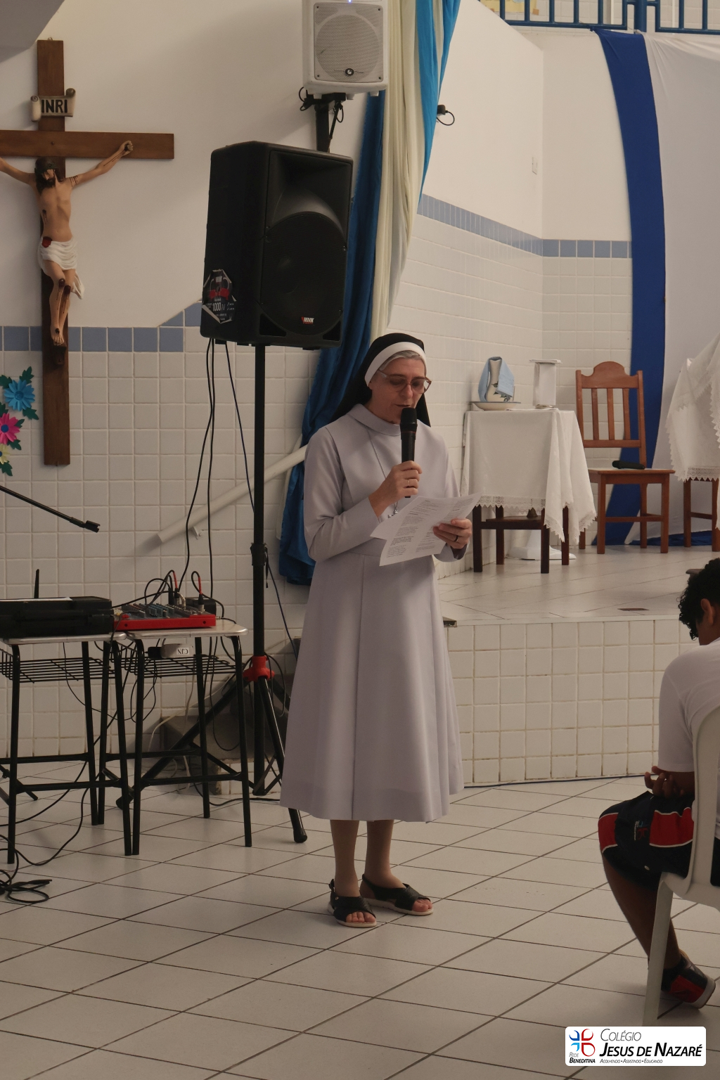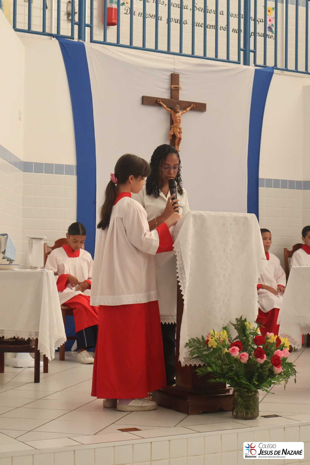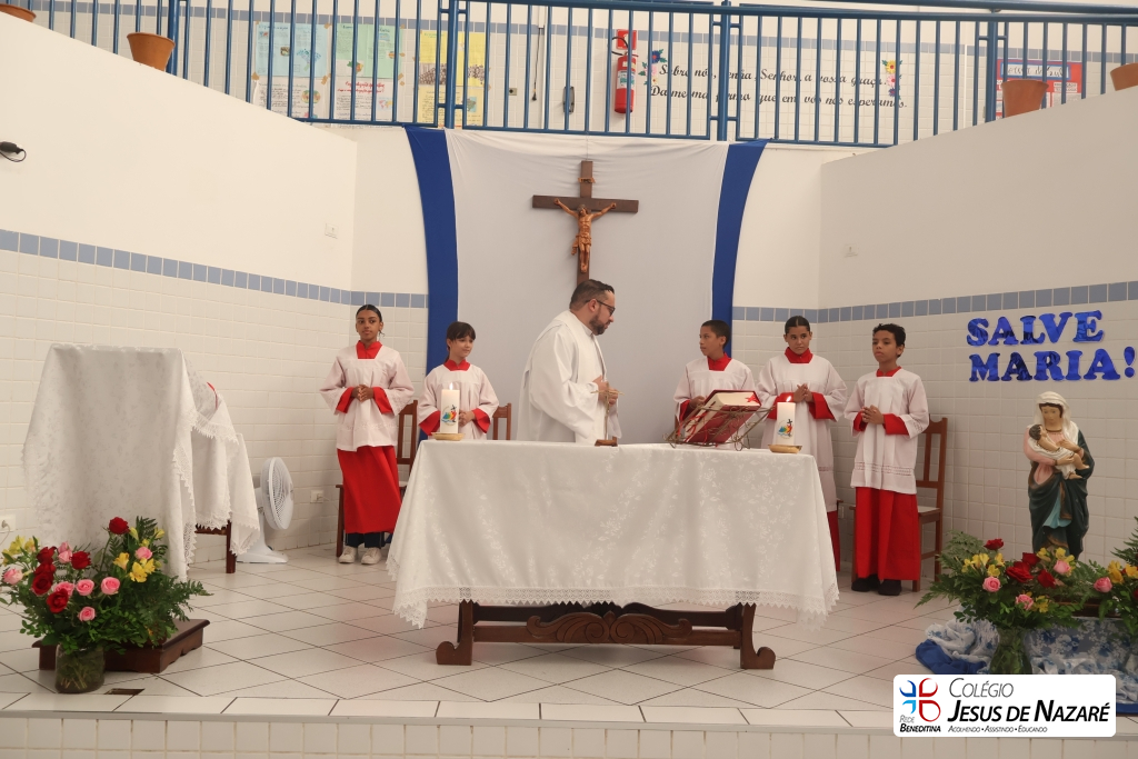 Hoje vivemos um momento de profunda fé e emoção no Colégio Jesus de Nazaré! Celebramos a Santa Missa com a Coroação de Nossa Senhora, com a presença especial de pais, responsáveis, alunos e colaboradores.