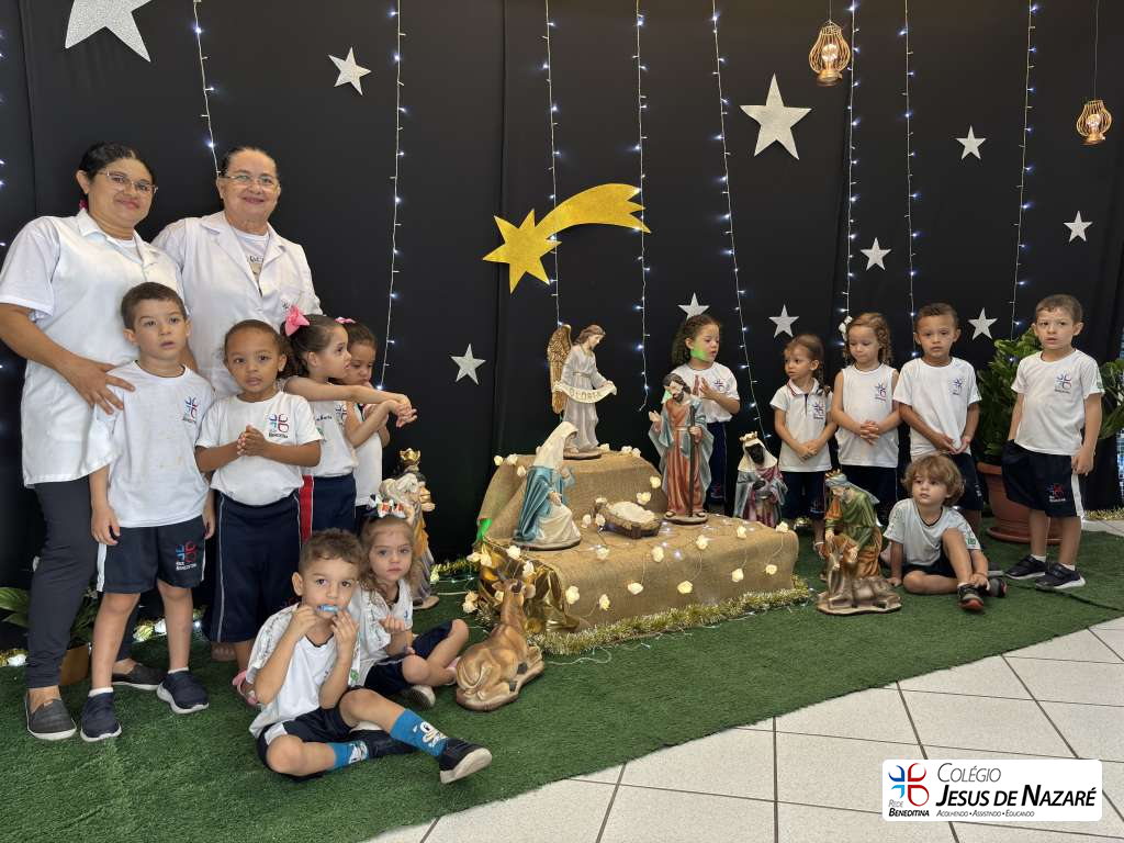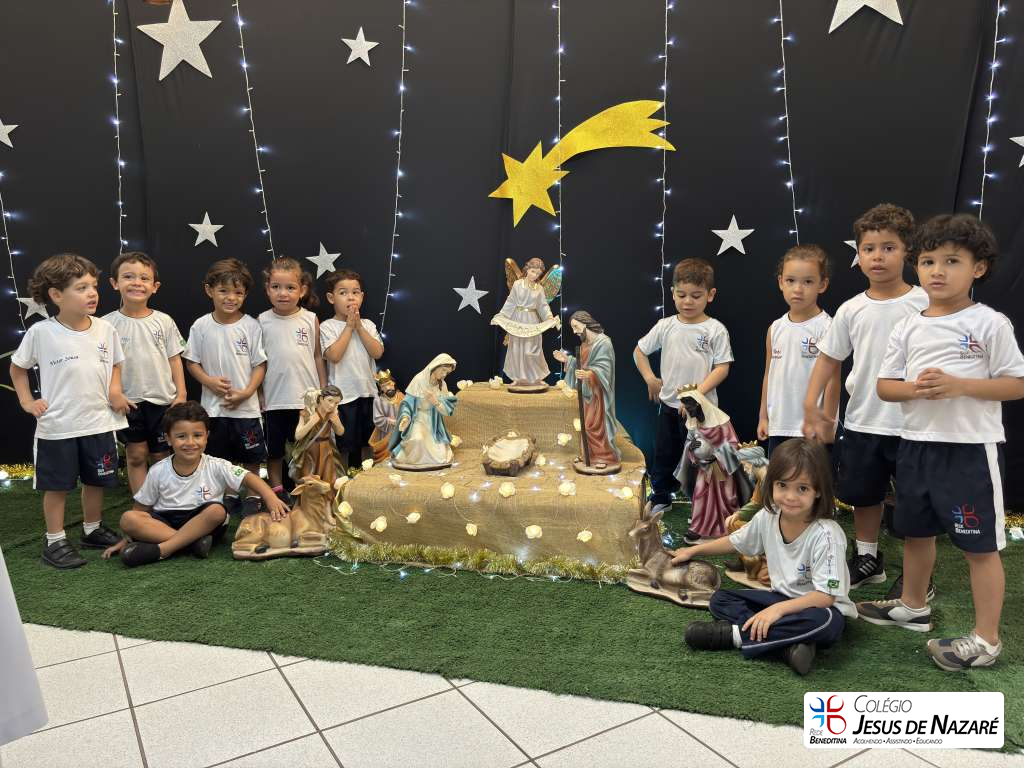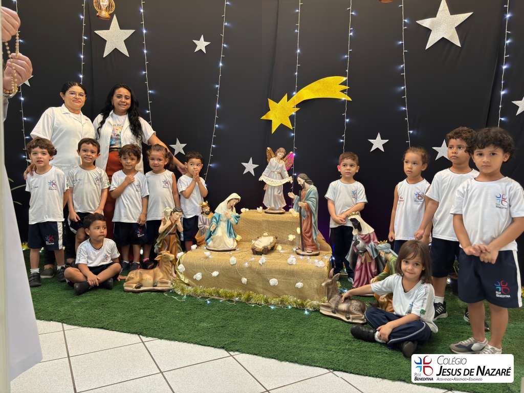 As crianças aprenderam, de forma simples e encantadora, sobre o verdadeiro significado do presépio: o nascimento de Jesus, o amor, o cuidado e a importância da família.