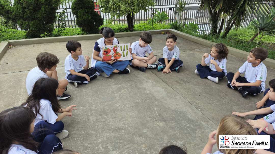 Os alunos do 1º ano do Ensino Fundamental – Anos Iniciais participaram de uma atividade voltada à exploração dos encontros vocálicos, etapa essencial no processo de alfabetização.