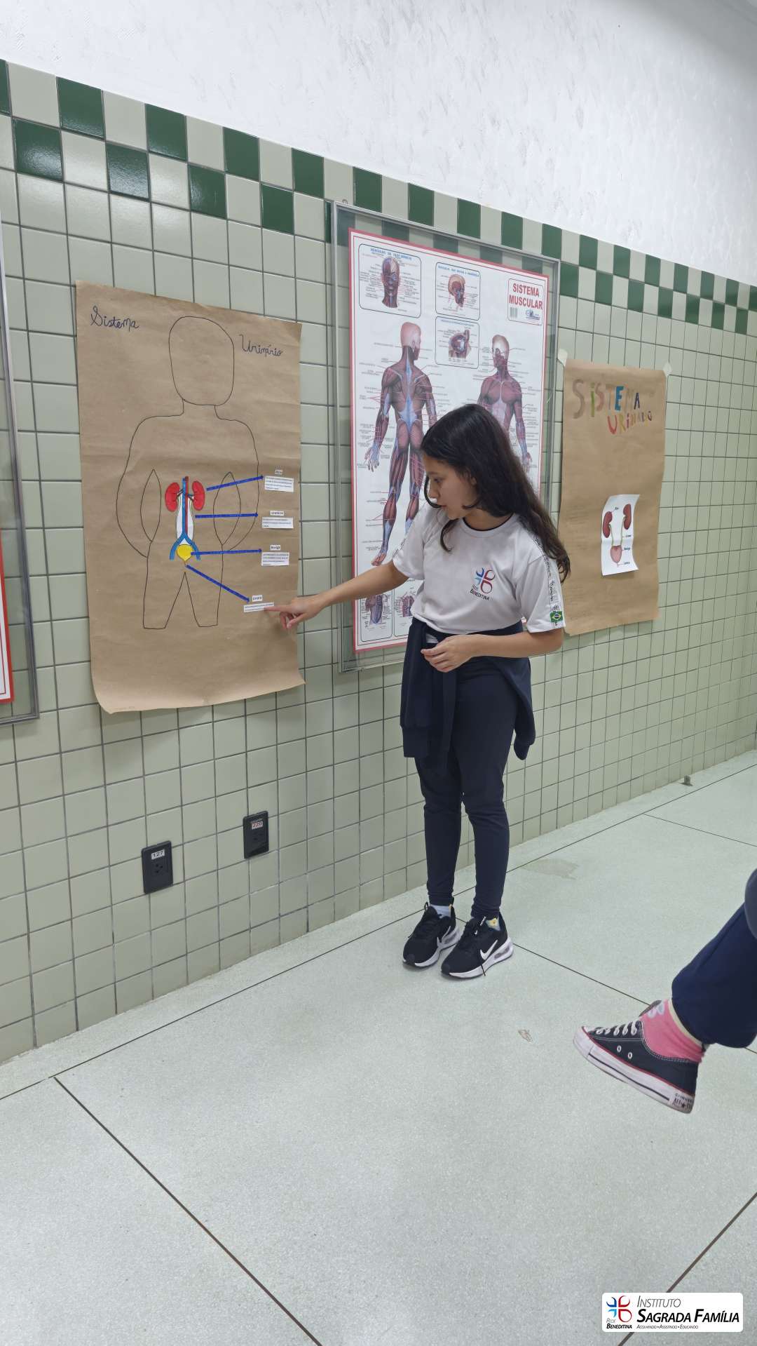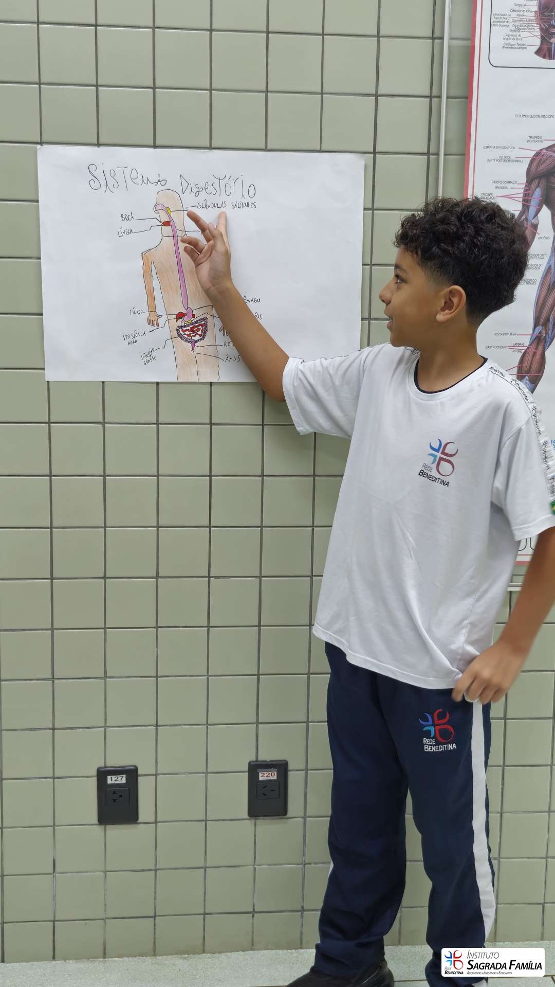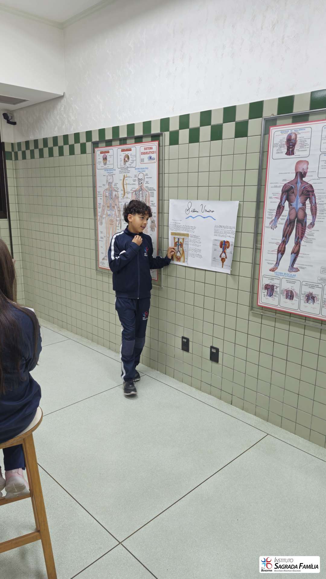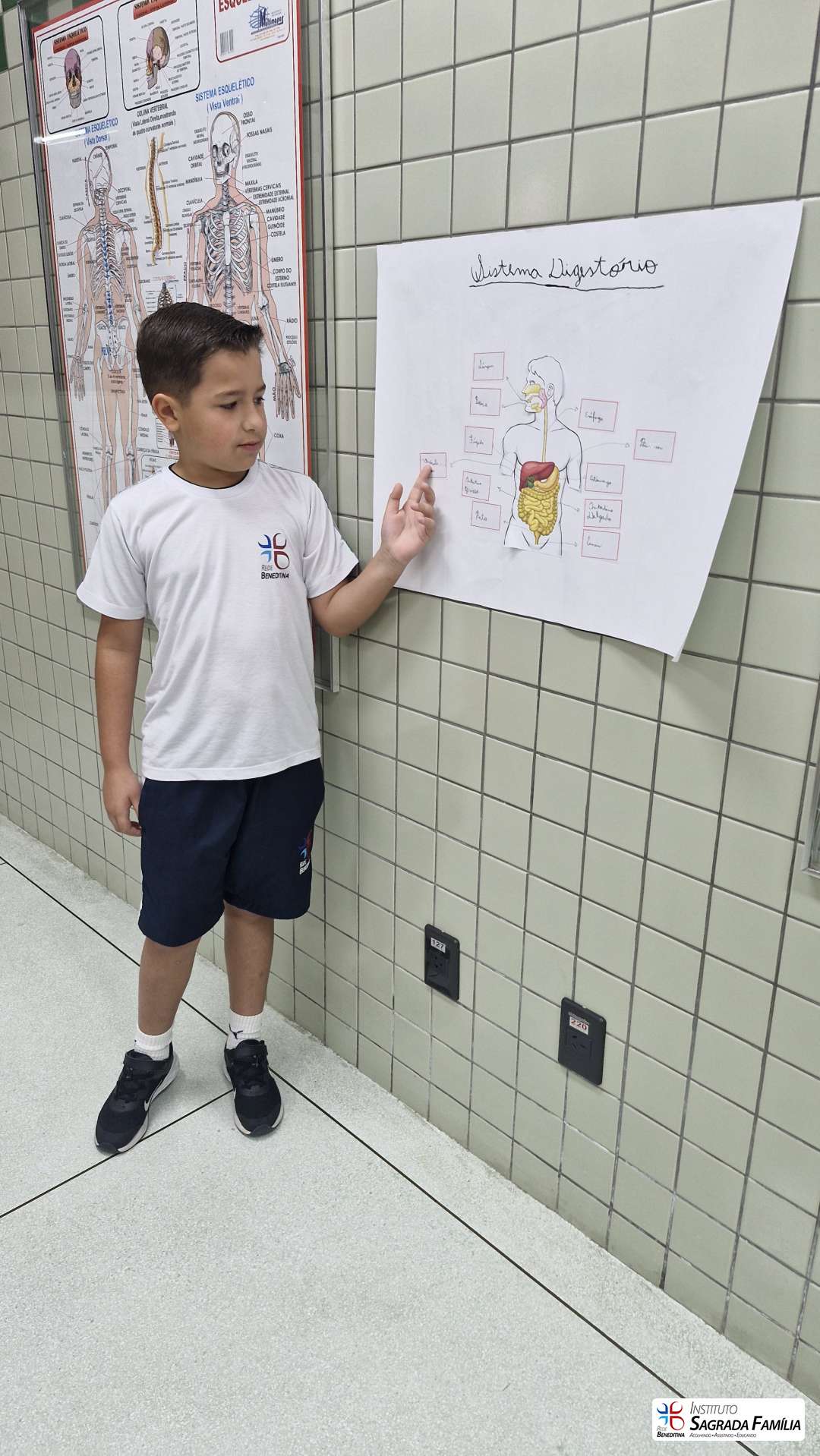 Durante as apresentações, as turmas exploraram os sistemas digestório, respiratório, urinário, cardiovascular e esquelético, explicando suas funções e curiosidades por meio de cartazes elaborados com muito capricho, cores e criatividade.
