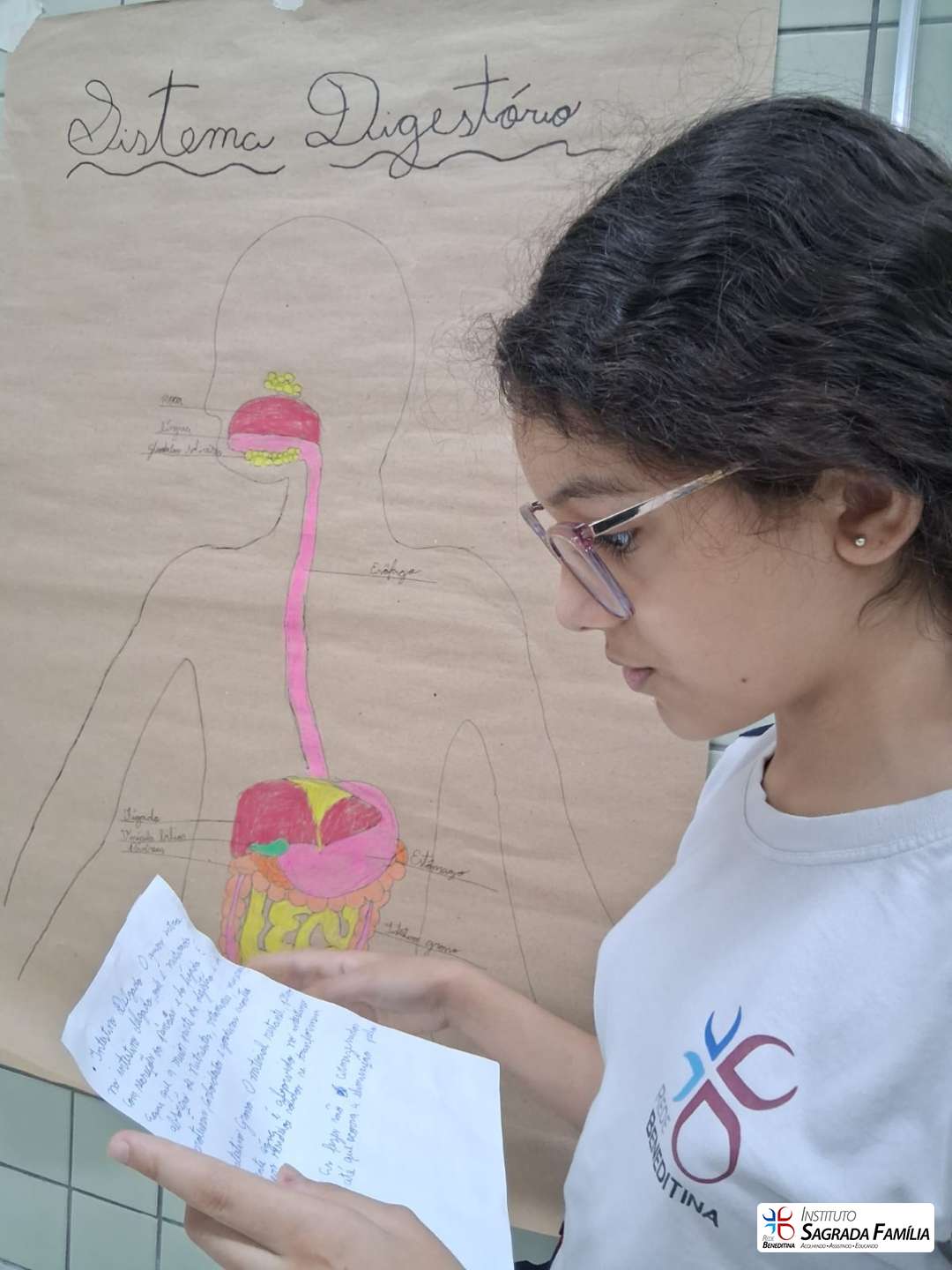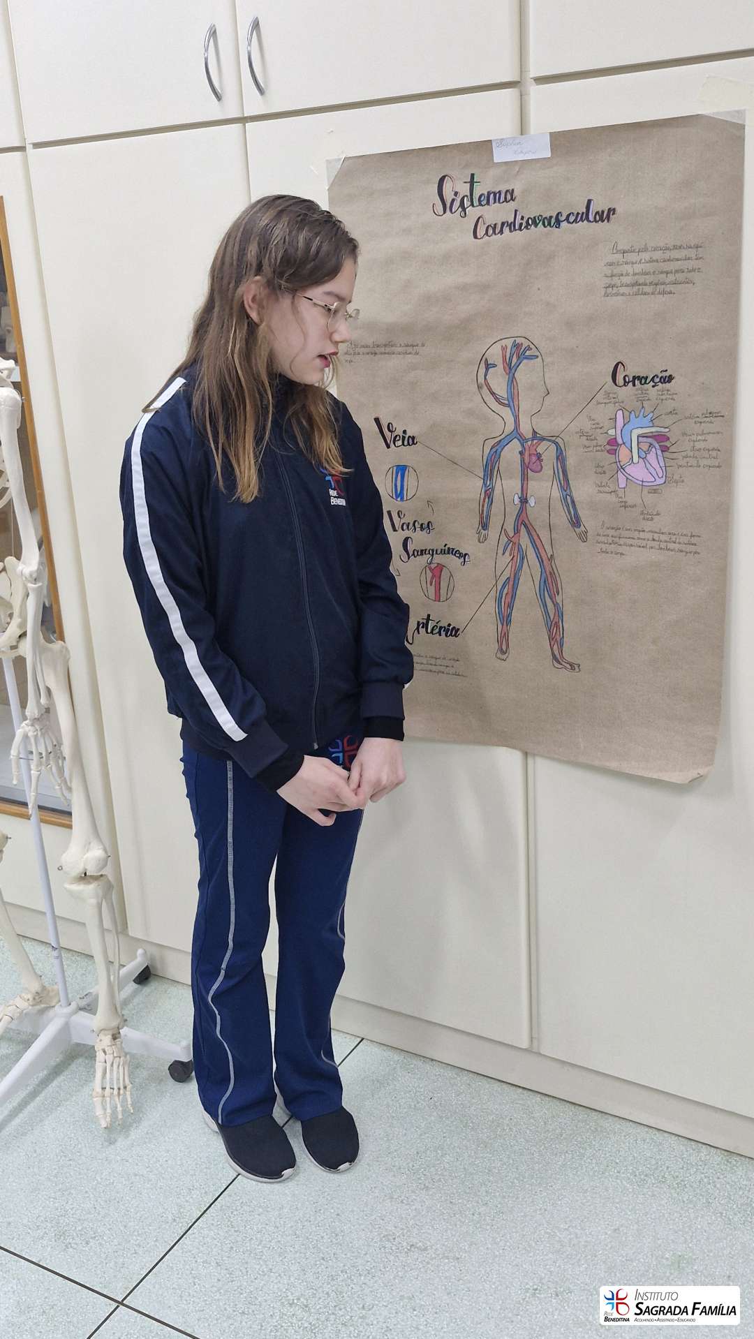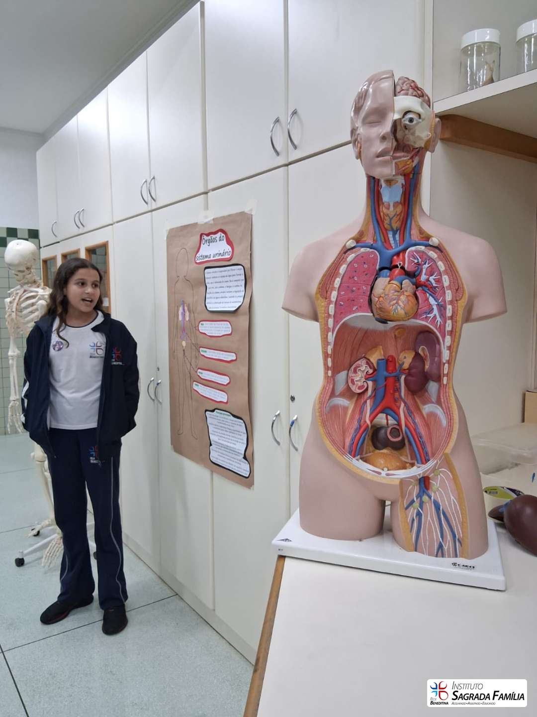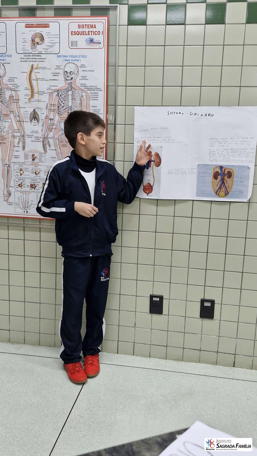 Durante as apresentações, as turmas exploraram os sistemas digestório, respiratório, urinário, cardiovascular e esquelético, explicando suas funções e curiosidades por meio de cartazes elaborados com muito capricho, cores e criatividade.