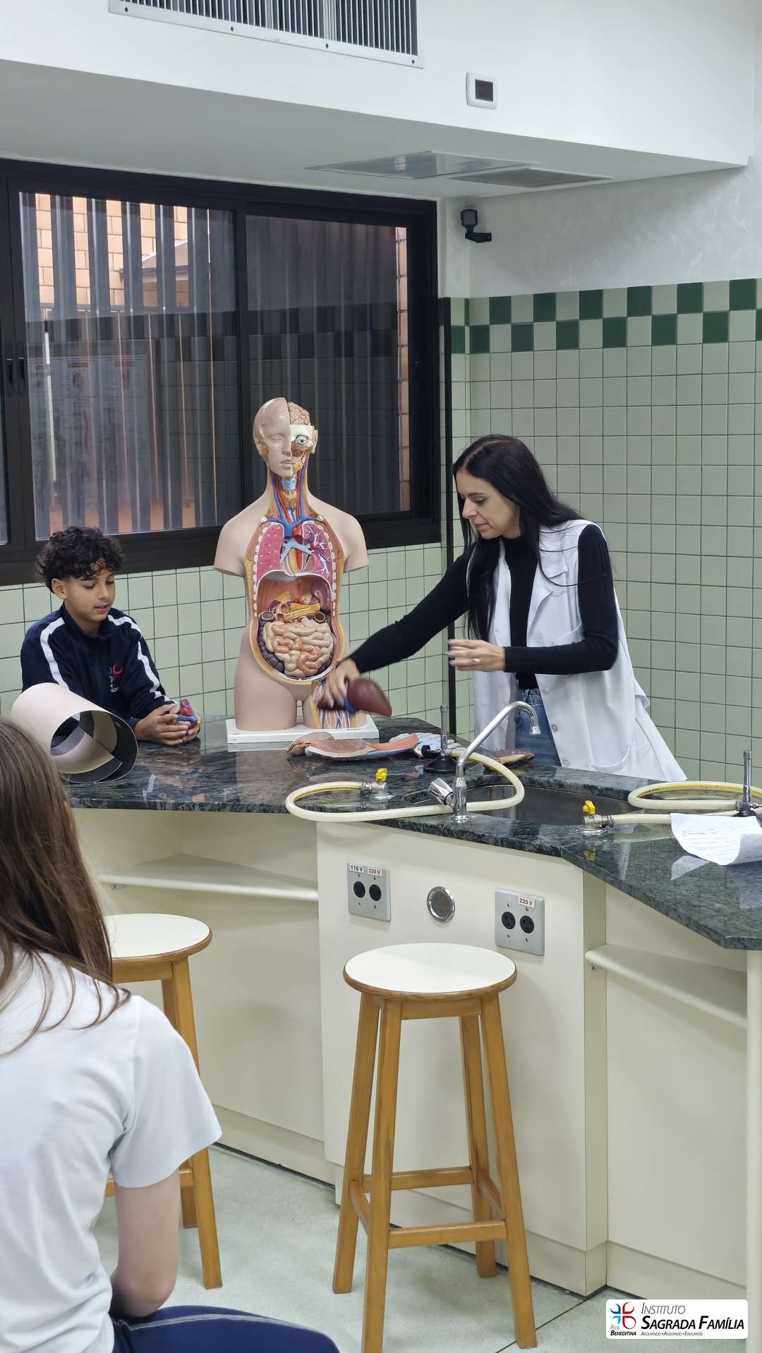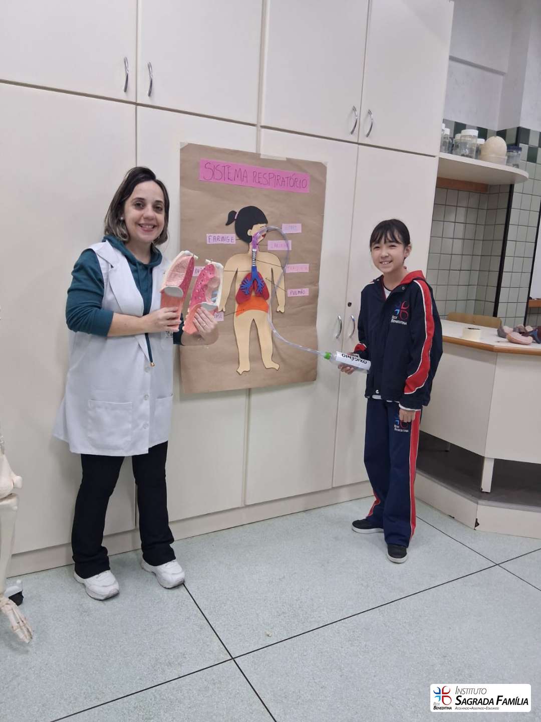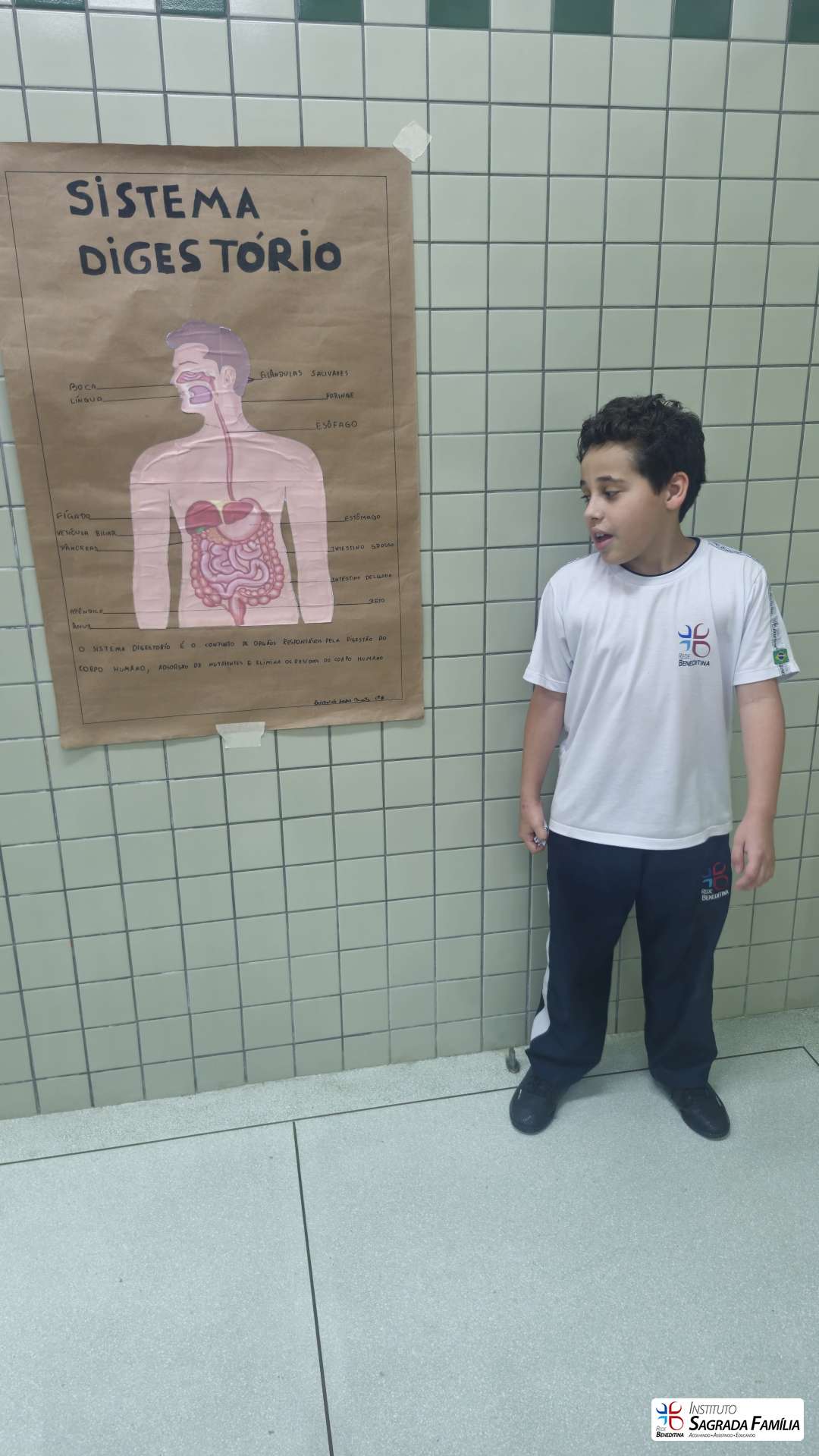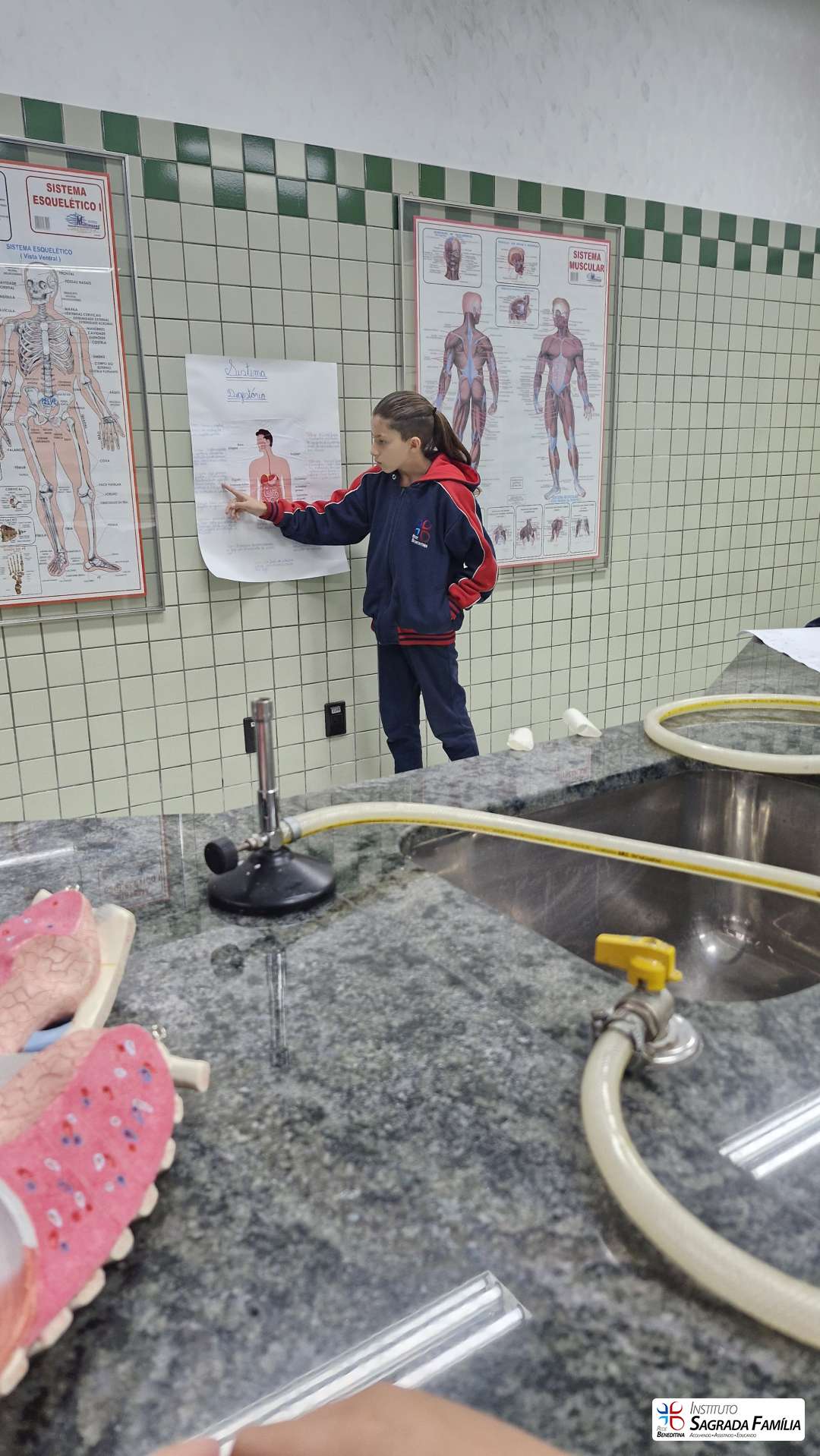 Durante as apresentações, as turmas exploraram os sistemas digestório, respiratório, urinário, cardiovascular e esquelético, explicando suas funções e curiosidades por meio de cartazes elaborados com muito capricho, cores e criatividade.