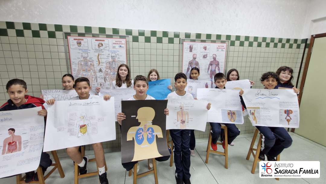 Os alunos do 5º ano A e B protagonizaram uma atividade especial de Ciências, demonstrando criatividade, organização e aprofundamento nos estudos sobre os sistemas do corpo humano.