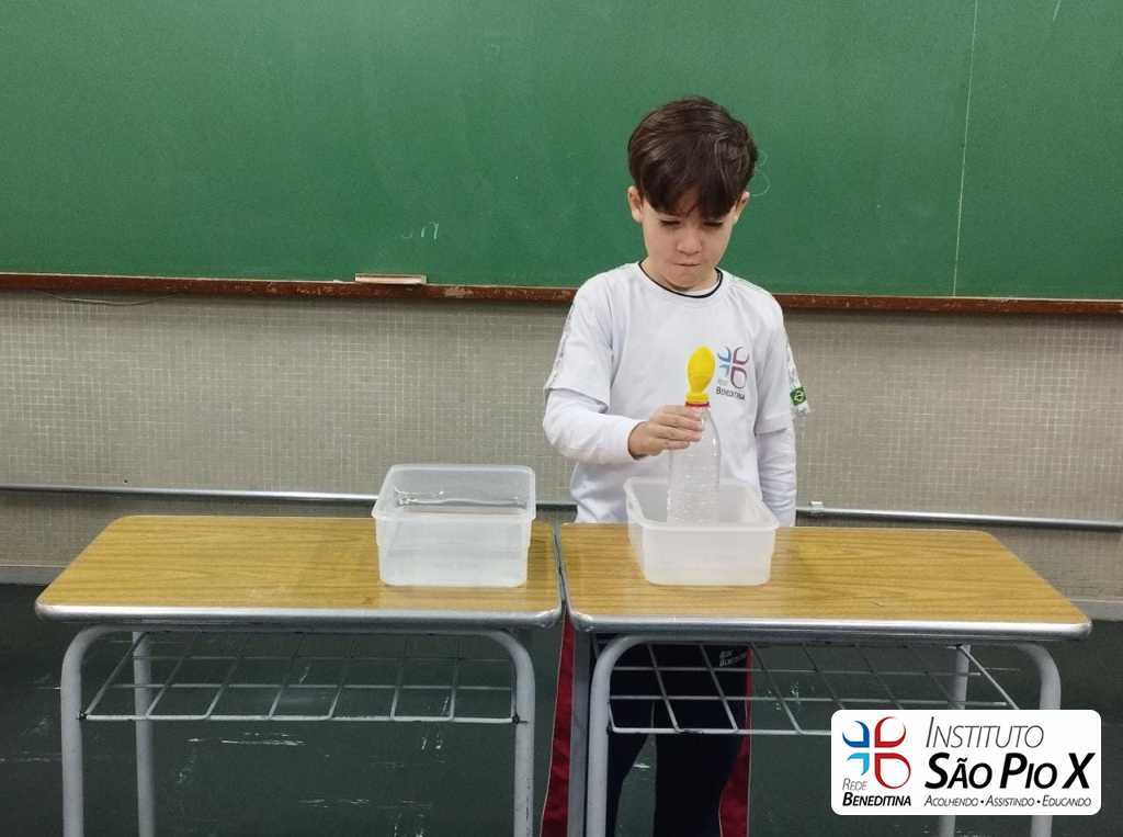 Na aula de Ciências da natureza, os alunos do 2º ano A e B realizaram a experiência do ar quente e frio, depois montaram seus balões compreendendo que o ar quente é mais leve.