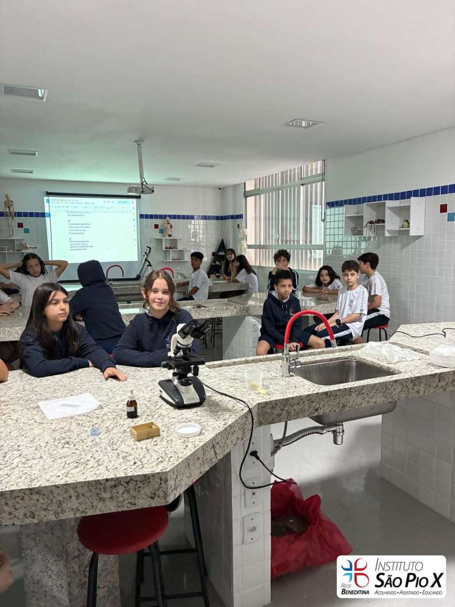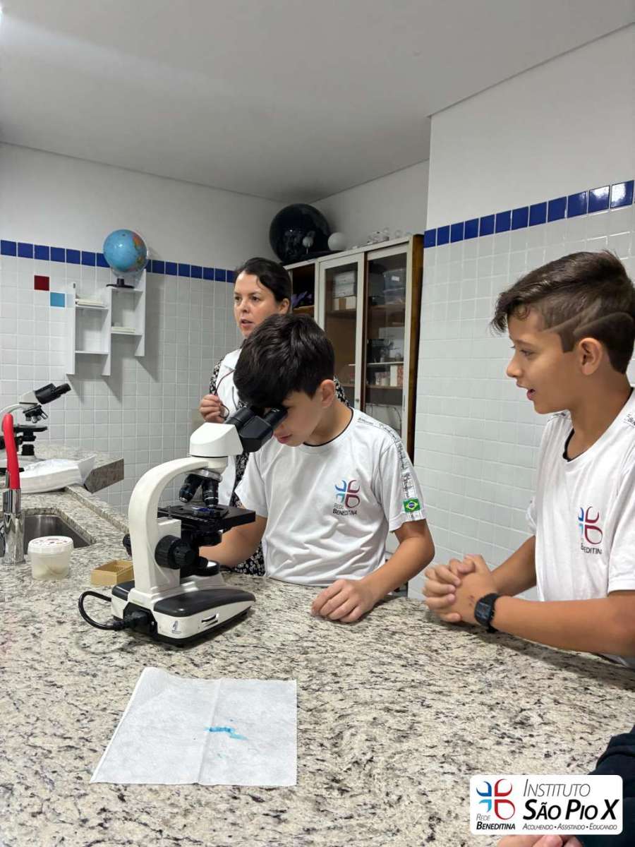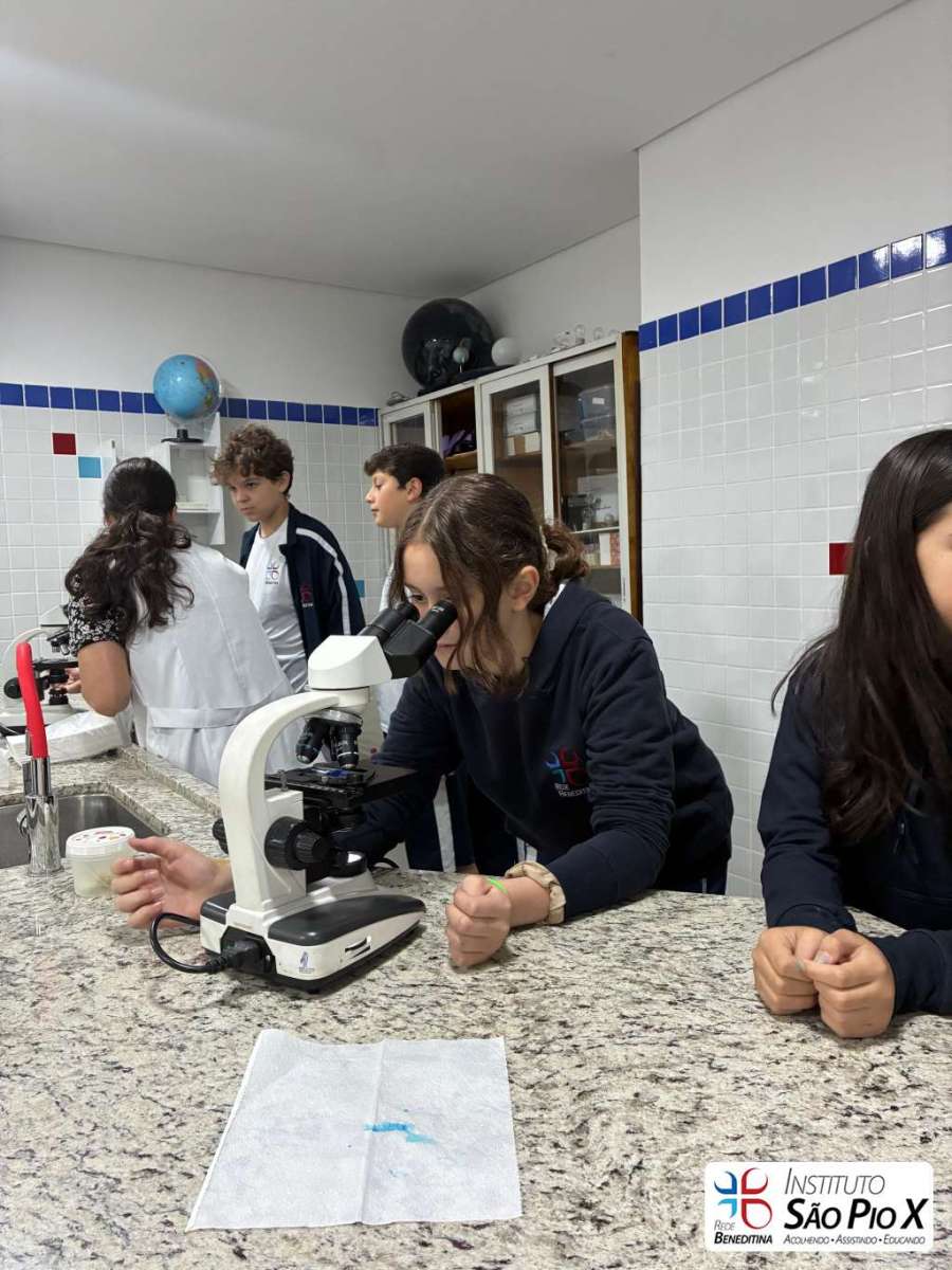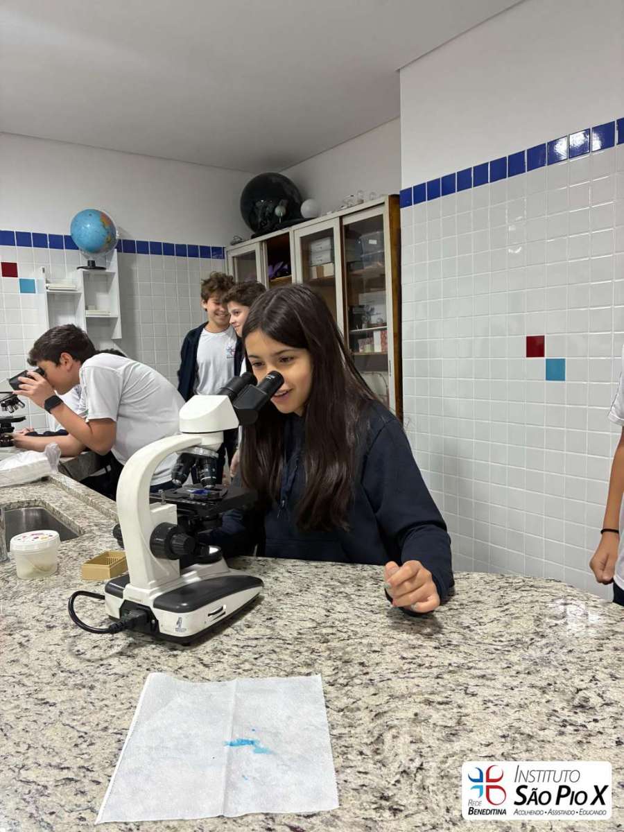 Nossos alunos do 6º ano montaram lâminas com a epiderme da cebola para observar as células no microscópio.