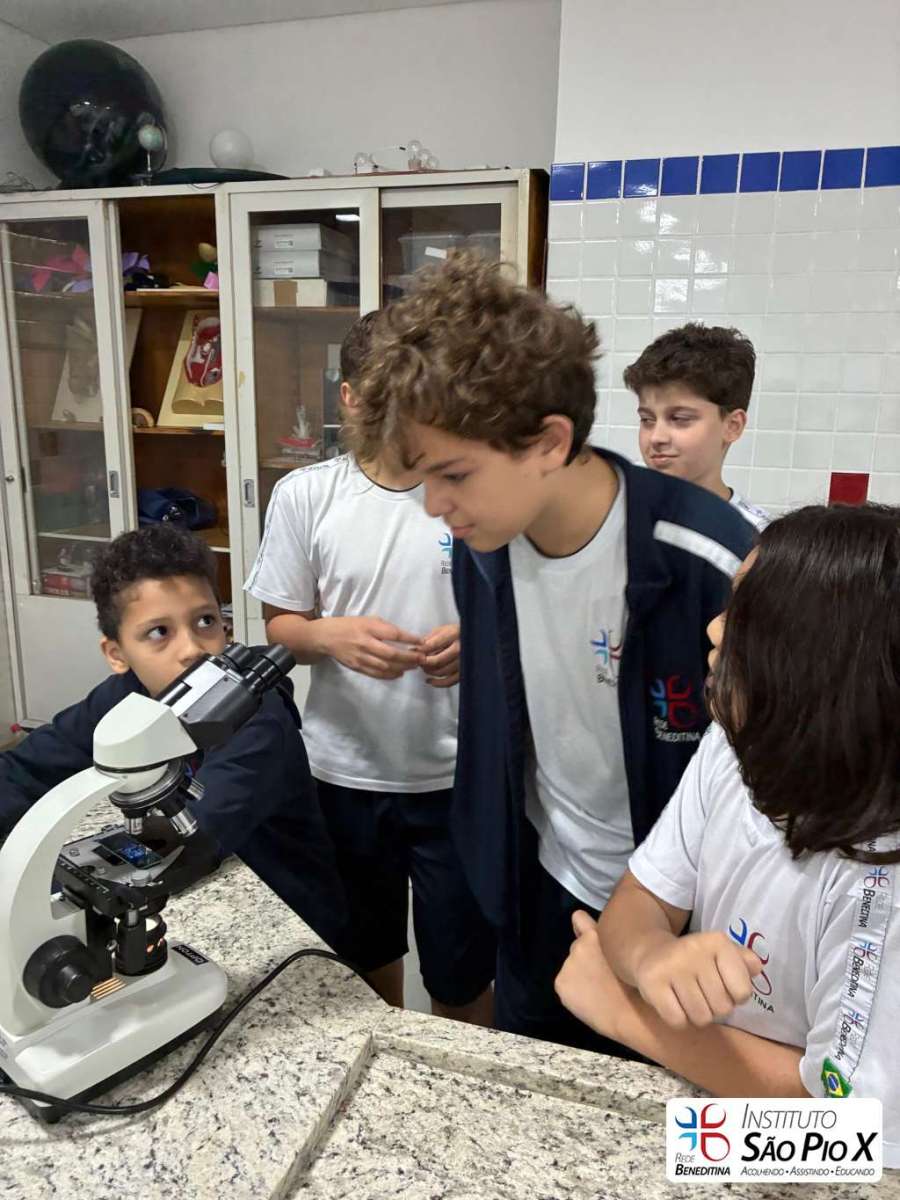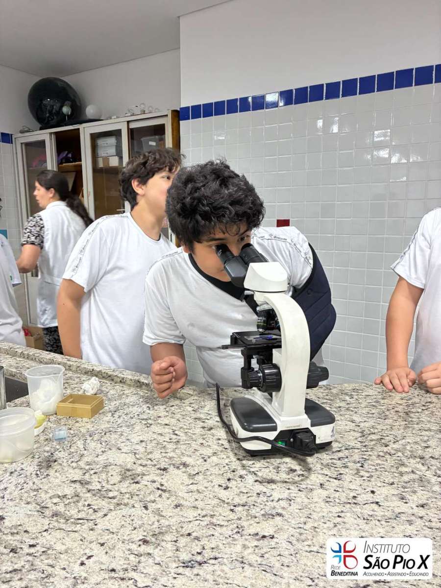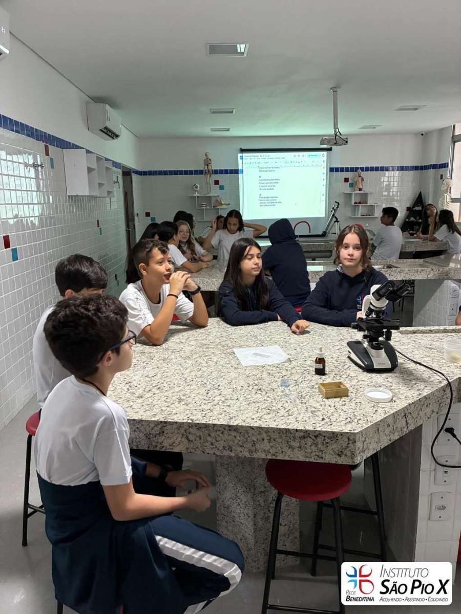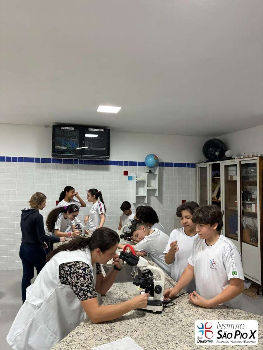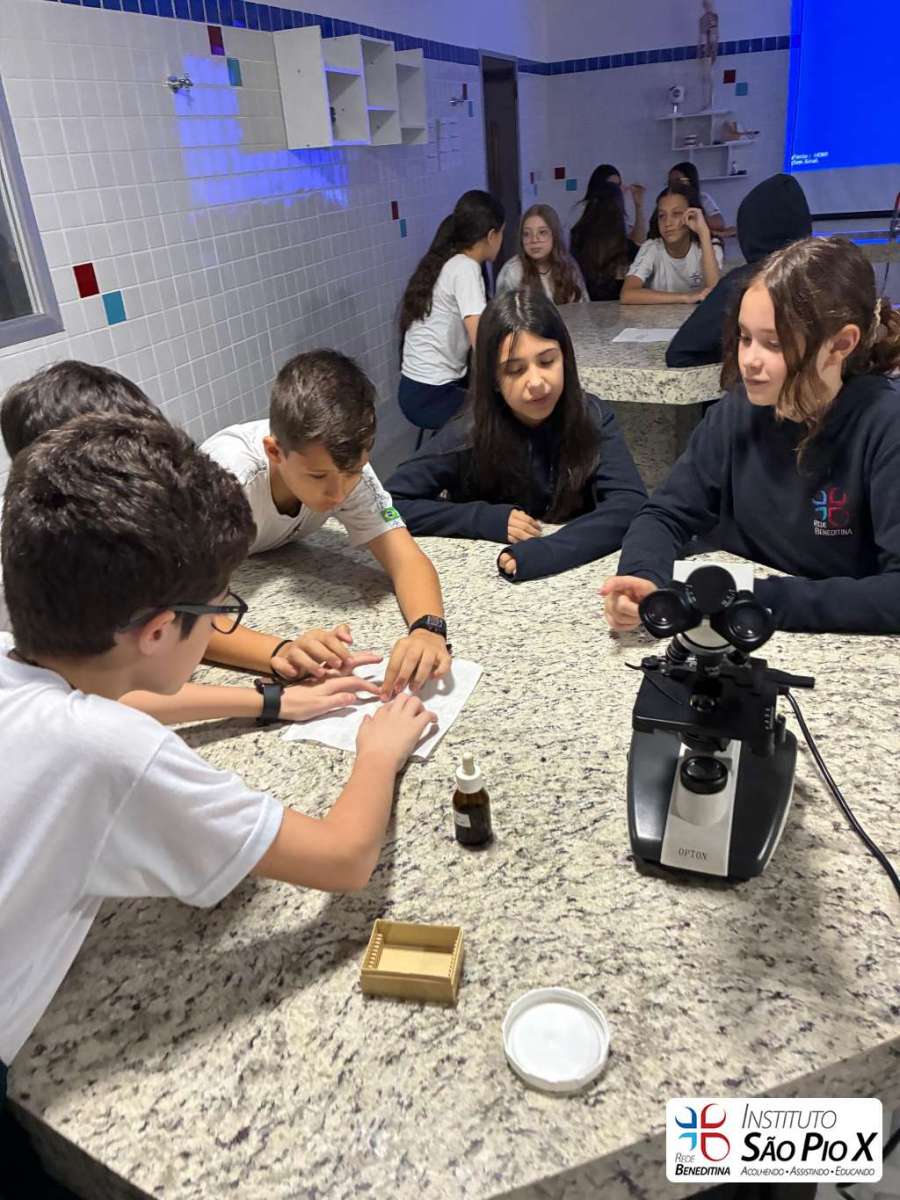 Nossos alunos do 6º ano montaram lâminas com a epiderme da cebola para observar as células no microscópio.