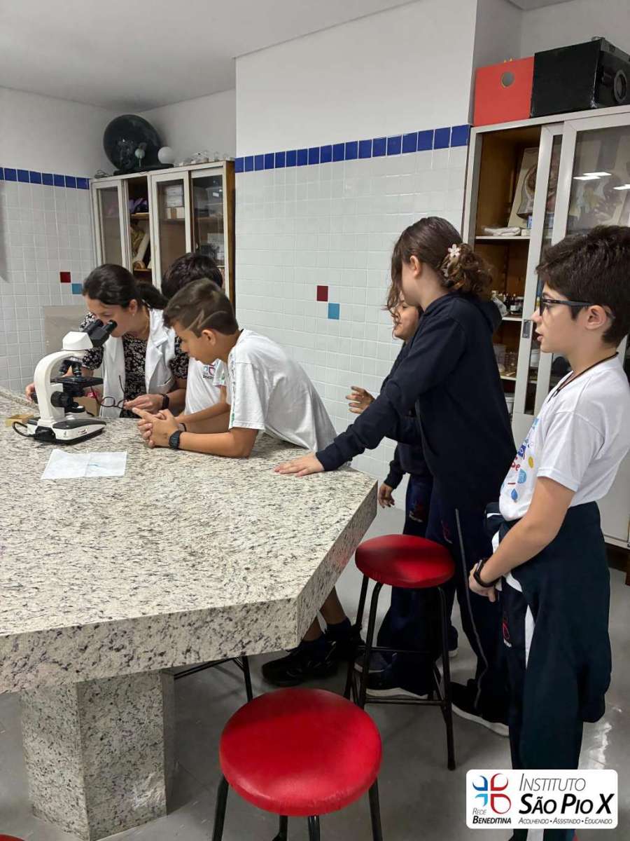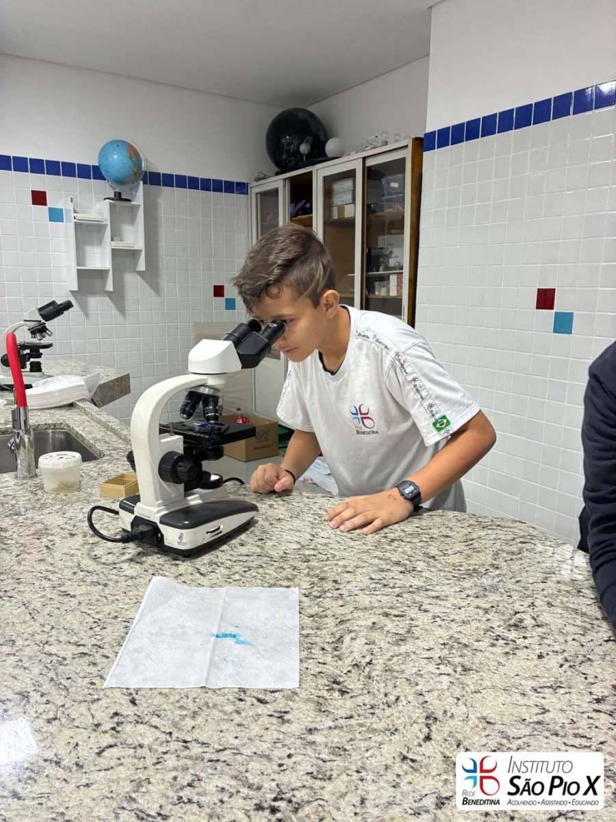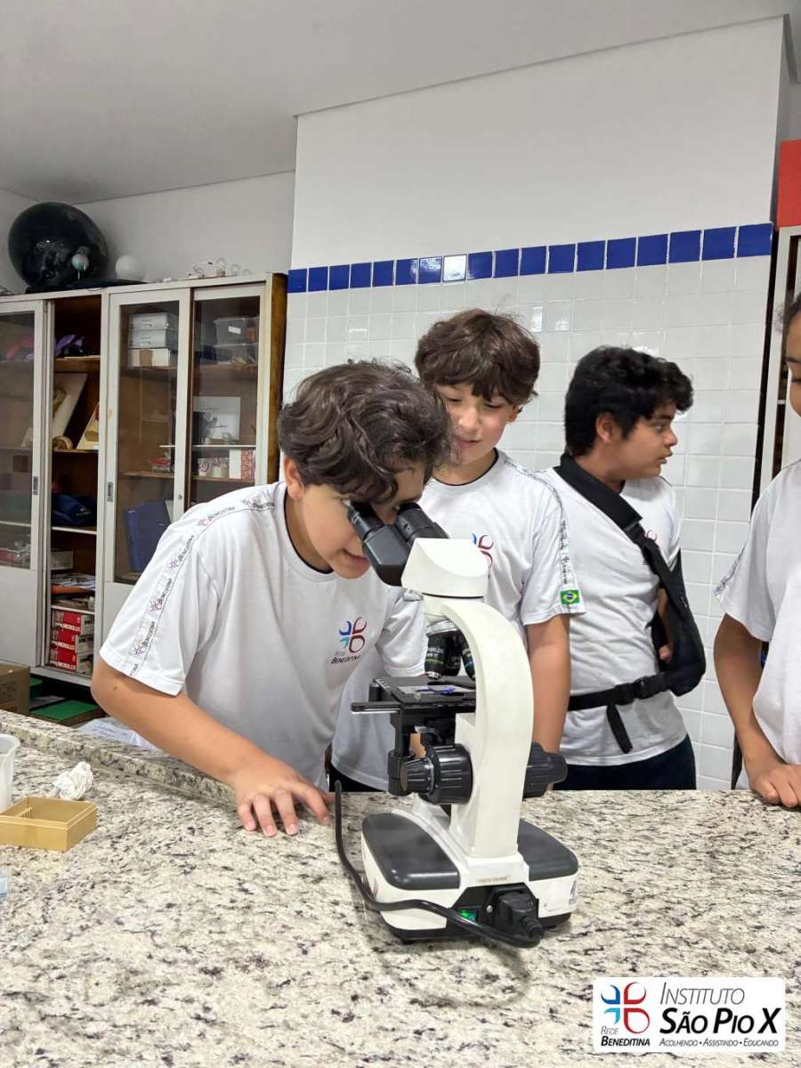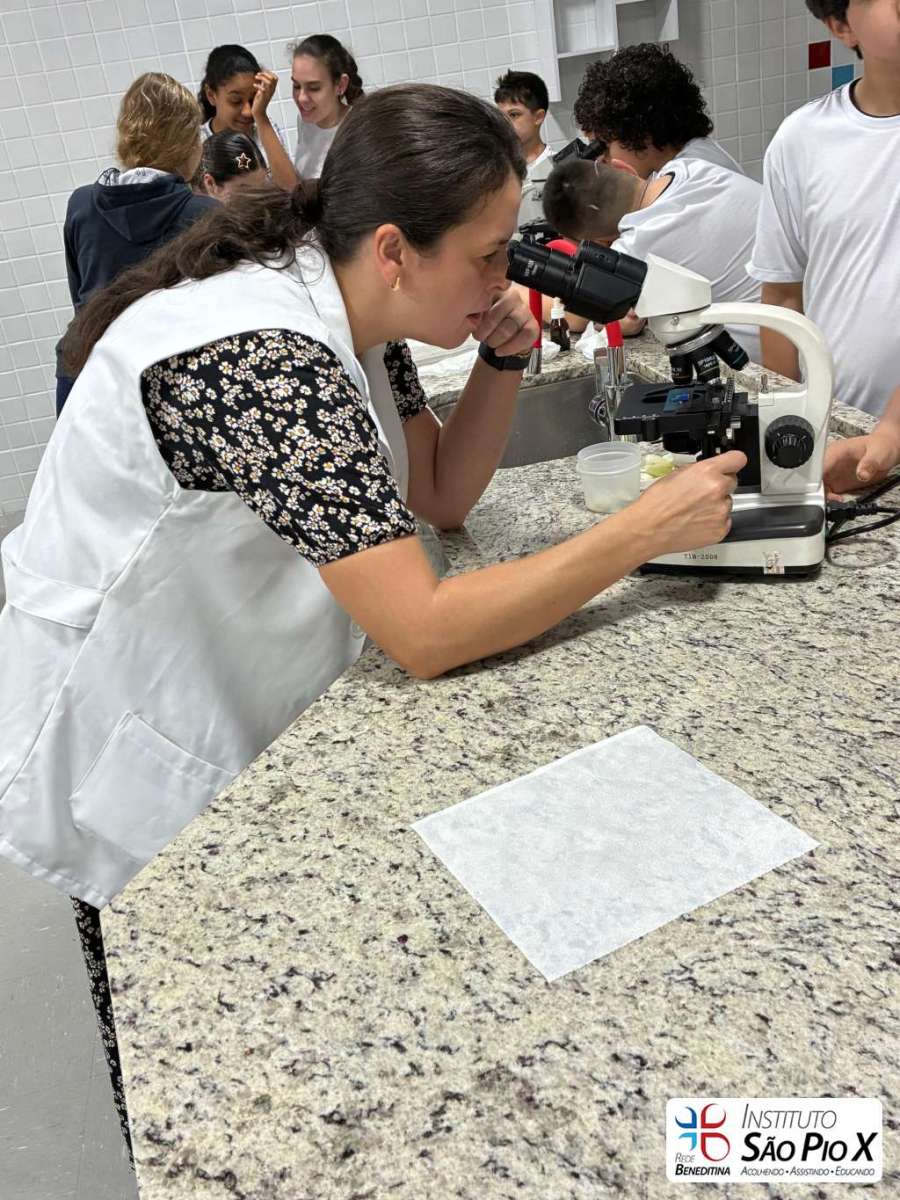 Nossos alunos do 6º ano montaram lâminas com a epiderme da cebola para observar as células no microscópio.