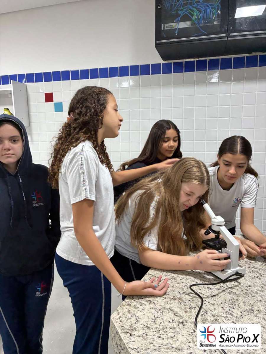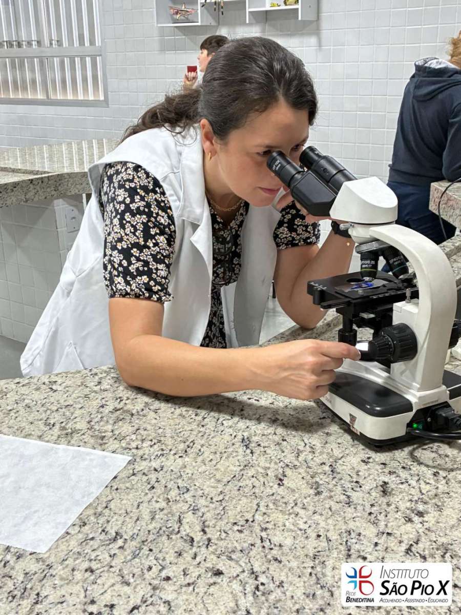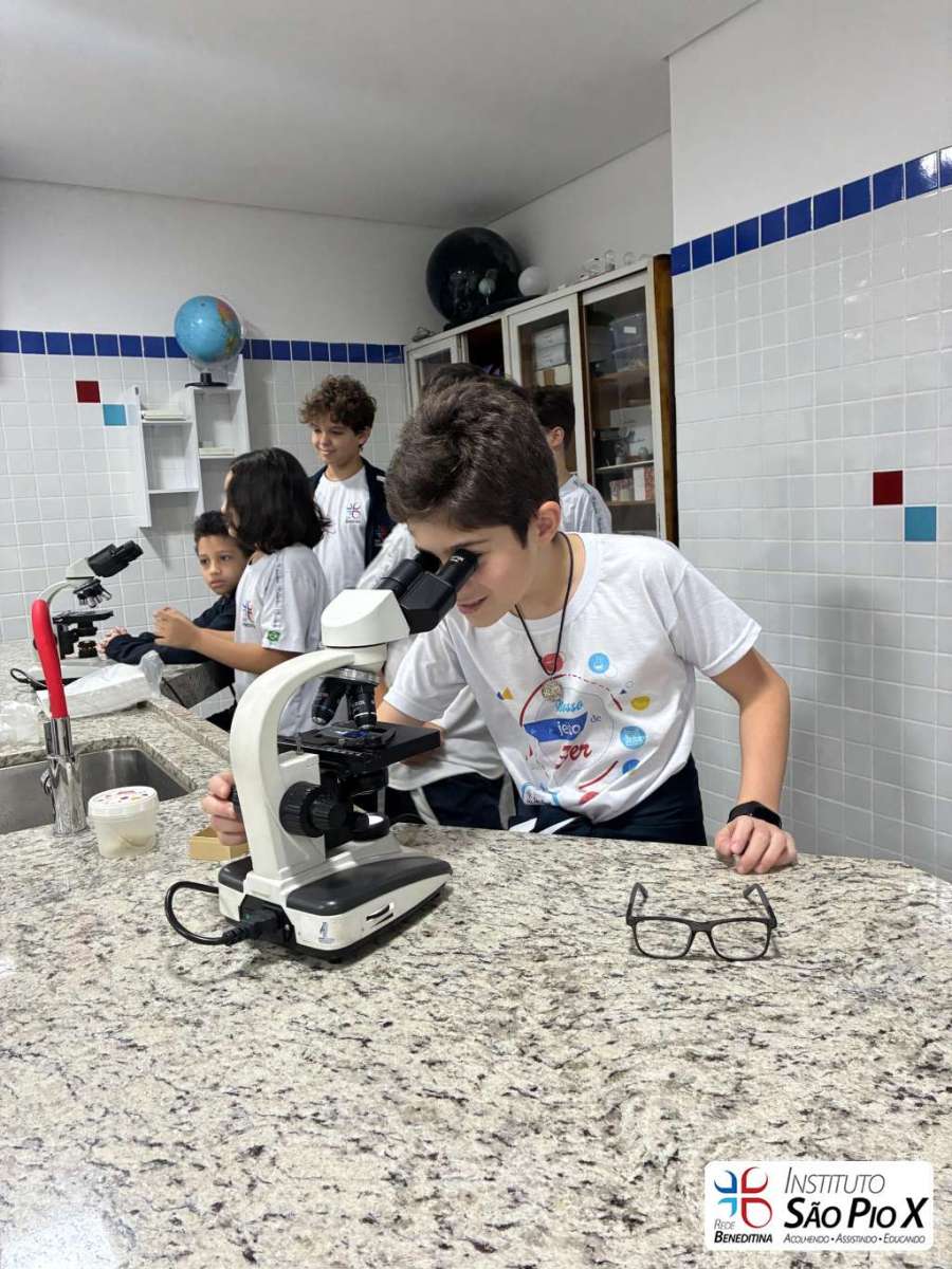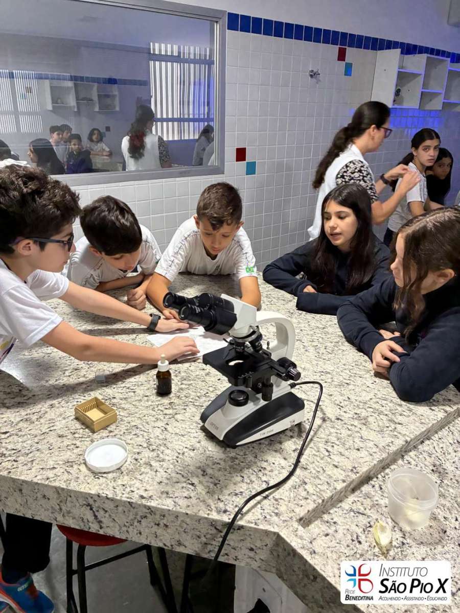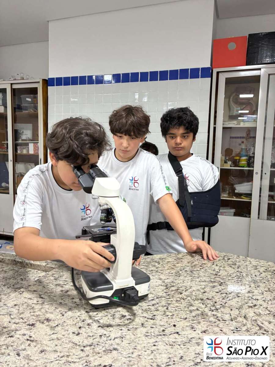 Nossos alunos do 6º ano montaram lâminas com a epiderme da cebola para observar as células no microscópio.
