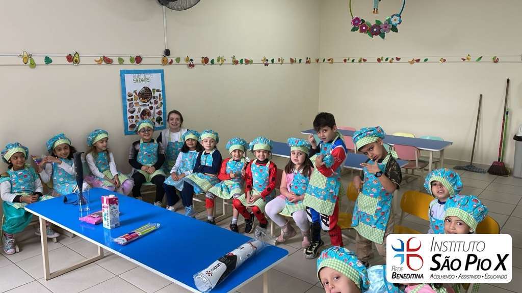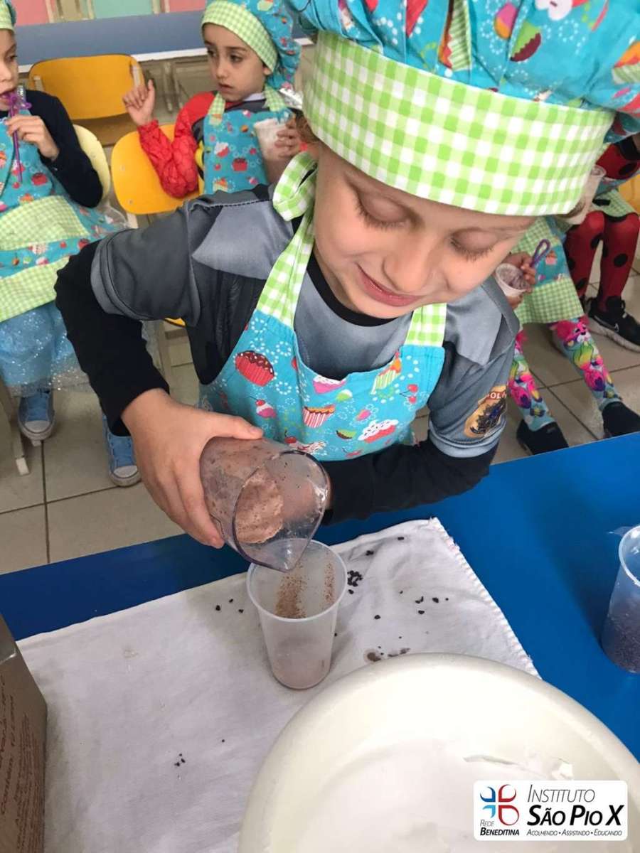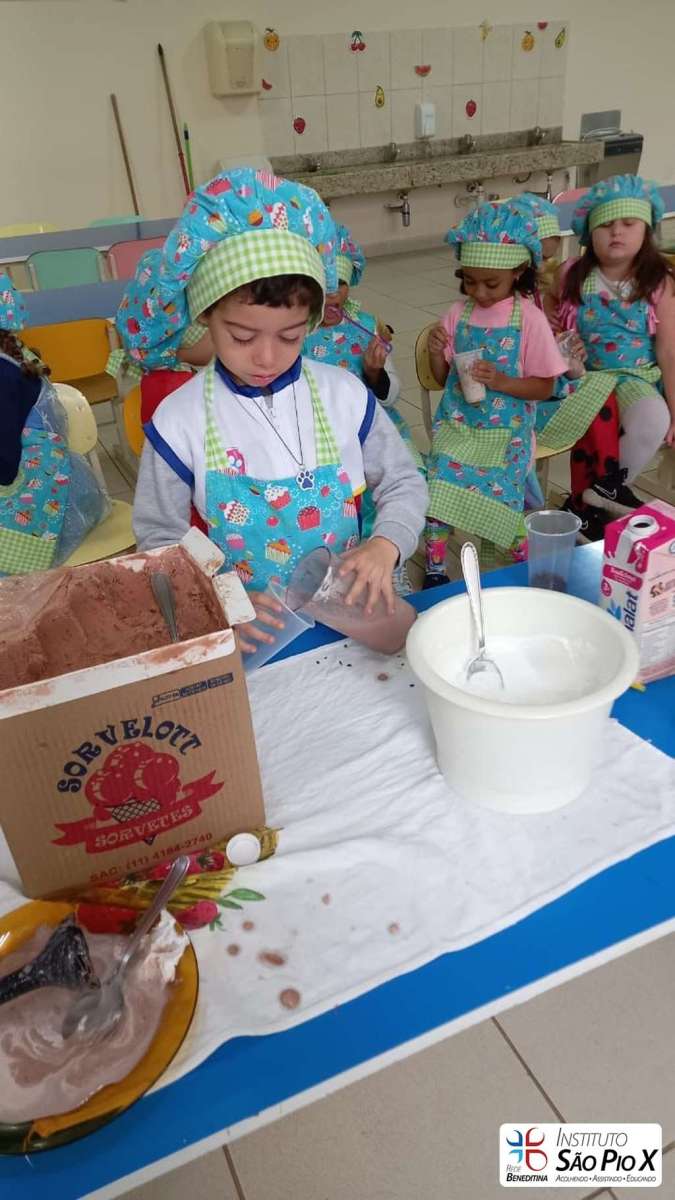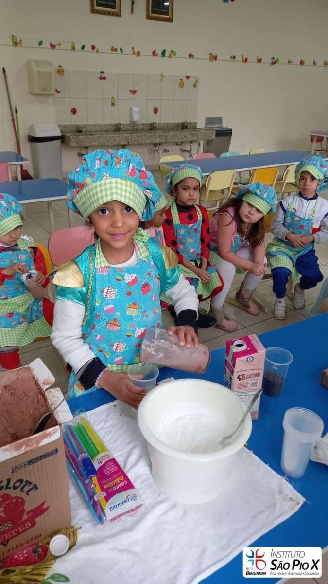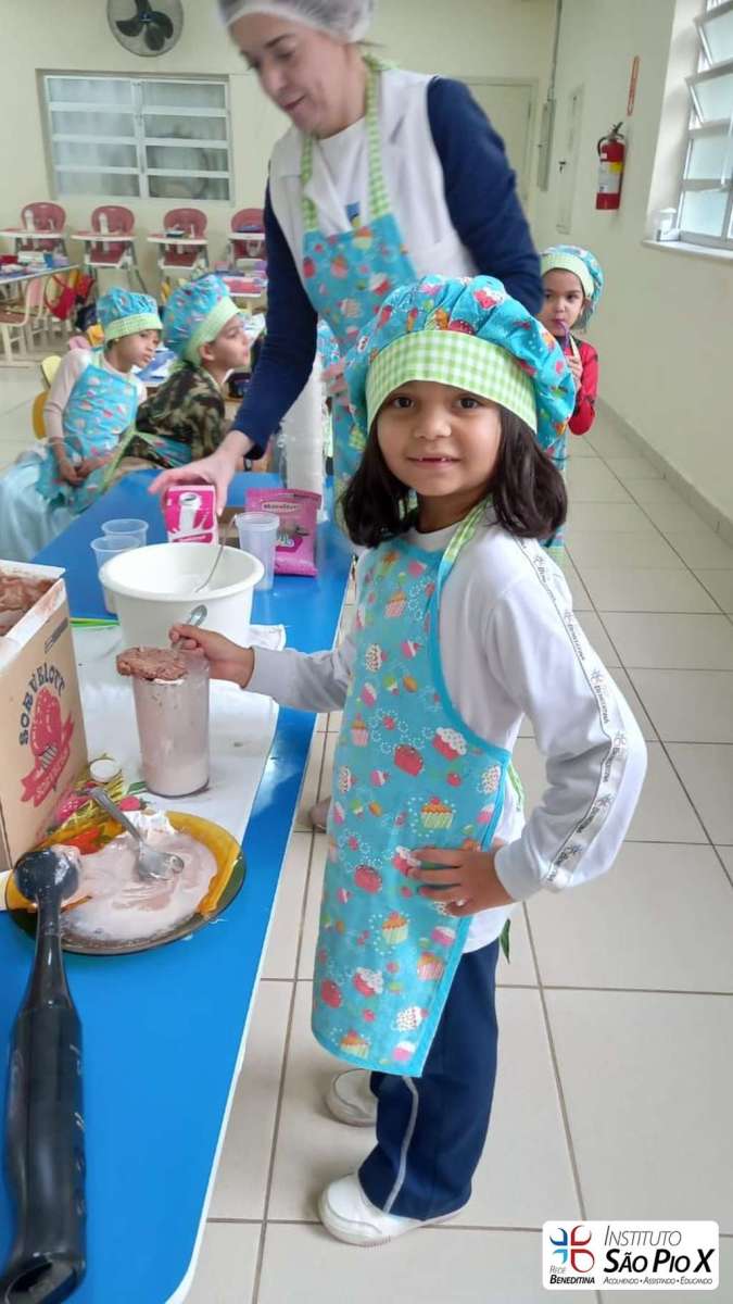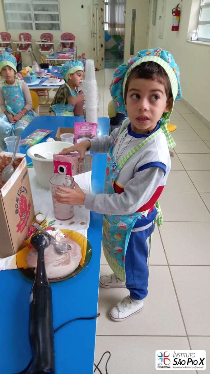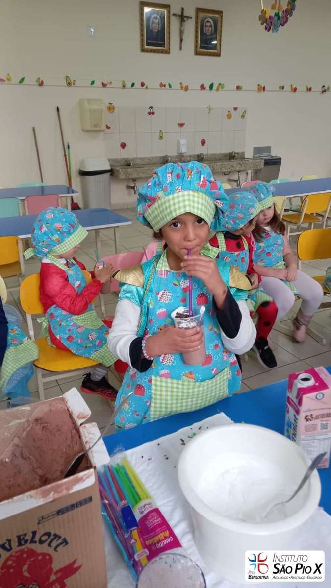 Durante a Semana da Criança, os pequenos do Pré II do Instituto São Pio X participaram de uma culinária especial e deliciosa!