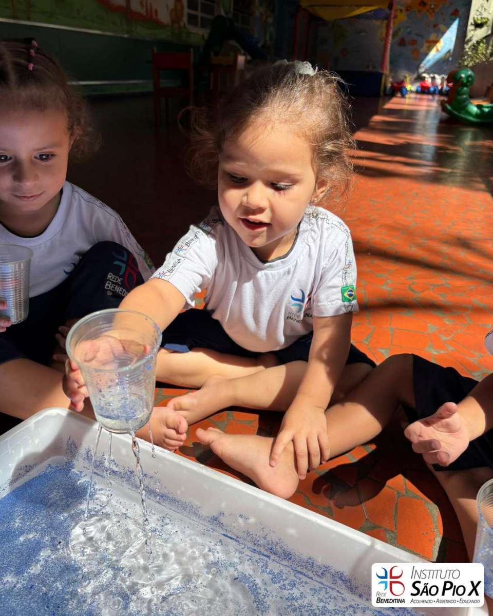 As crianças realizaram uma atividade sensorial para comemorar o dia mundial da água.