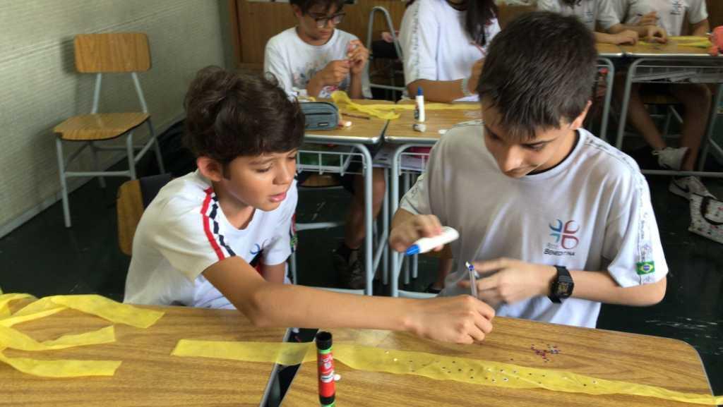 Nesta semana, os alunos do 8º ano B confeccionaram ontem lindos enfeites e adereços para as fantasias do Bloco do Pio Folia e os alunos do 8º ano A decoraram.