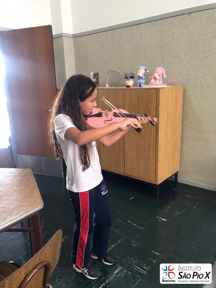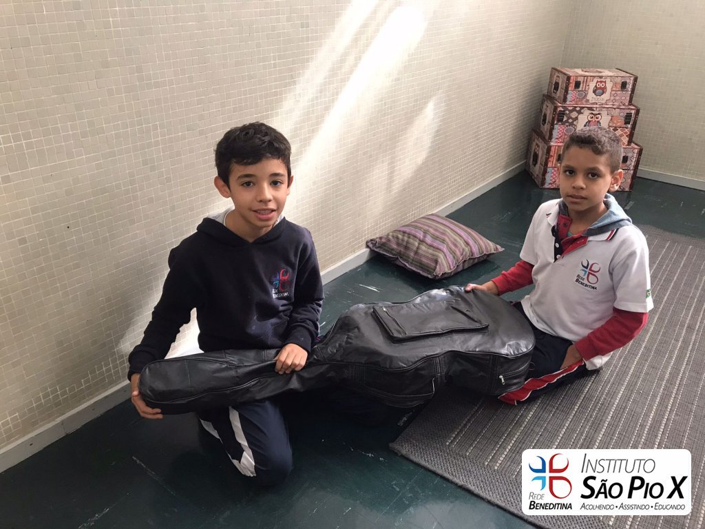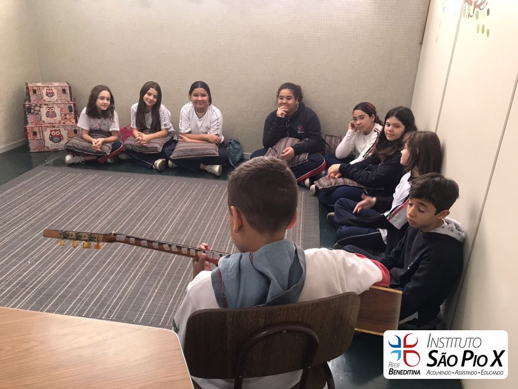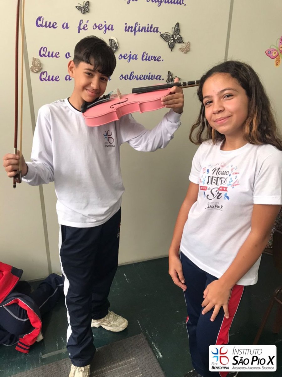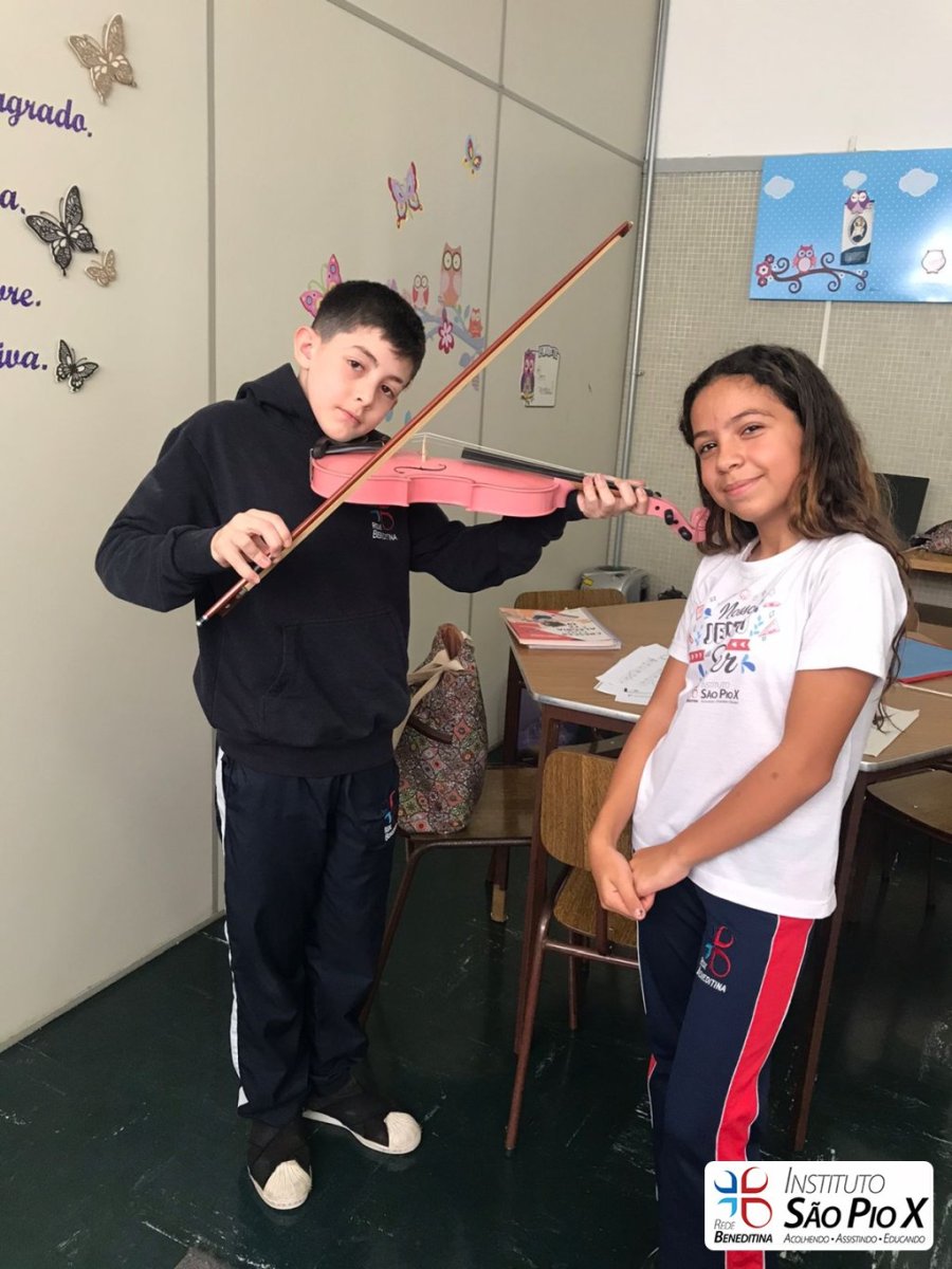 A turma do 6º ano A e B encerrou o 1º semestre com música. Livremente os alunos poderiam trazer algum instrumento para esta última aula de Ensino Religioso.