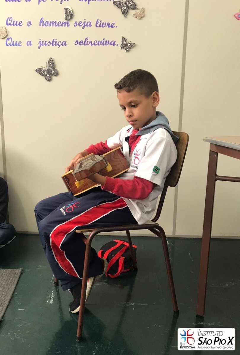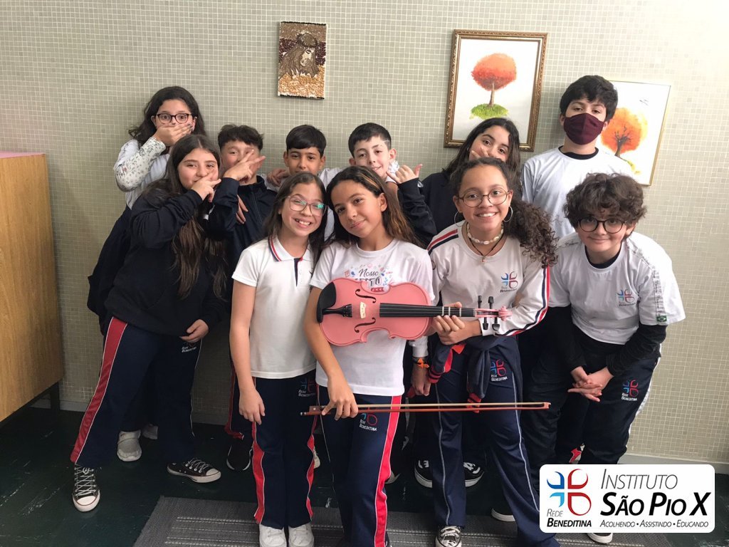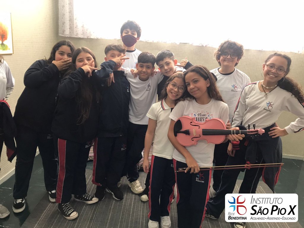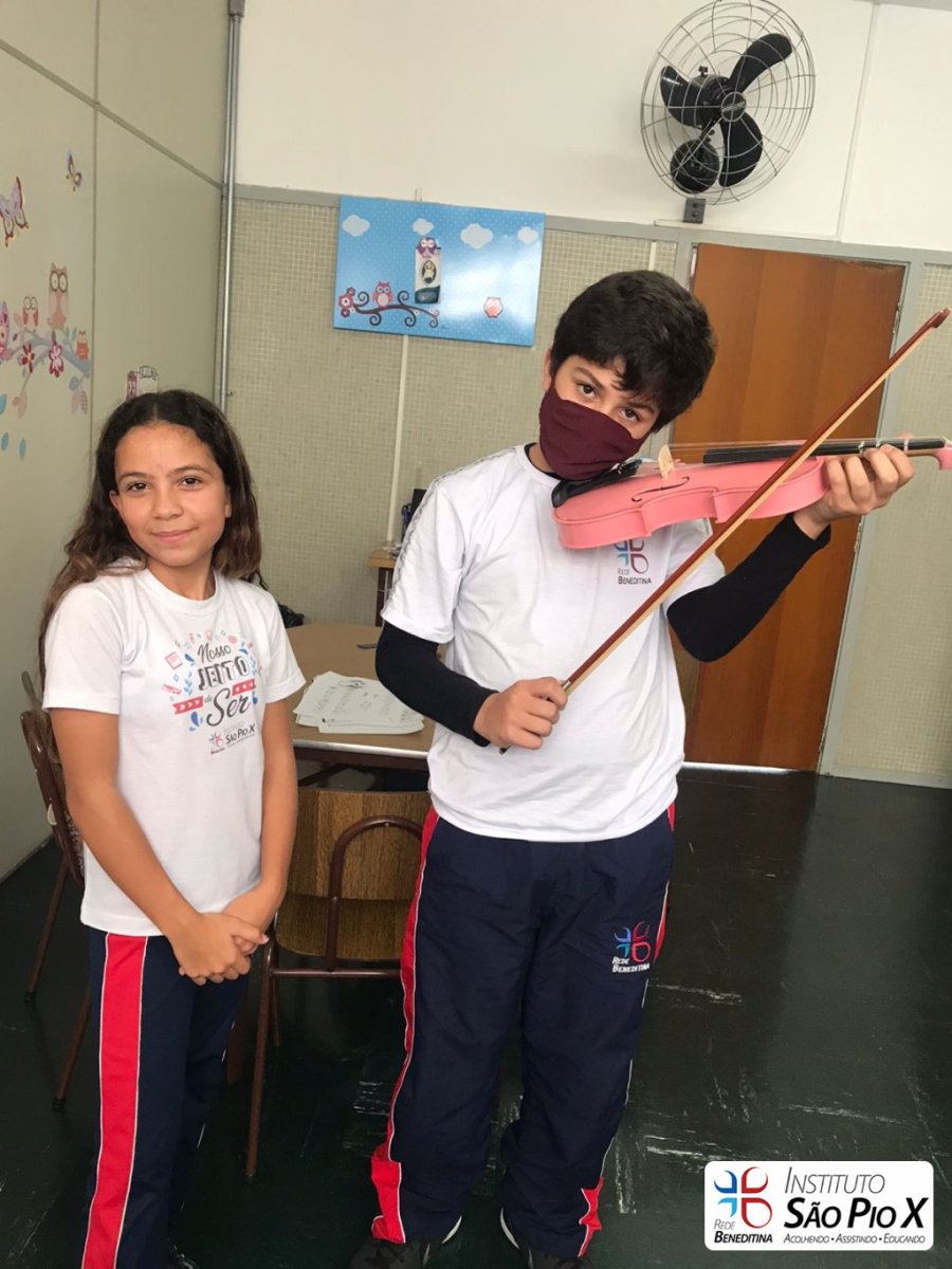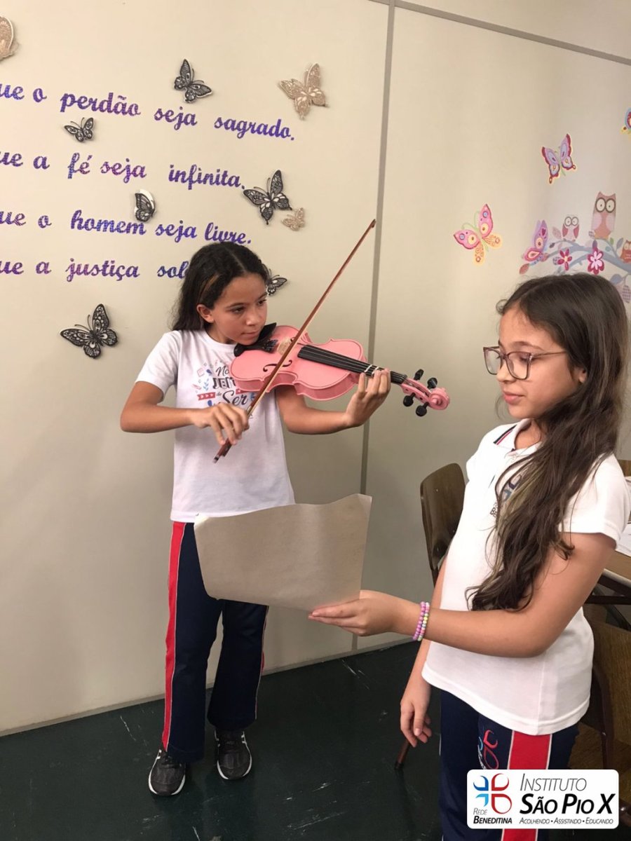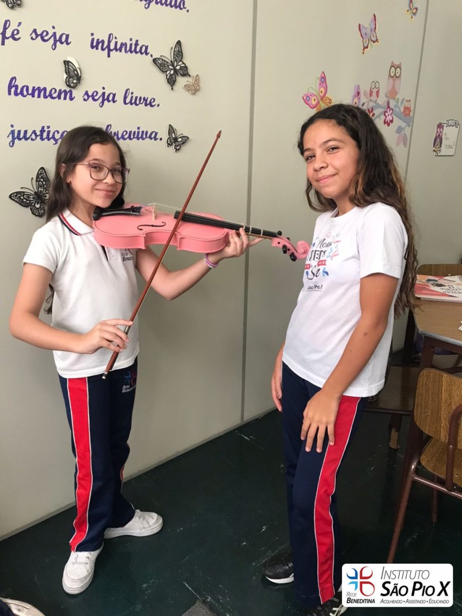 A turma do 6º ano A e B encerrou o 1º semestre com música. Livremente os alunos poderiam trazer algum instrumento para esta última aula de Ensino Religioso.