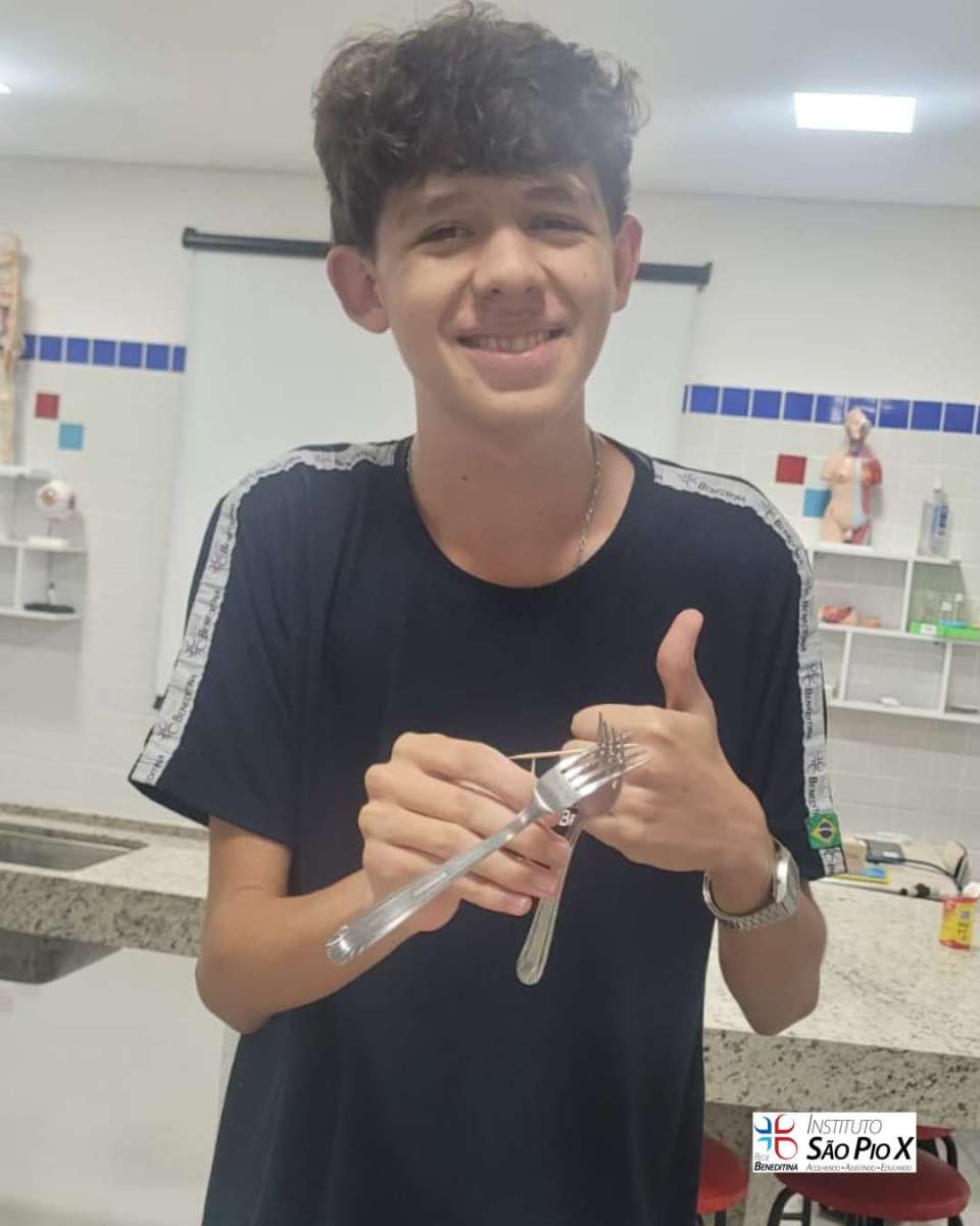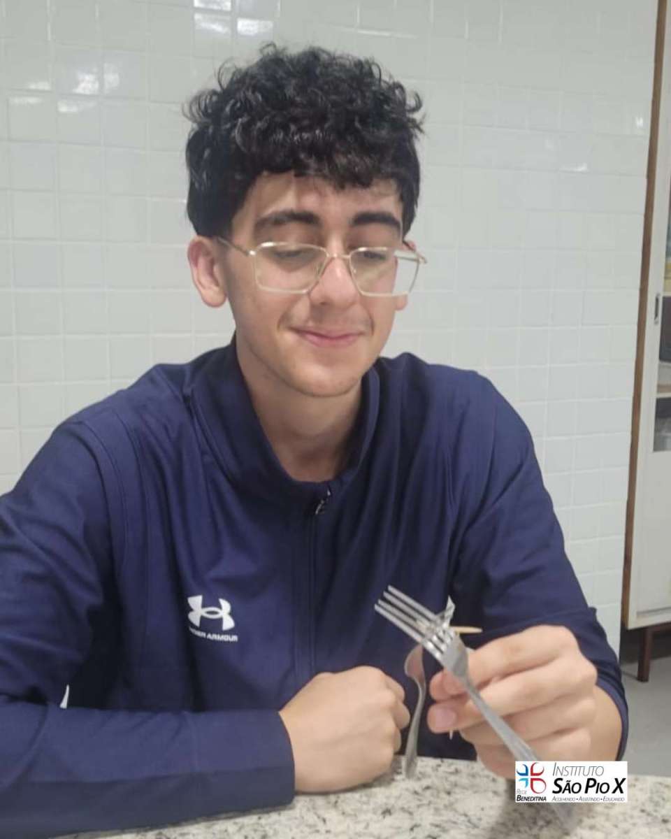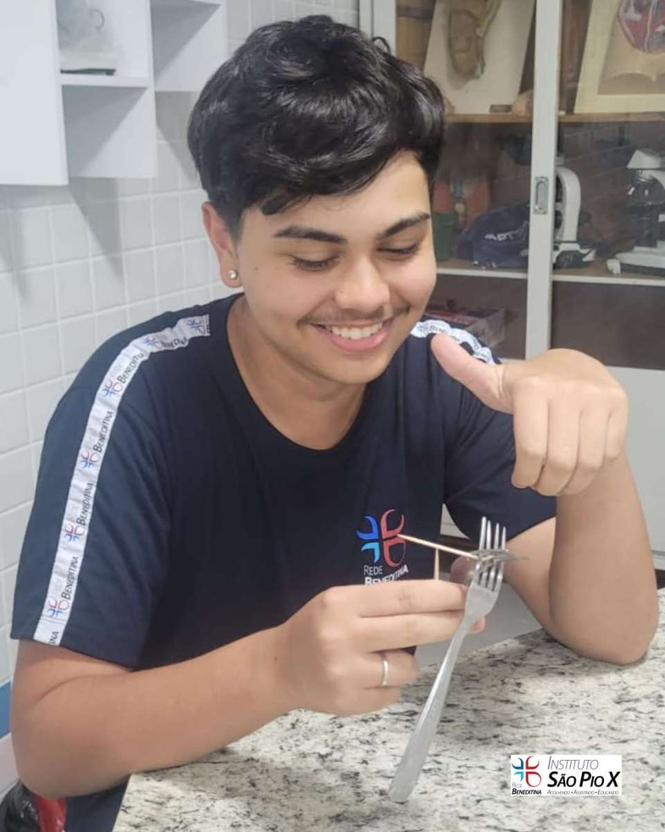 Os alunos do IFA Elos estruturais realizaram experimentos utilizando garfos e palitos para visualizarem na prática os conceitos e propriedades da Estática.