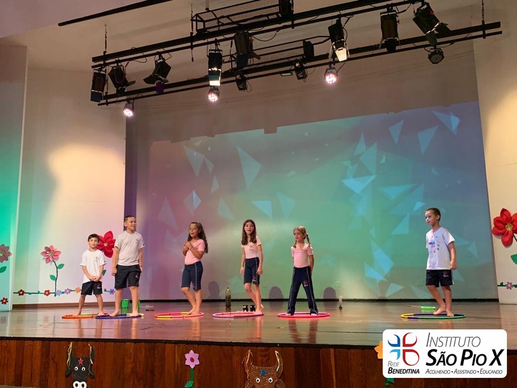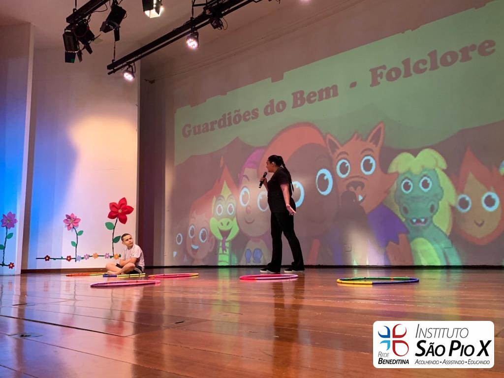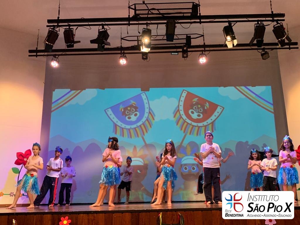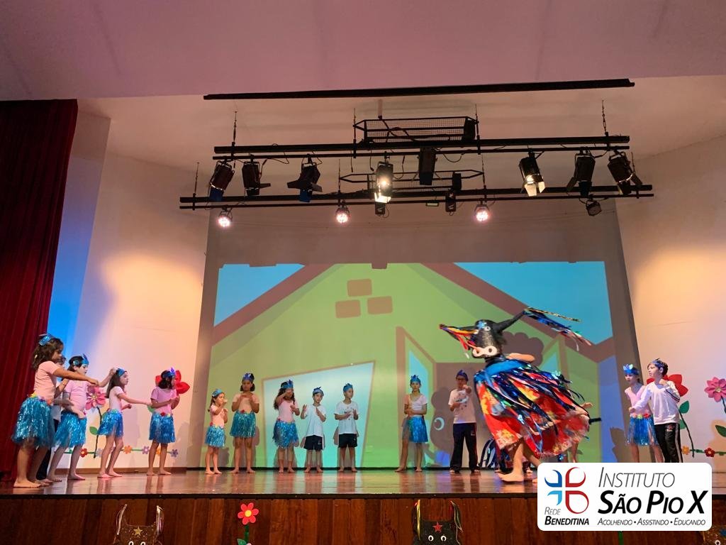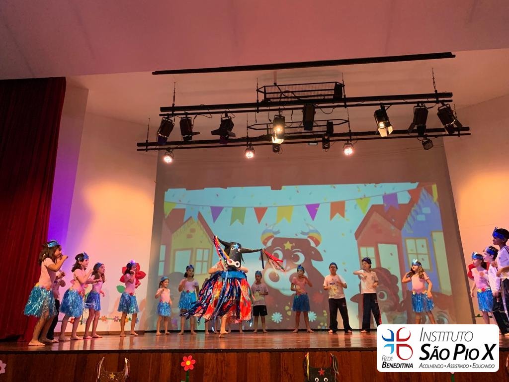 Os alunos do contraturno apresentaram algumas das brincadeiras que fazem parte do nosso folclore, a importância dos personagens, cantaram a música “If you`re happy and you know it” em inglês e apresentaram a dança do boi com a participação dos alunos do 3º ano A.