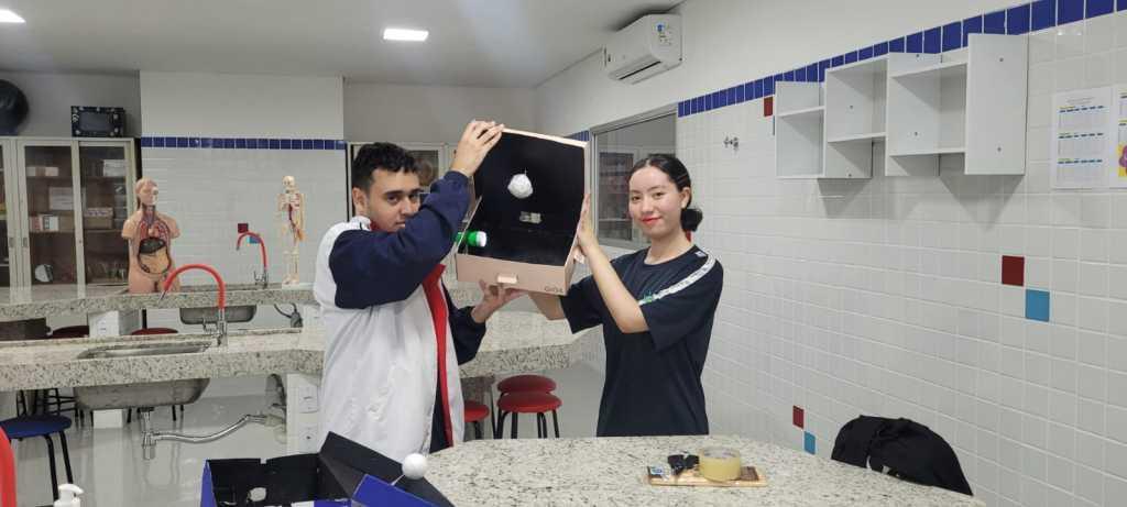 Na prática, os alunos observaram cada fase da Lua, utilizando materiais simples no Laboratório de Física.