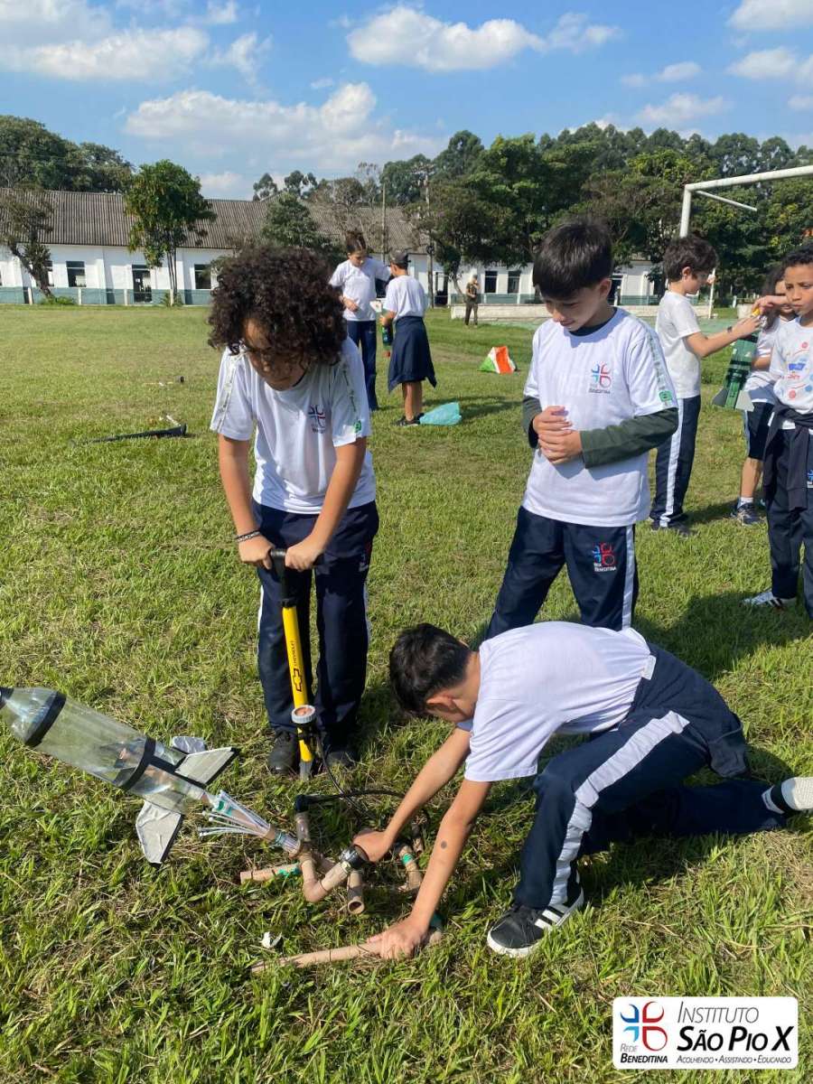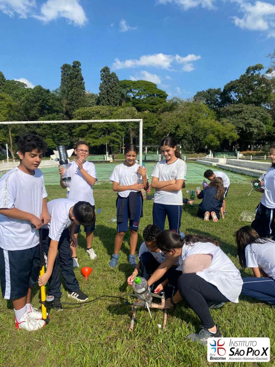 Foi uma experiência prática repleta de aprendizados, que incentivou o trabalho em equipe e o desenvolvimento de habilidades técnicas na montagem e lançamento dos foguetes.