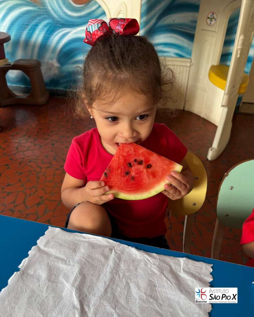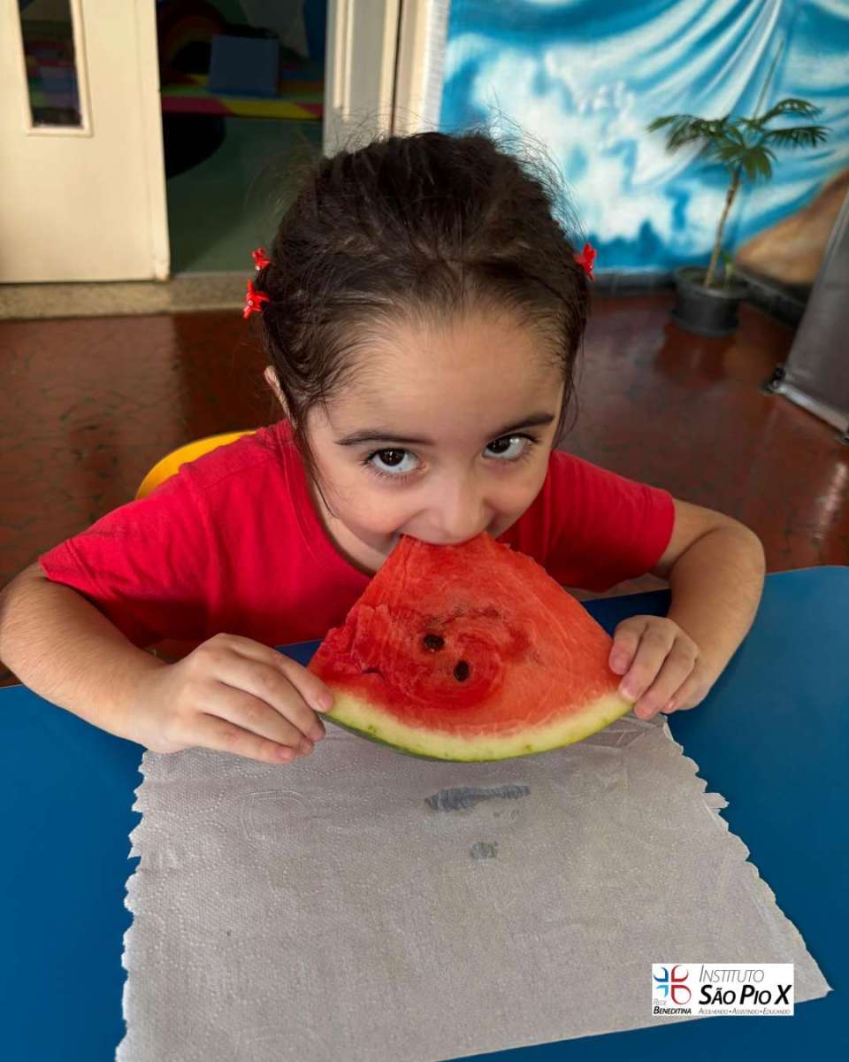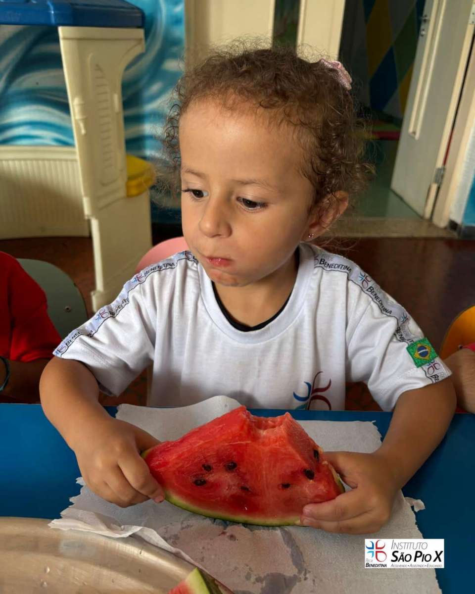 Para finalizar esse momento de aprendizado de forma especial, realizamos uma deliciosa degustação de melancia.