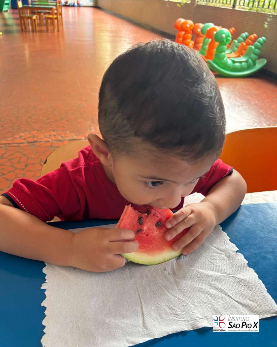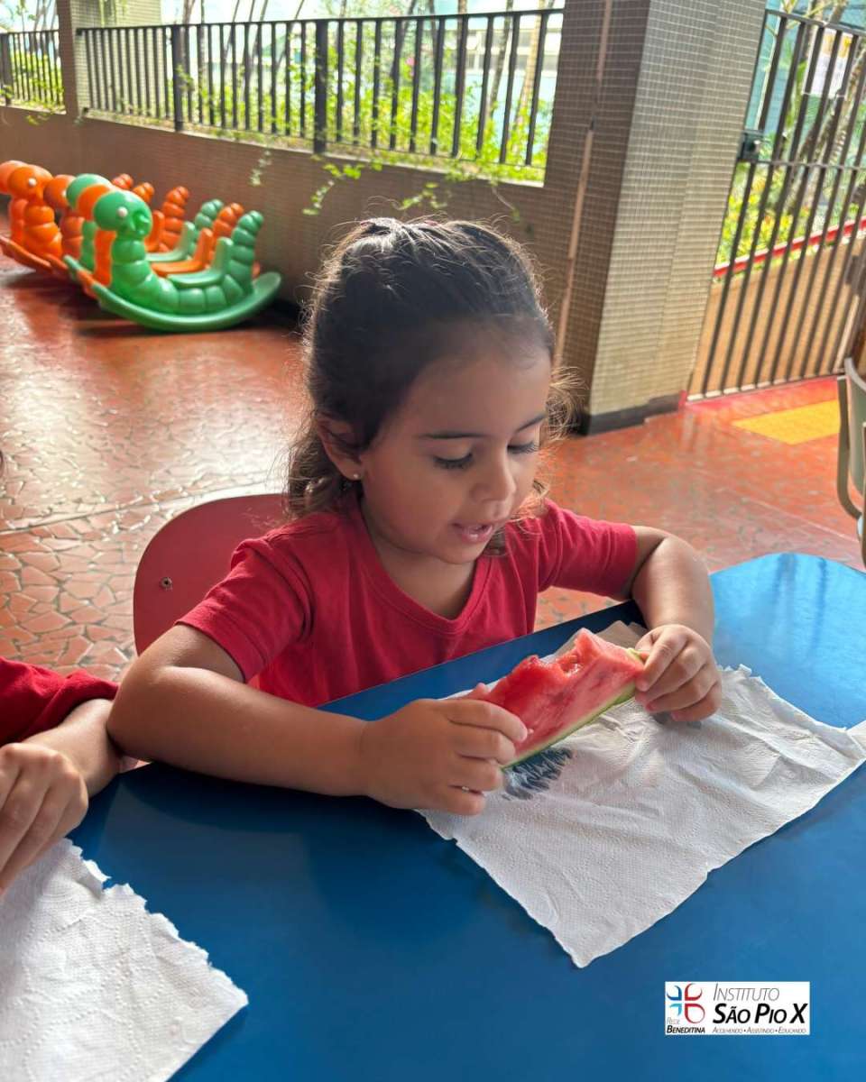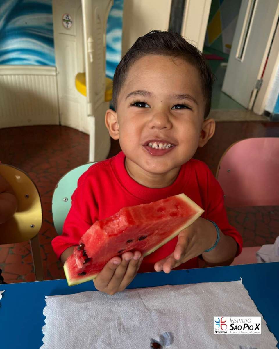 Para finalizar esse momento de aprendizado de forma especial, realizamos uma deliciosa degustação de melancia.
