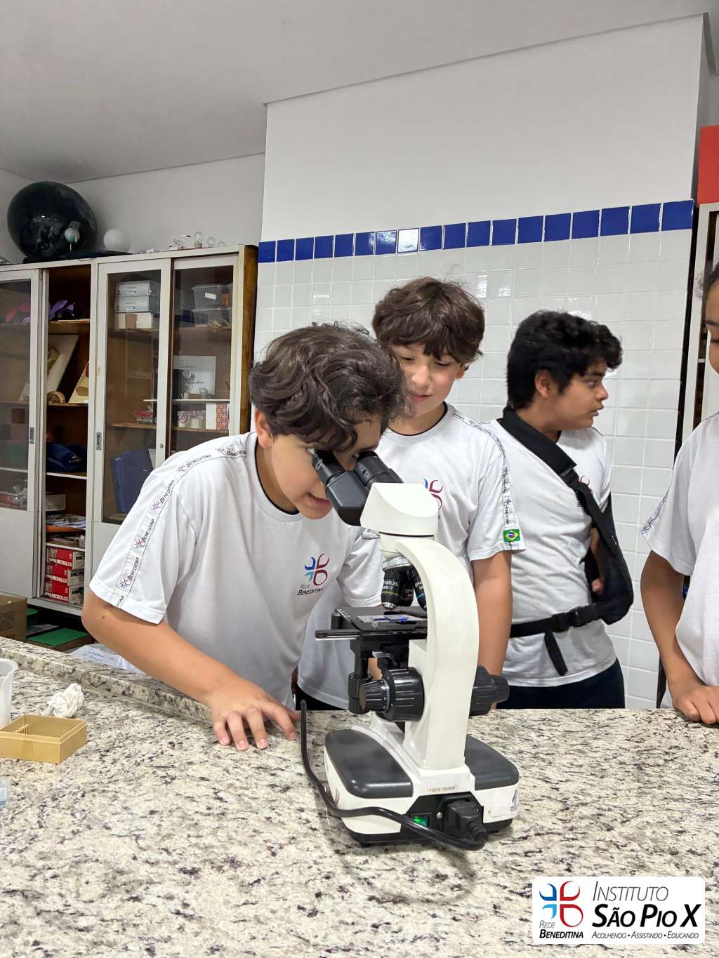 Nossos alunos do 6º ano montaram lâminas com a epiderme da cebola para observar as...