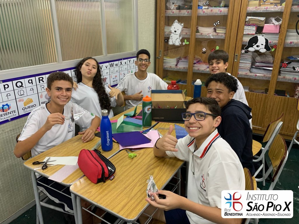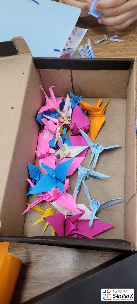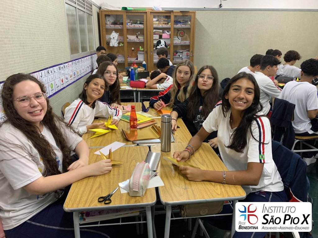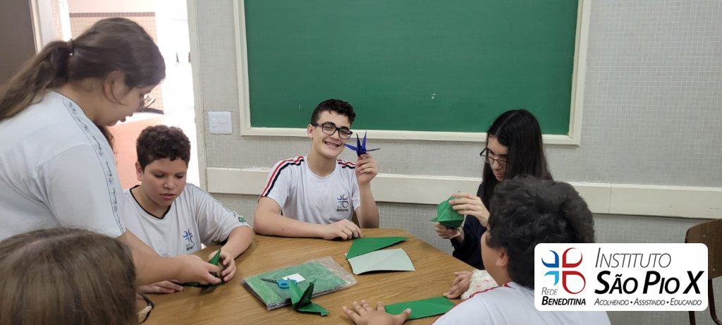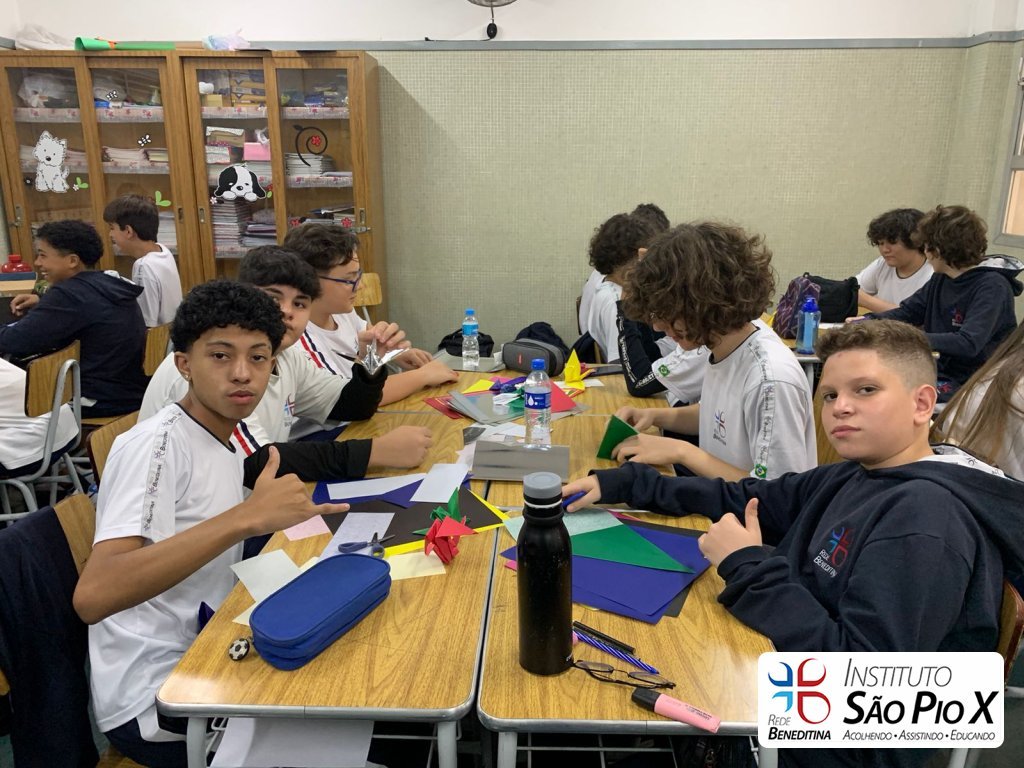 Os alunos do 8º ano A e B, na aula de Geometria, confeccionaram tsurus num trabalho em equipe que muito os alegraram. Aprendizado dos conceitos de quadriláteros, diagonais e ângulos, além da criatividade. Parabéns!