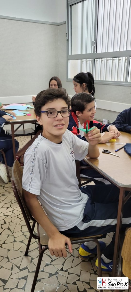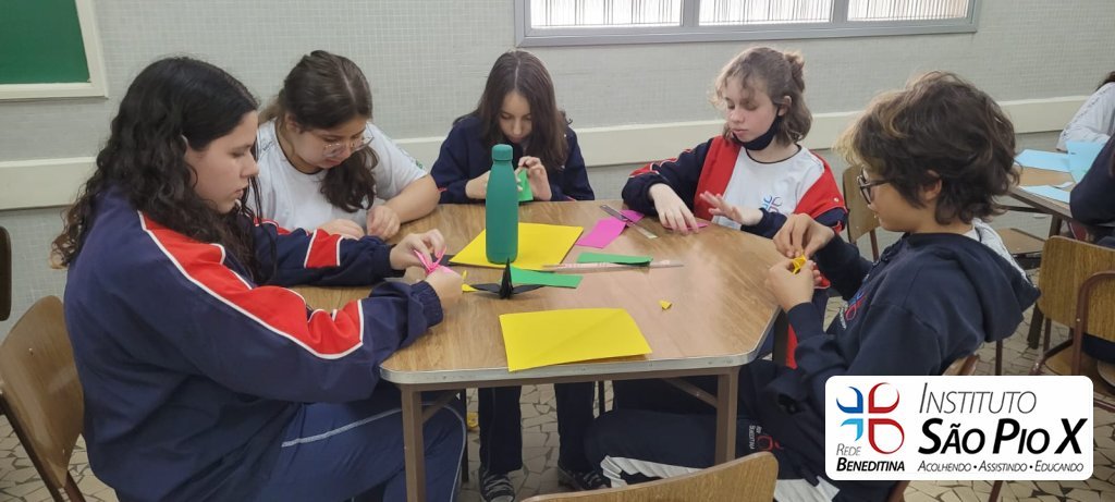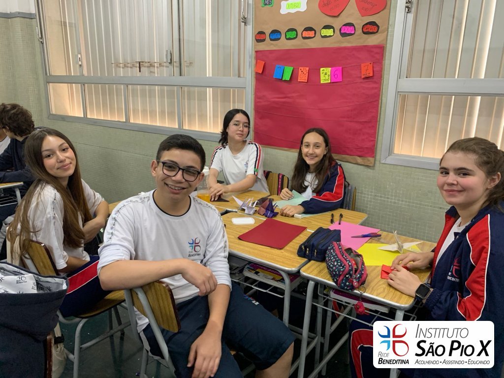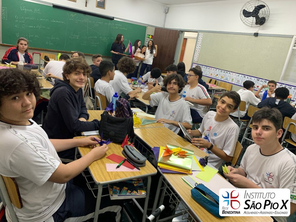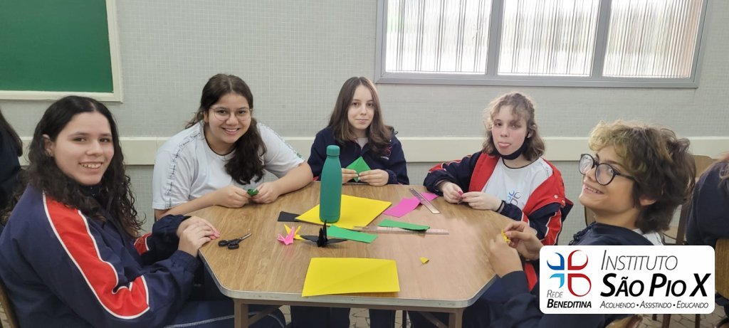 Os alunos do 8º ano A e B, na aula de Geometria, confeccionaram tsurus num trabalho em equipe que muito os alegraram. Aprendizado dos conceitos de quadriláteros, diagonais e ângulos, além da criatividade. Parabéns!