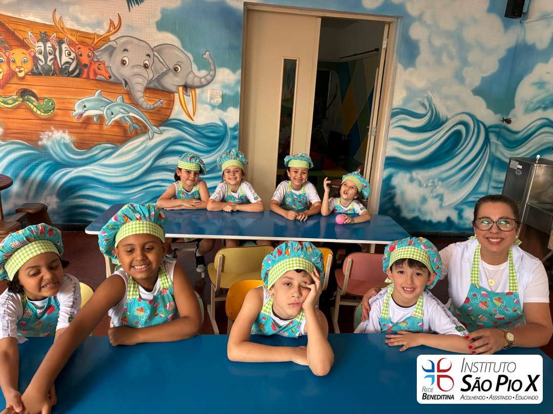 Entre risadas, curiosidade e muita alegria, os pequenos cozinheiros mostraram que aprender pode ser uma delícia!