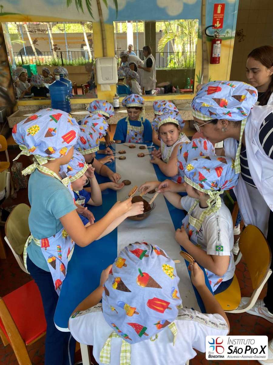 Com muita empolgação, eles misturaram ingredientes, moldaram as delícias e, claro, se deliciaram com o resultado final.