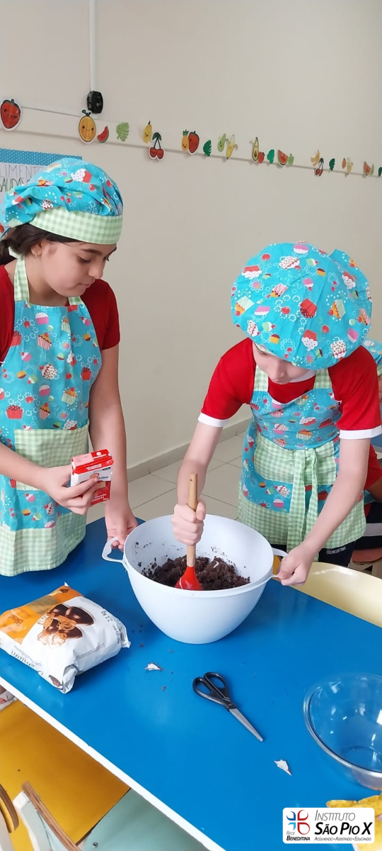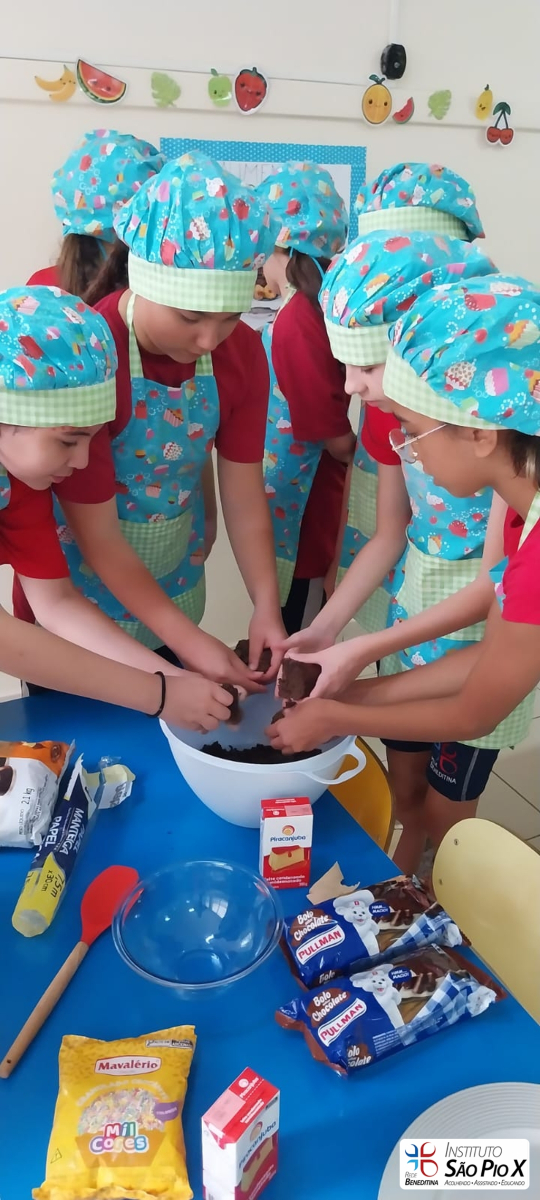 Durante a Semana da Criança, os alunos do 5º Ano A do Instituto São Pio X colocaram a mão na massa em uma divertida atividade de culinária educativa!