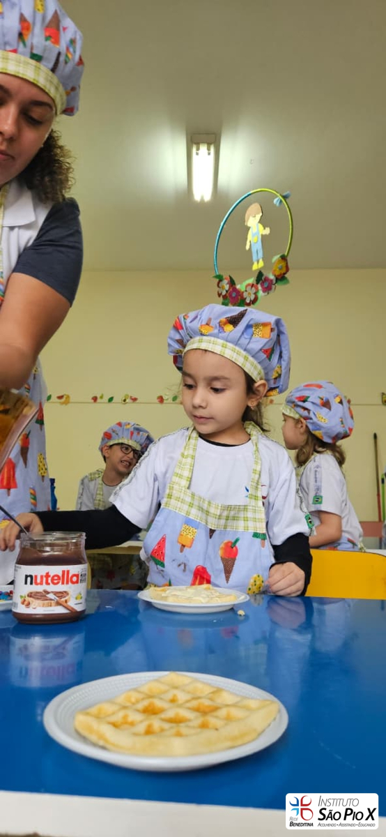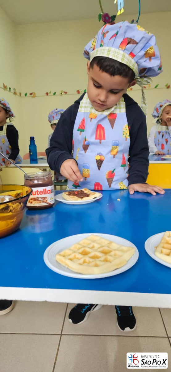 Durante a Semana da Criança, a turma do Pré II colocou a mão na massa e preparou uma deliciosa receita de waffle doce! Foi um momento divertido e saboroso, cheio de aprendizado, alegria e muita criatividade.