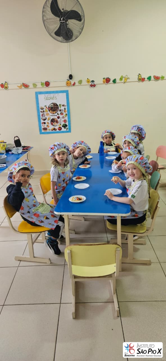 As crianças participaram de cada etapa da receita, explorando cheiros, sabores e texturas — uma verdadeira experiência sensorial!