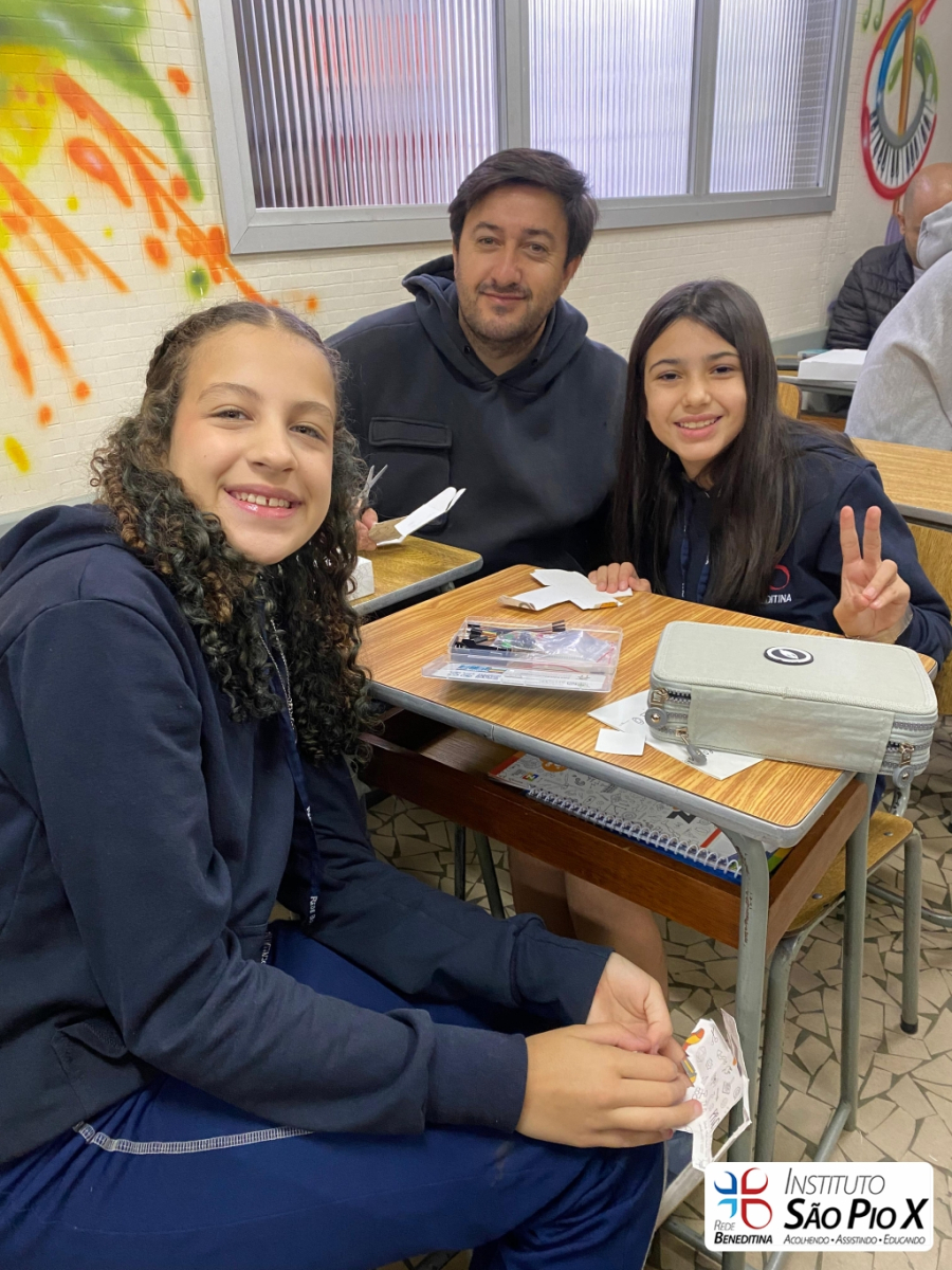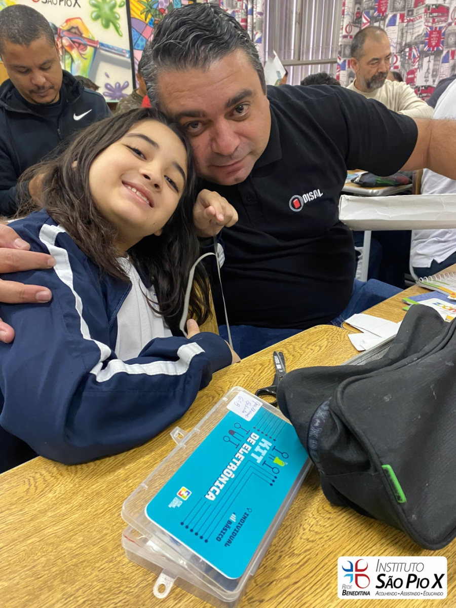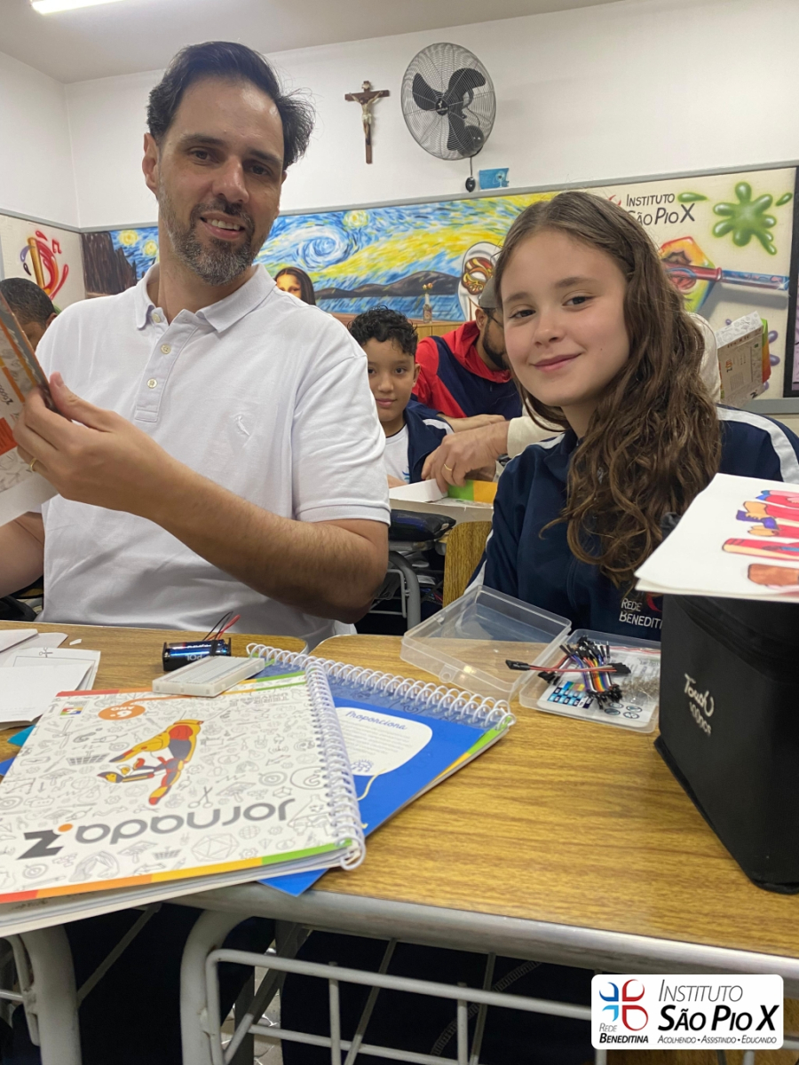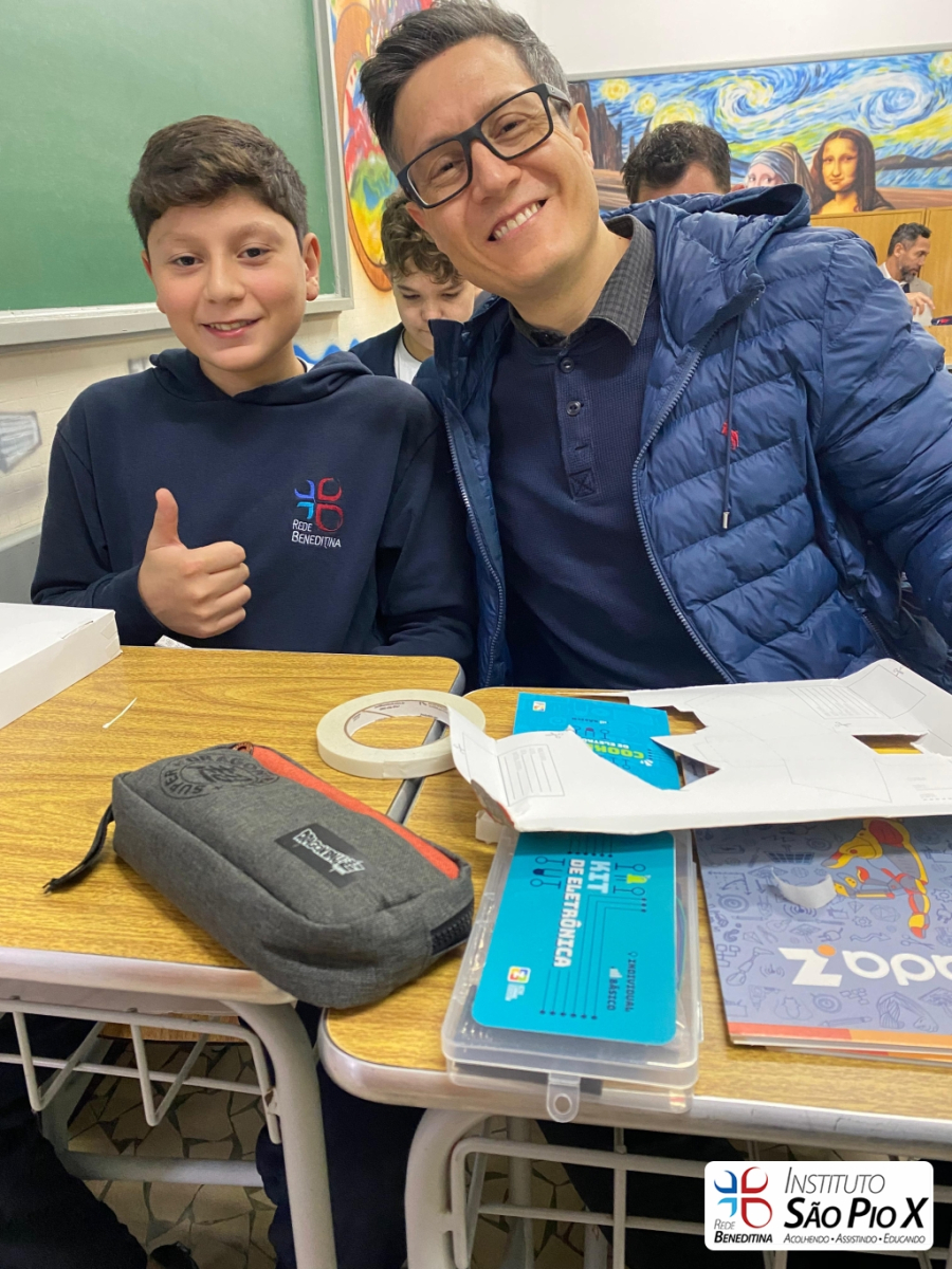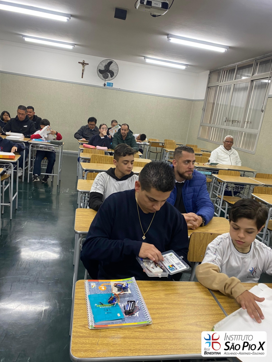 Em comemoração ao Dia dos Pais, promovemos uma oficina de robótica com as turmas do 6º A e 6º B, onde pais e filhos colocaram a mão na massa juntos e construíram refletores.