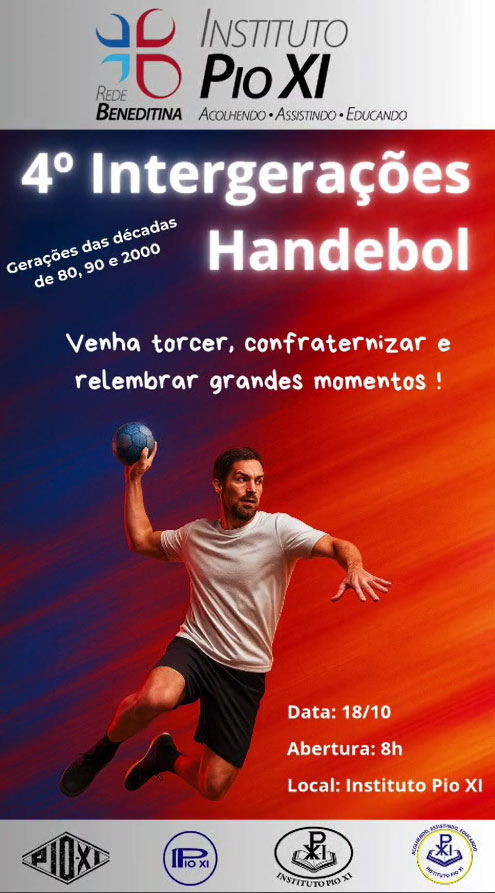 O Instituto Pio XI convida todos os ex-alunos e amigos para o 4º Intergerações de Handebol, um evento que promete muita emoção, reencontros e momentos inesquecíveis!