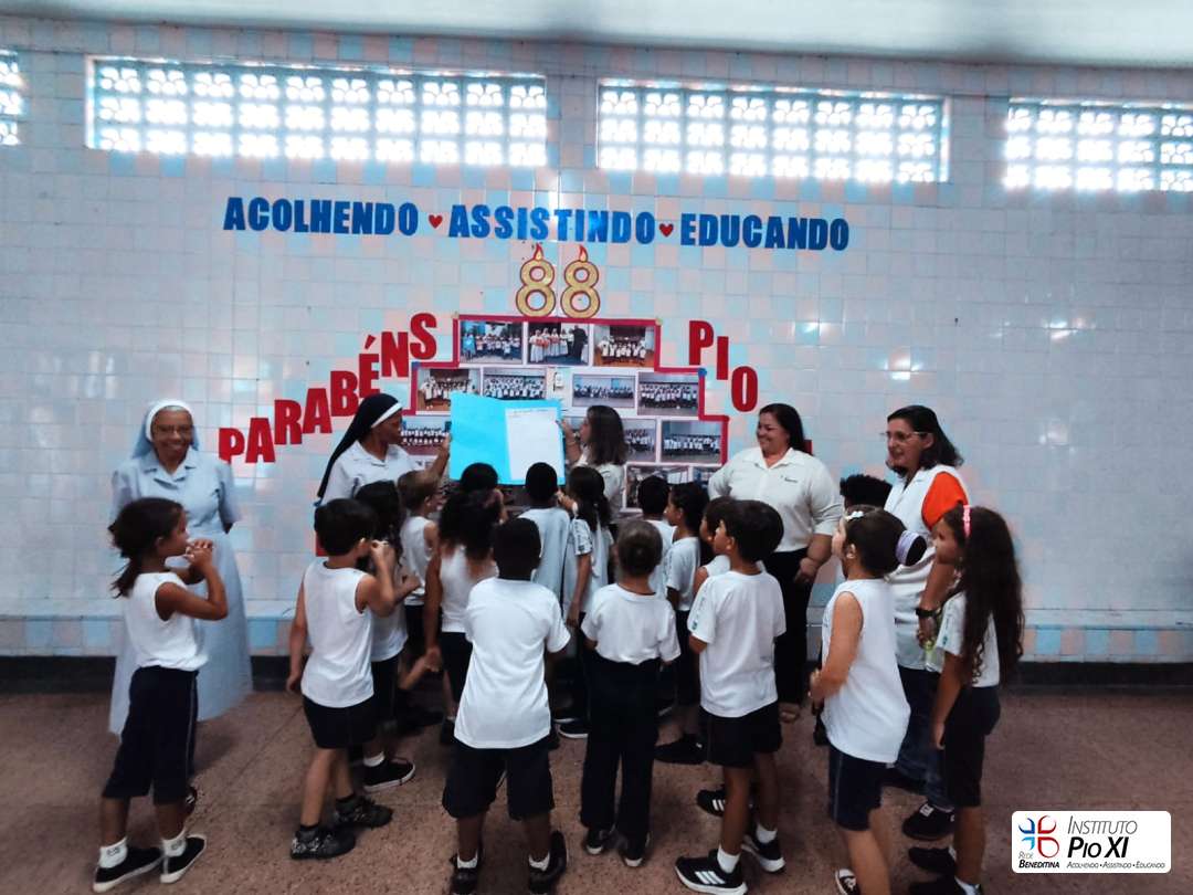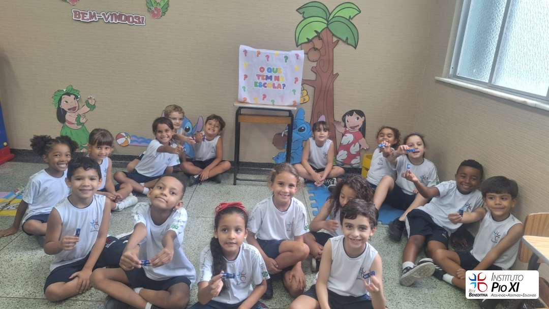 Através de uma divertida dinâmica, as crianças reconheceram tudo o que nossa escola oferece, confeccionaram um cartão de presente, com o qual homenagearam a diretora Dione, às irmãs e a coordenação, pelo belo trabalho e cuidado desenvolvido em nossa escola.