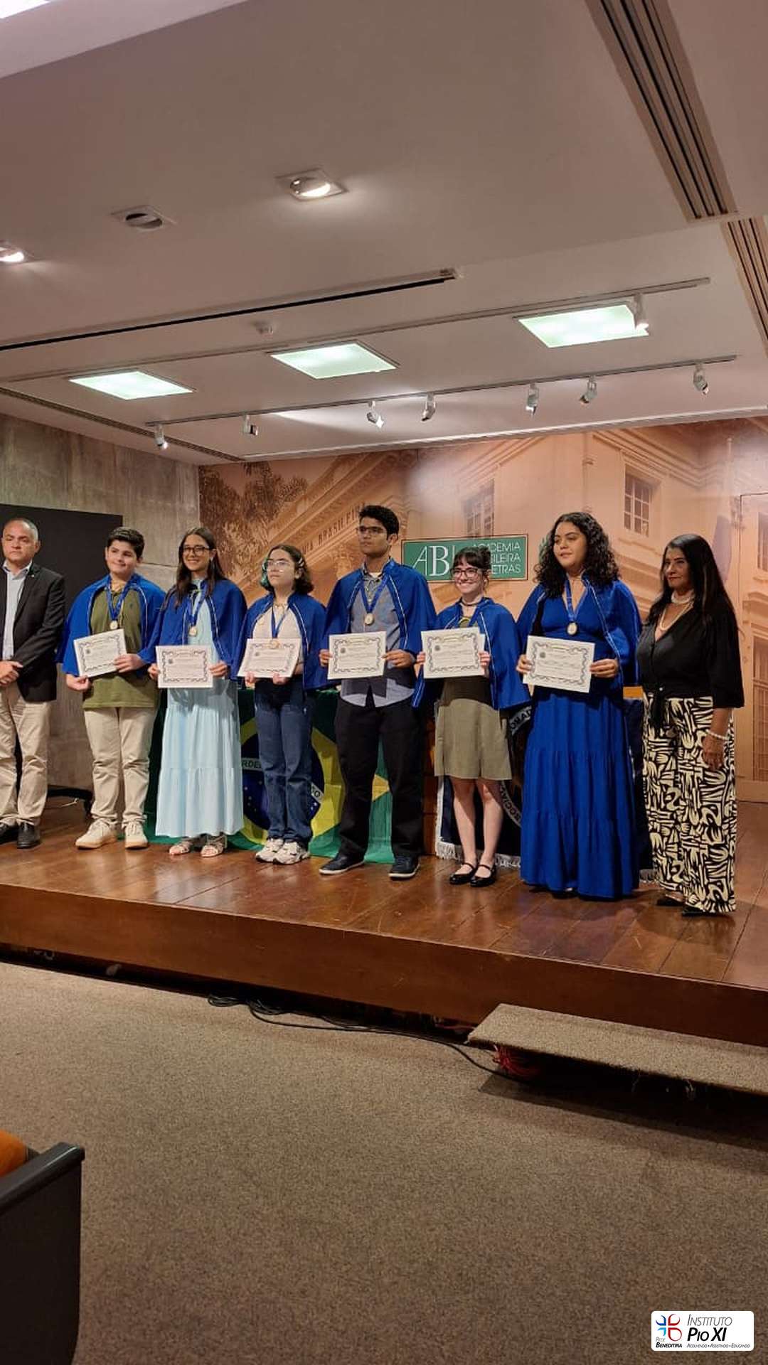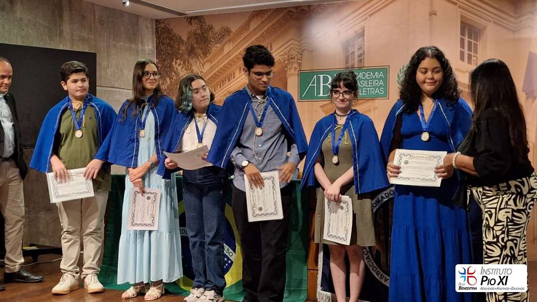 Os alunos finalistas do Concurso de Poesias 2025 do Instituto Pio XI — Helena Azeredo, Sophia Rohem, João Emanuel do Amaral, Liana Costa e Victor Hugo Ximenes — foram homenageados no dia 22 de abril, na Academia Brasileira de Letras, onde receberam a medalha e o título de membros fundadores da Academia Infantojuvenil de Letras e Artes do Estado do Rio de Janeiro (AIJLAERJ). Na mesma ocasião, também tomaram posse na Academia Infantojuvenil da ADABL.