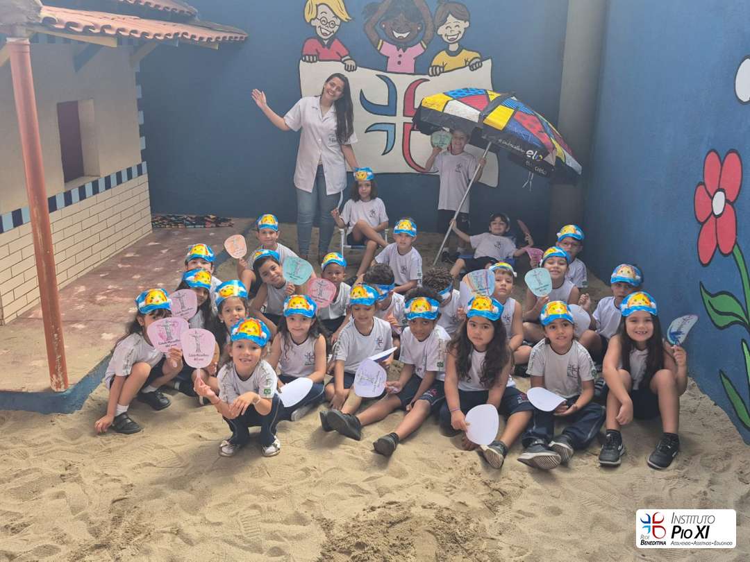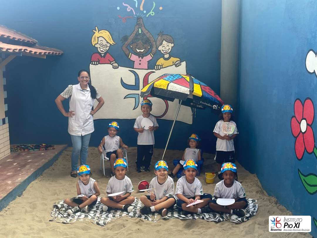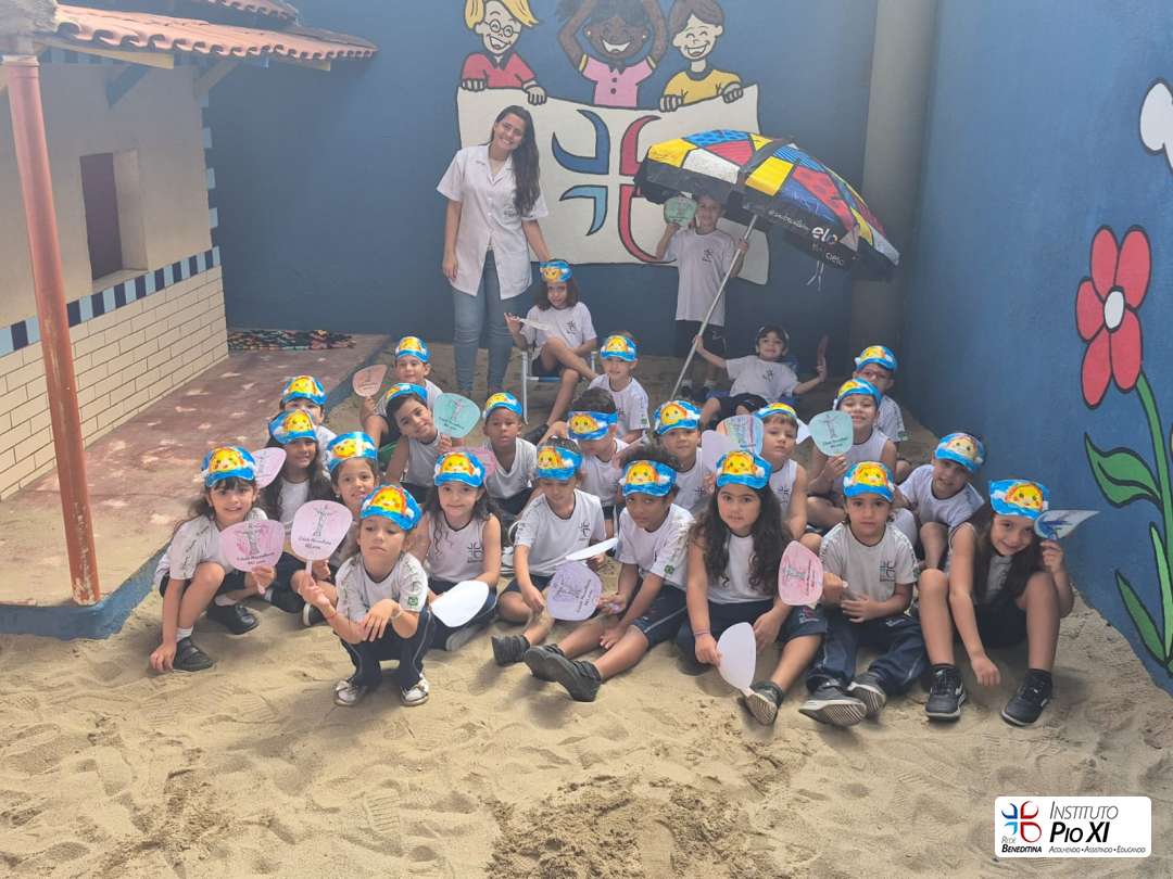 As turmas do Pré 1 e Pré 2 confeccionaram viseiras e ventarolas para representar o clima alegre e ensolarado da nossa cidade.