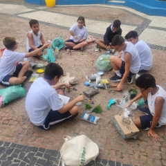 Cada aluno montou seu próprio miniecossistema, utilizando terra, pedras, musgo e pequenas plantas. Durante a atividade, aprenderam sobre a importância da água, da luz e do equilíbrio ecológico para a sobrevivência dos seres vivos.