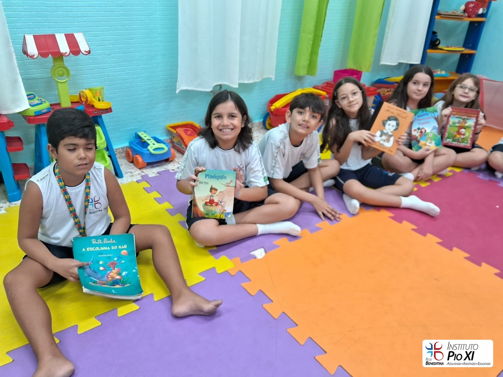 As turmas do 4° ano levaram para escola um Conto preferido e puderam falar a história para seus amigos.
