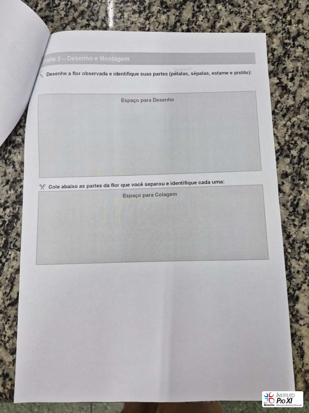 Para consolidar a aprendizagem, realizaram o registro científico das observações em uma folha de atividades, descrevendo e representando, por meio de desenhos, as estruturas analisadas.
