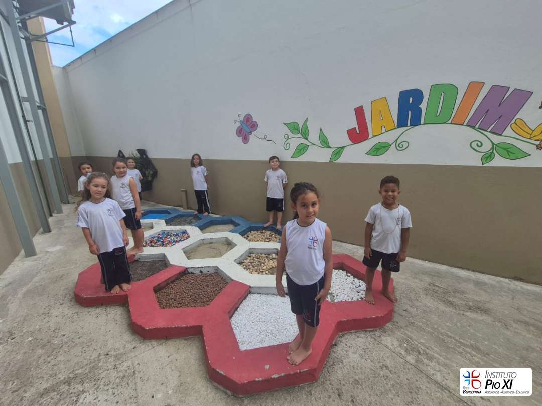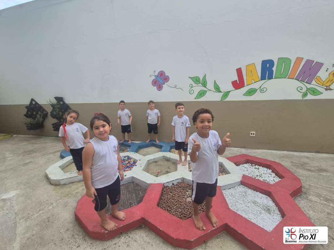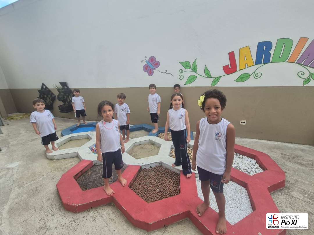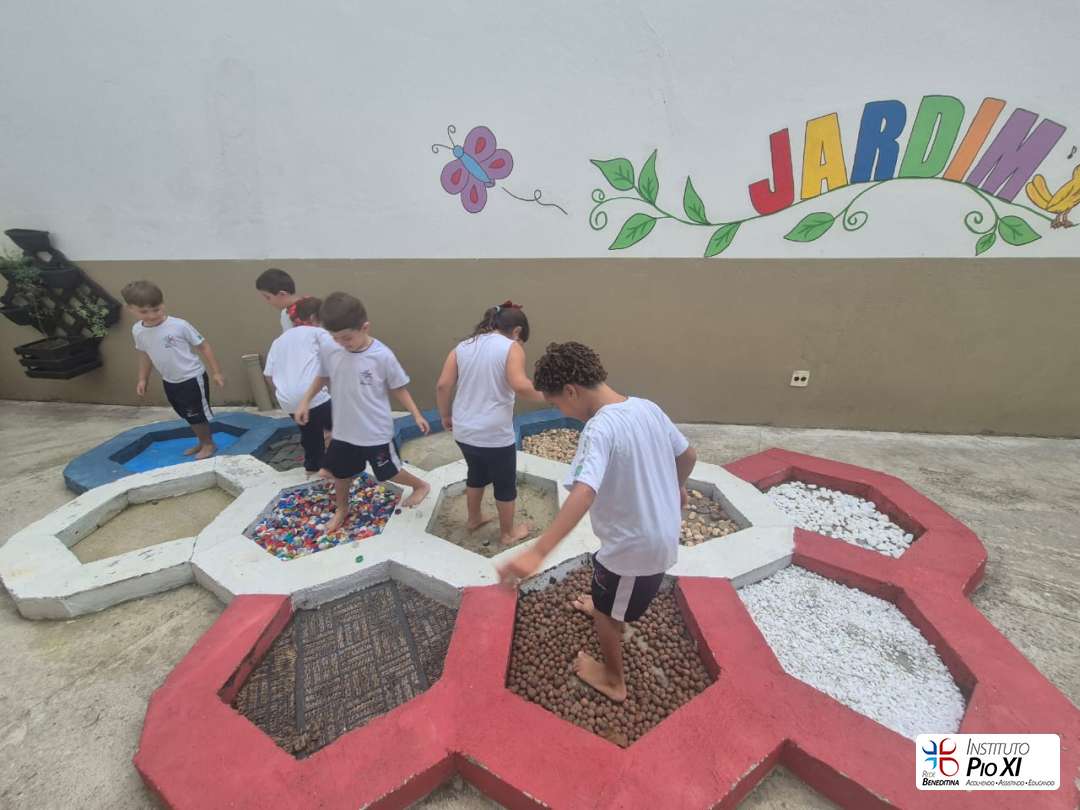 Além disso, se aventuraram em um circuito sensorial, onde, com os pés, sentiram diferentes texturas, estimulando percepções, curiosidade e descobertas.