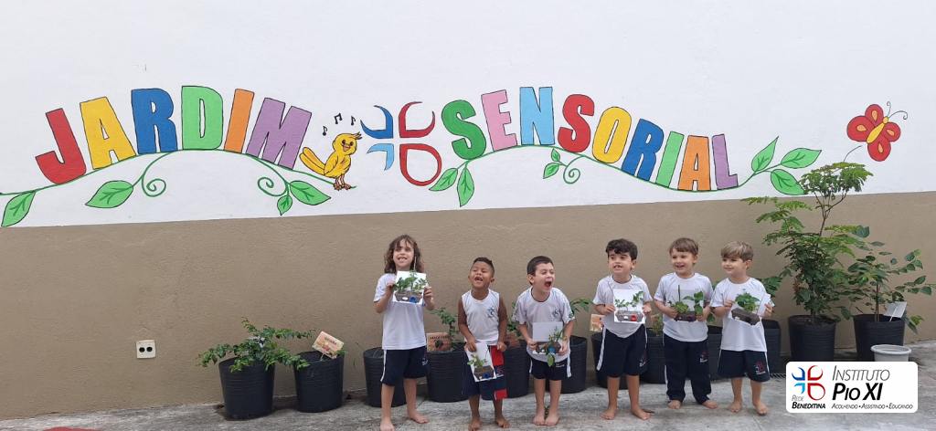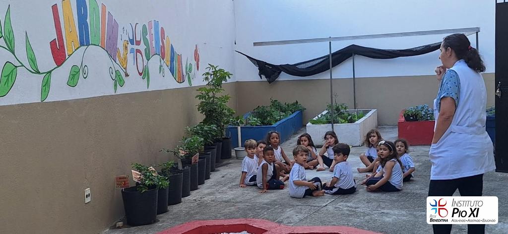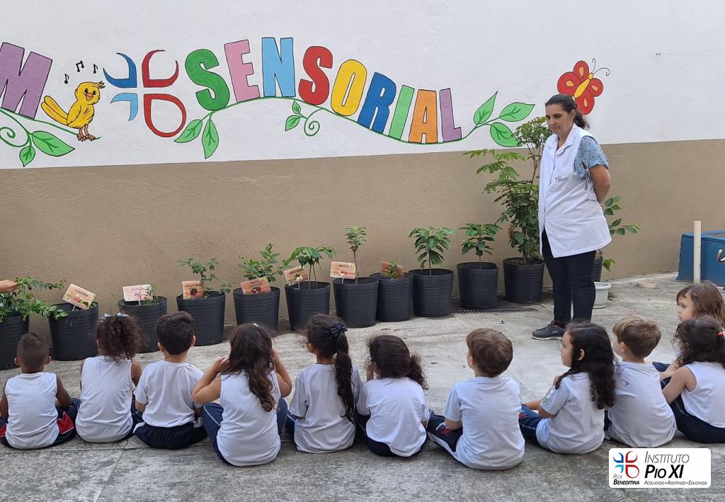 A turma do Maternal 2, orientada pela professora Carla, explorou o jardim sensorial da escola, para descobrir texturas e aromas diferentes.