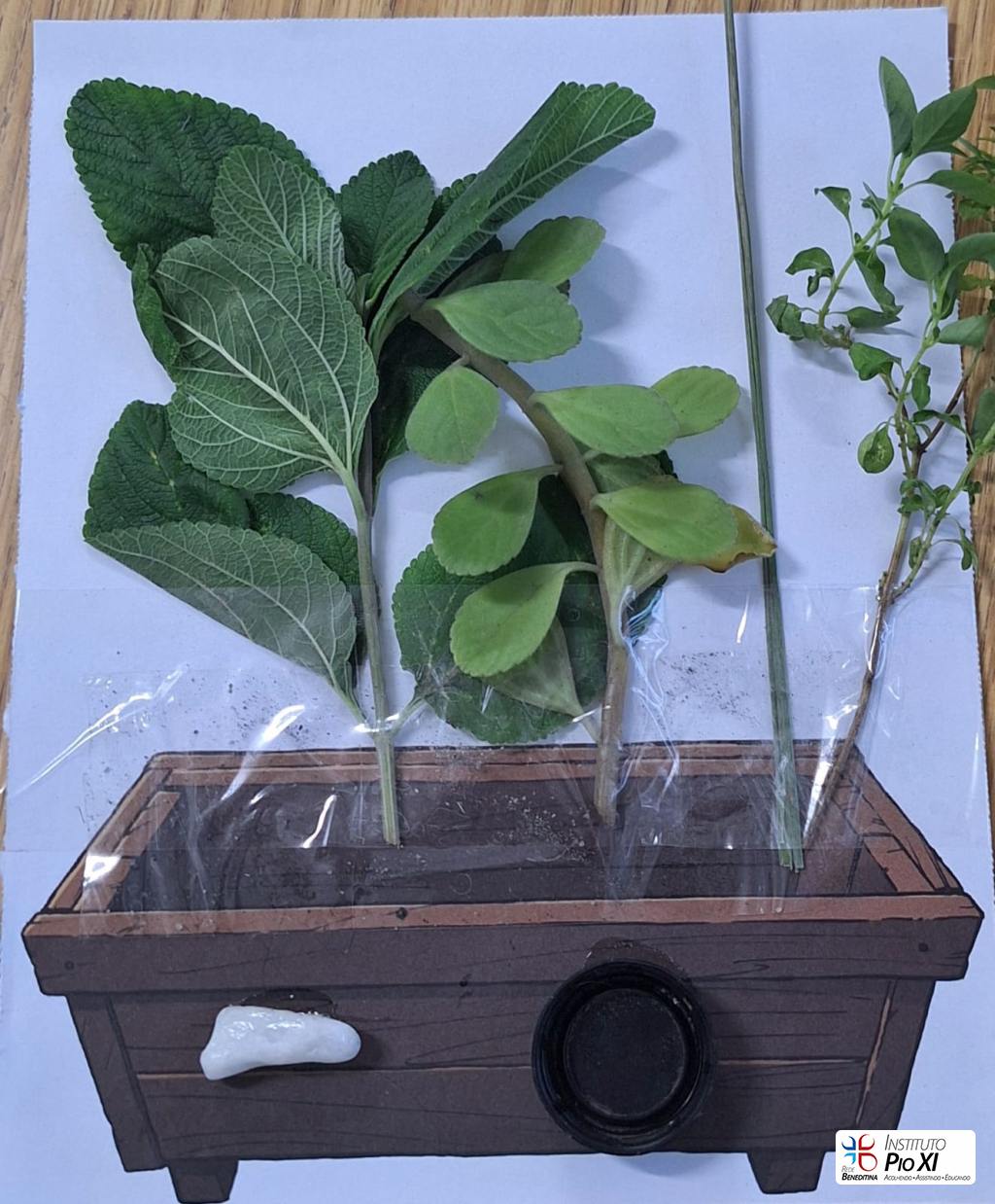 As crianças tiveram a oportunidade de montar o seu vaso sensorial com pedra, tampinha e algumas plantas com diferentes aromas.
