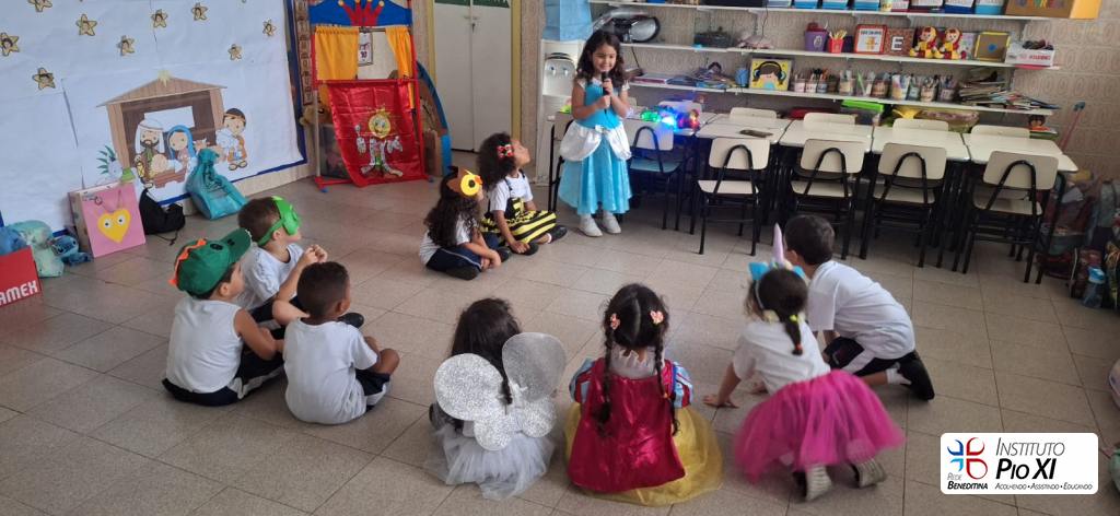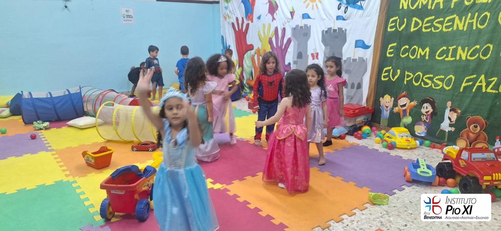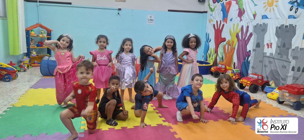 Tivemos a tarde das princesas com os heróis, discoteca com karaoke, times esportivos, brincadeiras, amigo oculto e lanche coletivo.